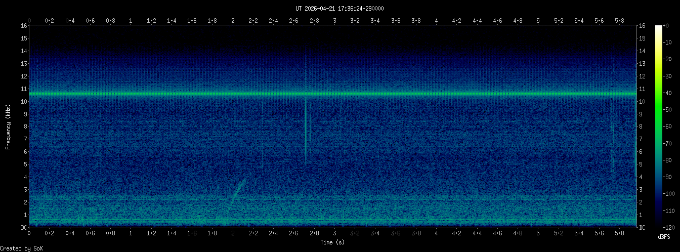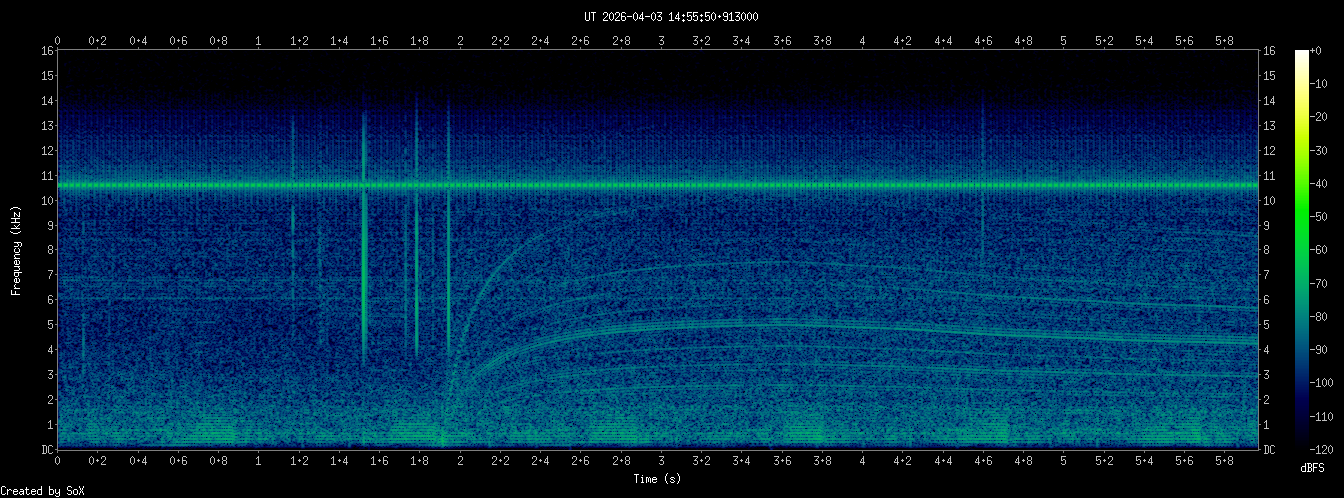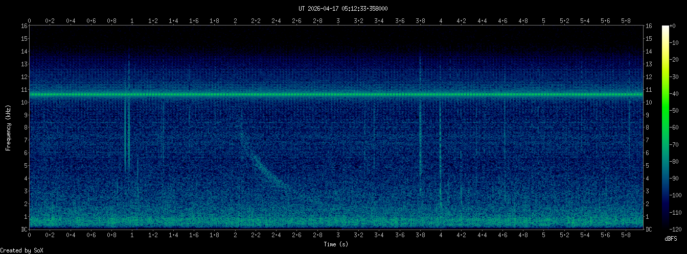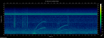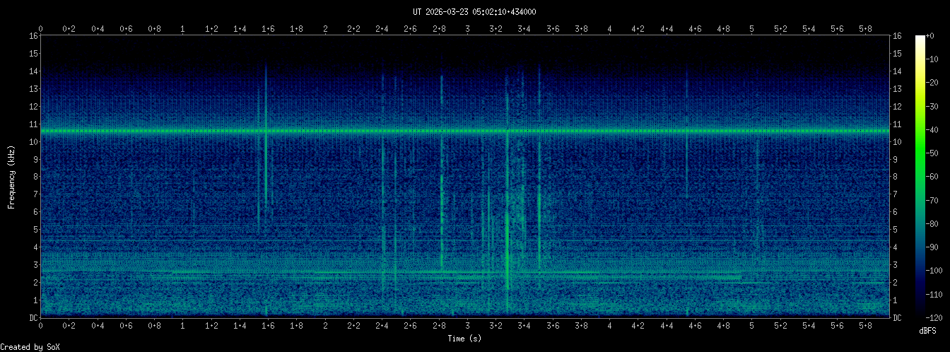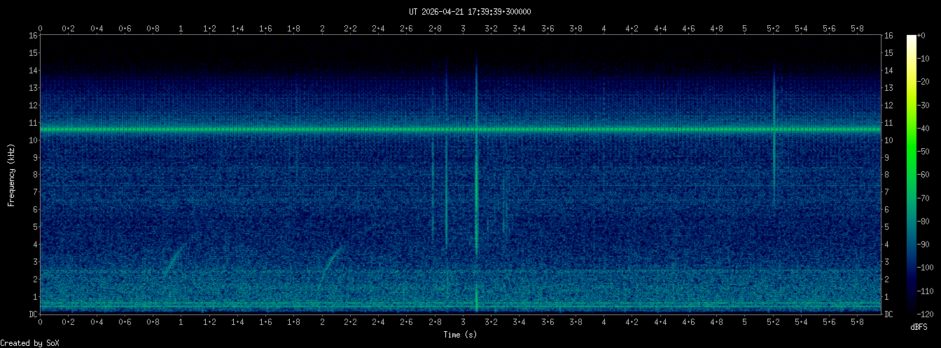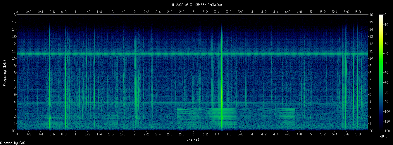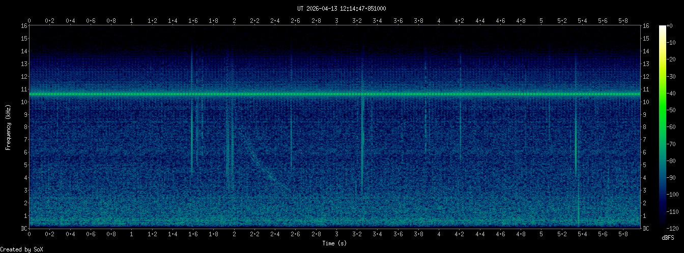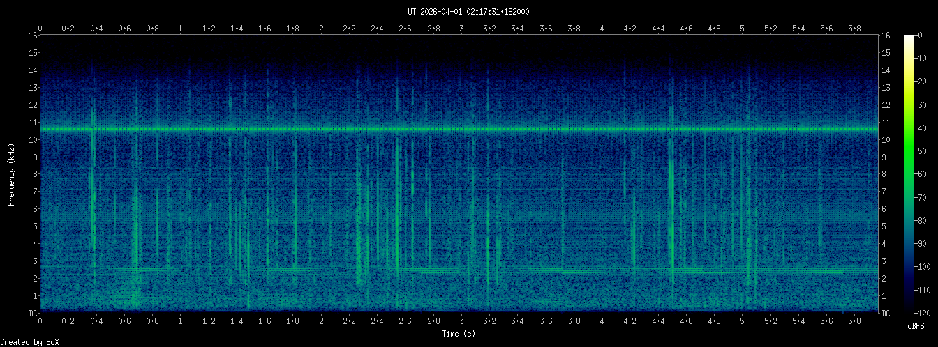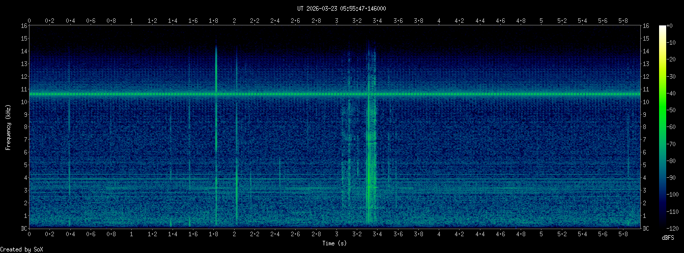 The following images are the recent VLF events received by my system and detected using 'vtevent'. They are sorted from most recent to least recent. When they are classified, they are moved to 'Archive Data' (so this page may be empty at times). This data is regenerated every 10 minutes.