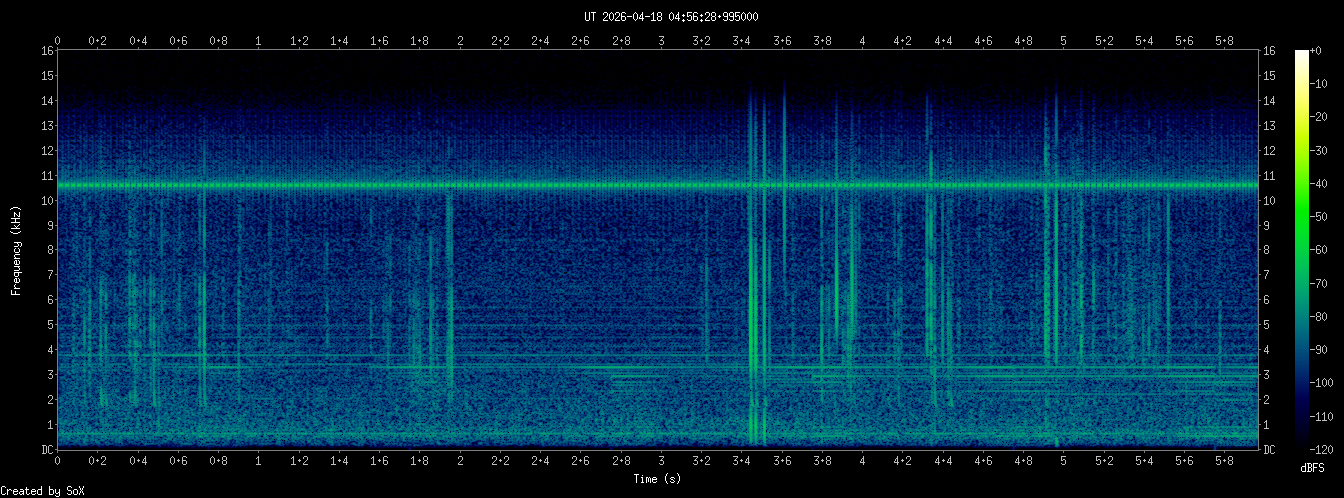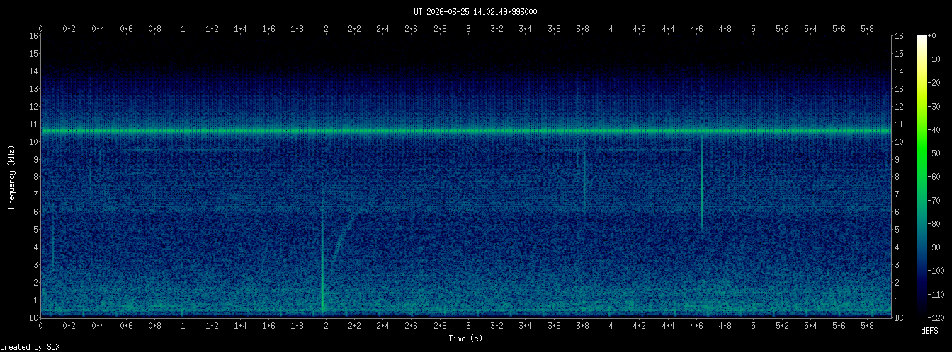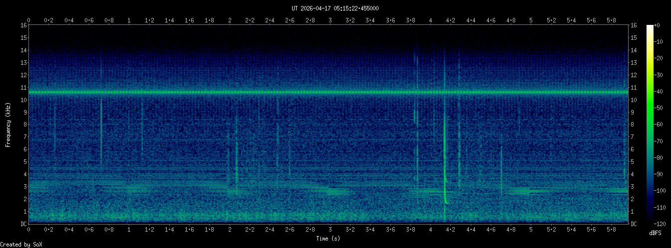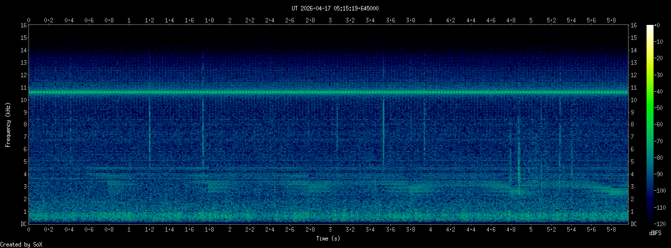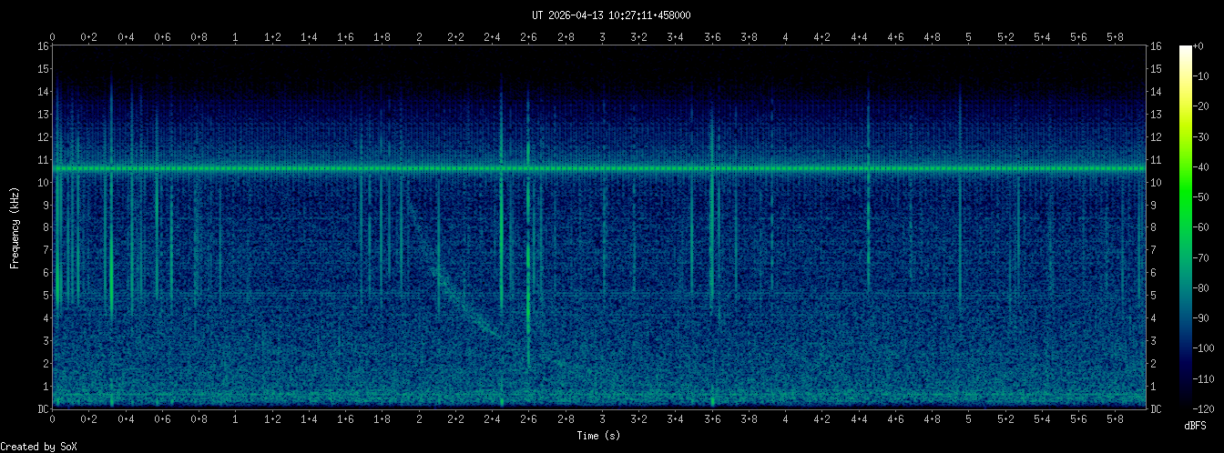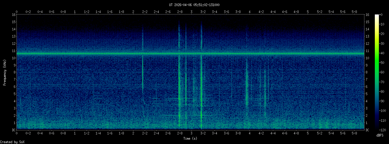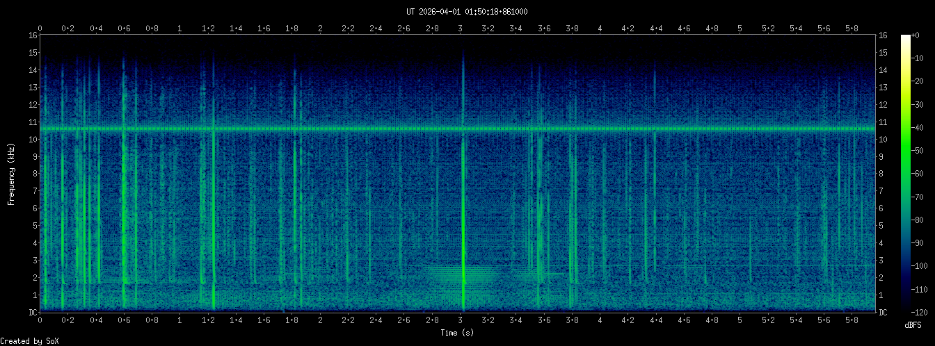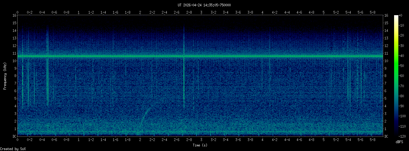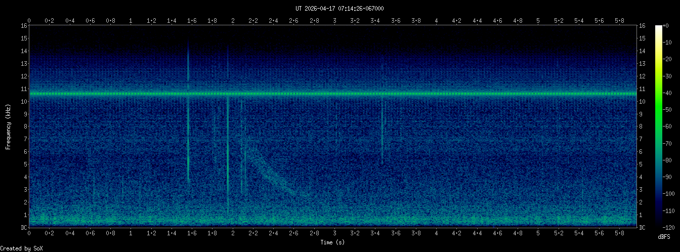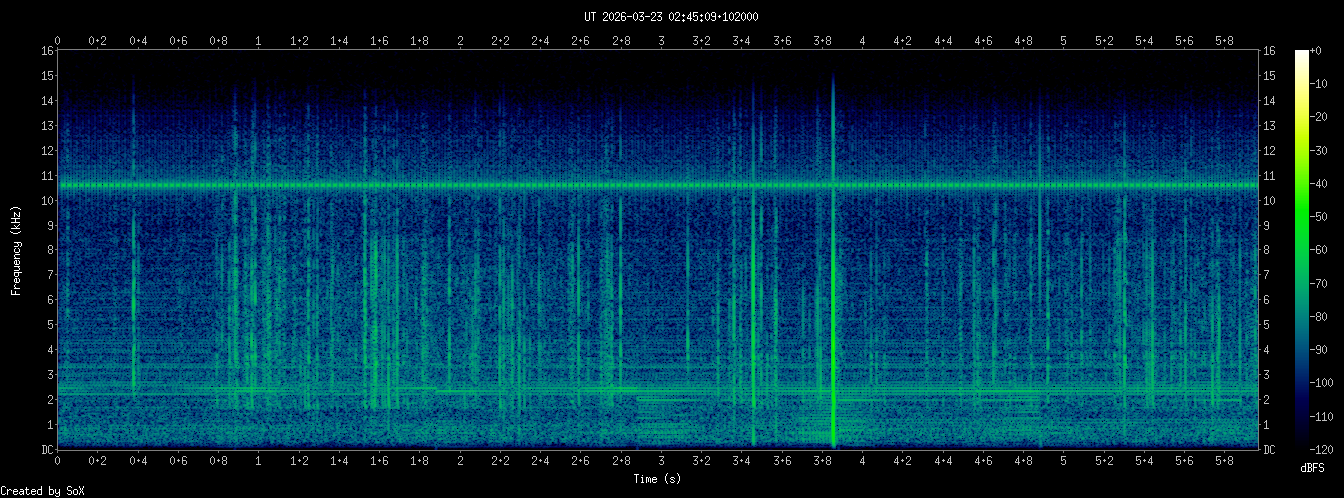 The following images are the recent VLF events received by my system and detected using 'vtevent'. They are sorted from most recent to least recent. When they are classified, they are moved to 'Archive Data' (so this page may be empty at times). This data is regenerated every 10 minutes.