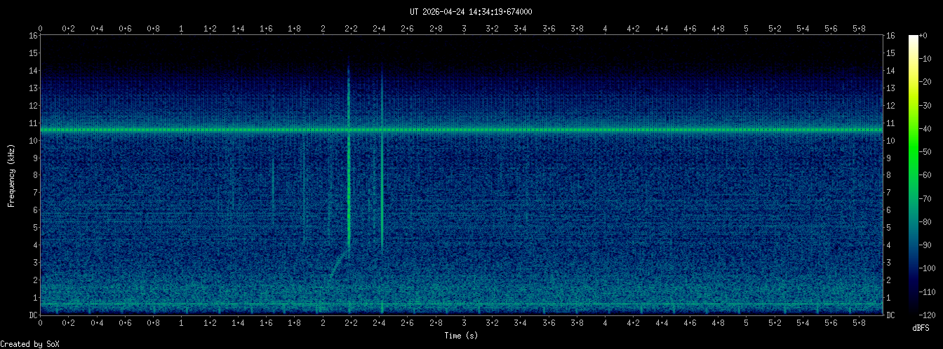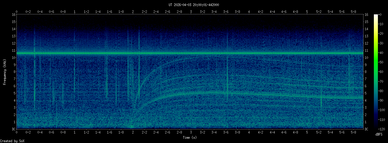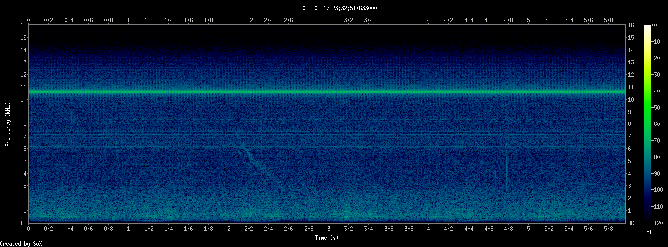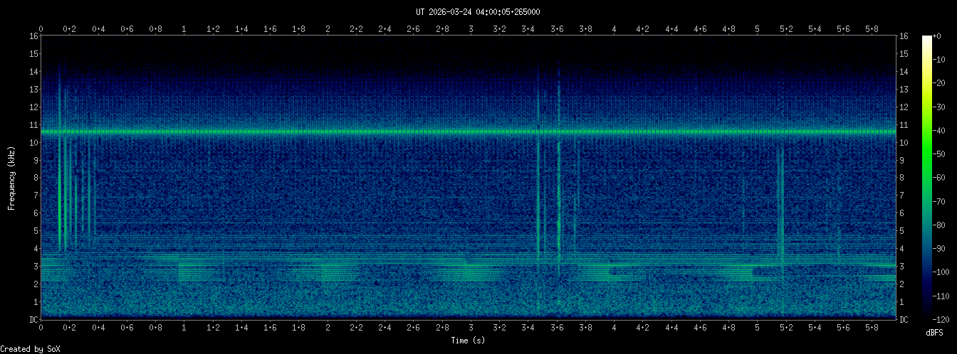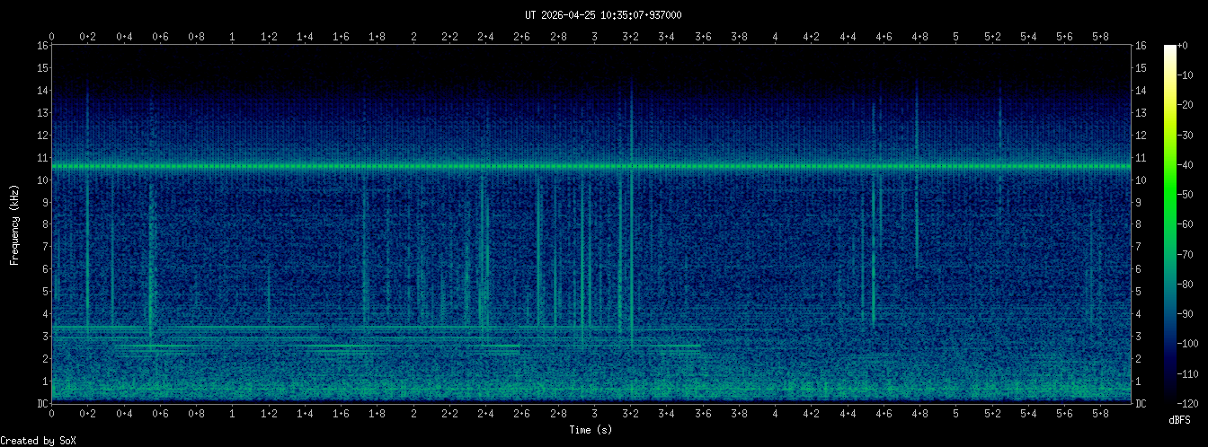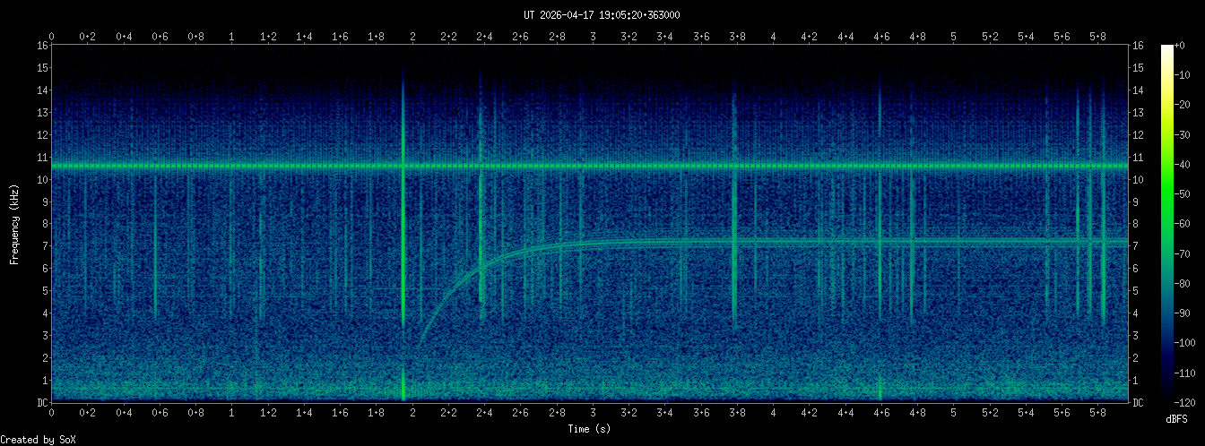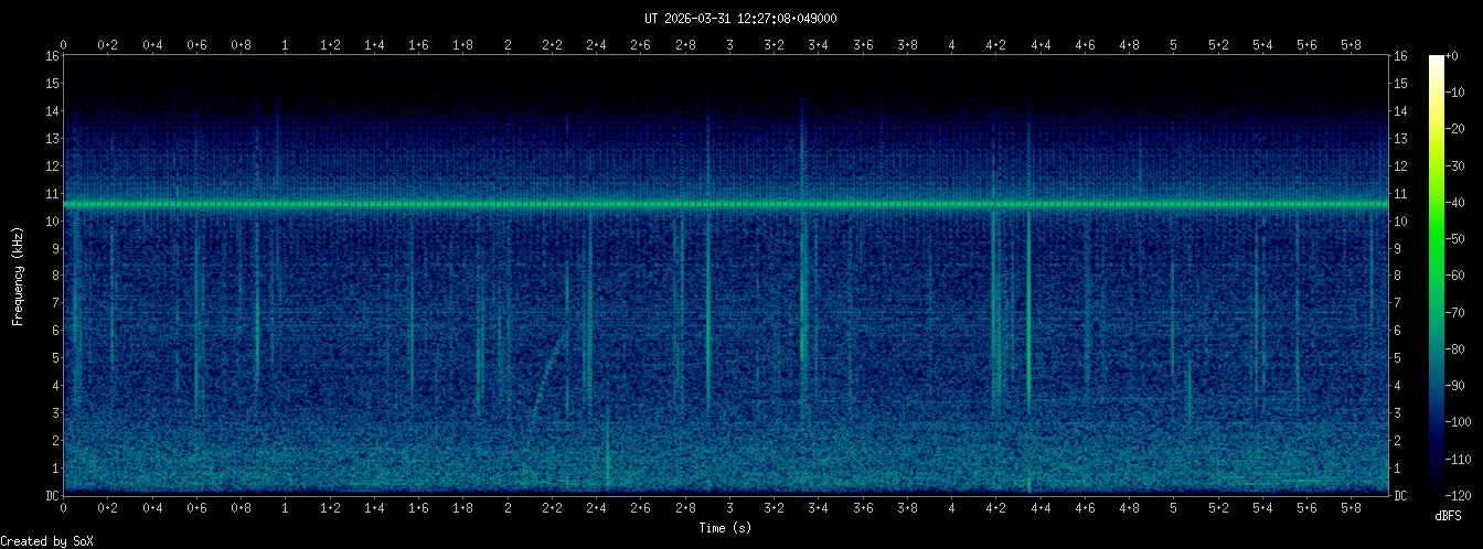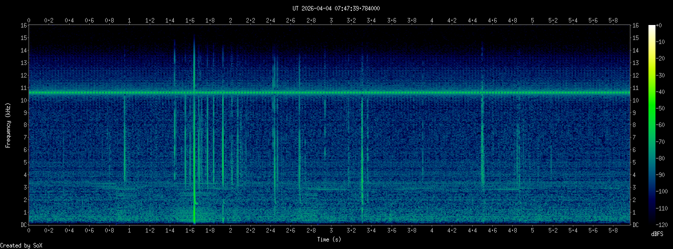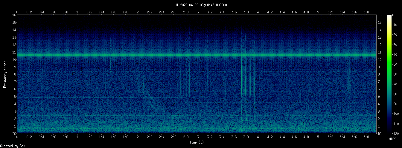 The following images are the recent VLF events received by my system and detected using 'vtevent'. They are sorted from most recent to least recent. When they are classified, they are moved to 'Archive Data' (so this page may be empty at times). This data is regenerated every 10 minutes.