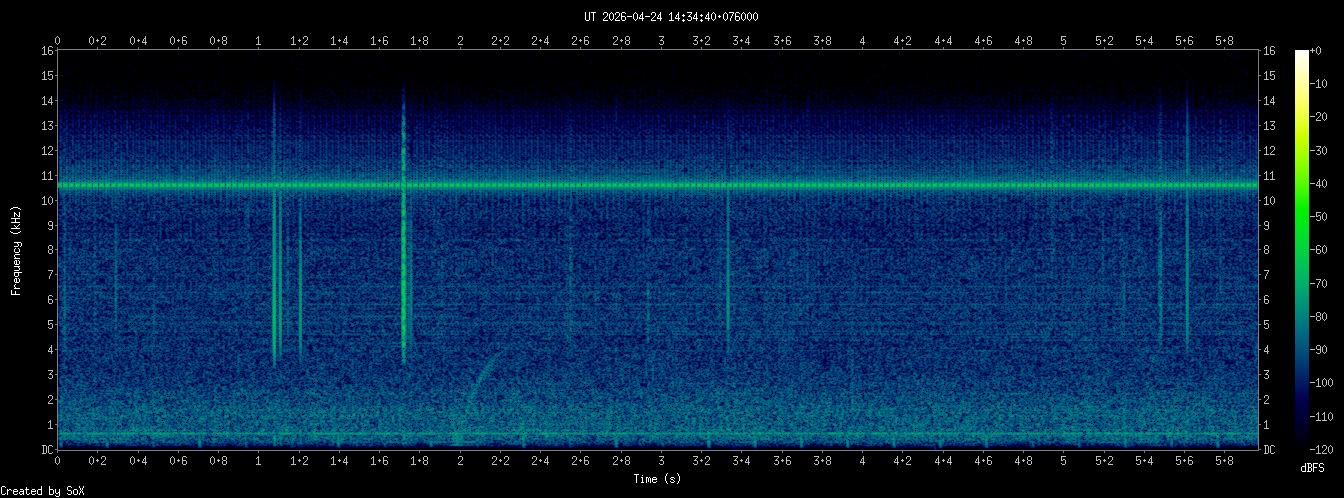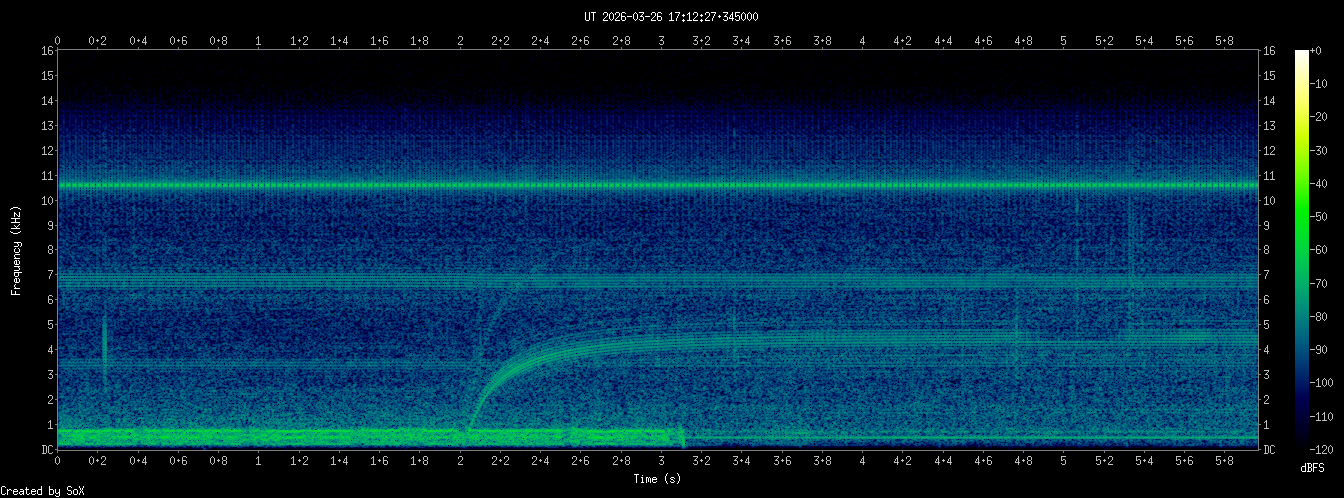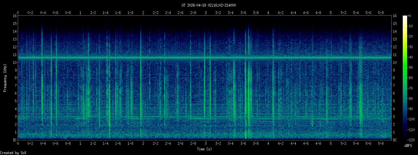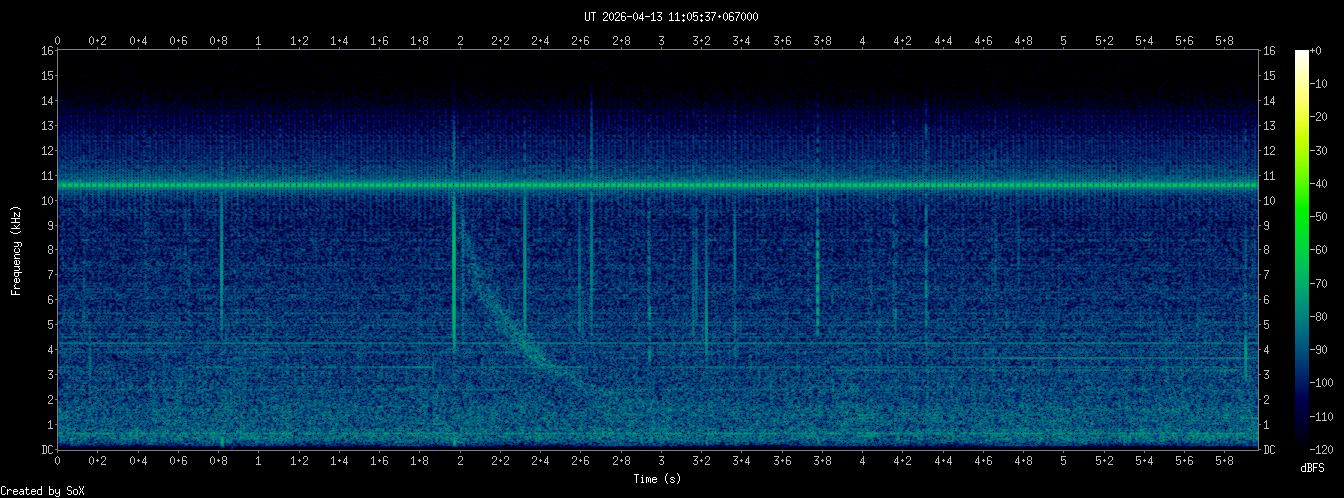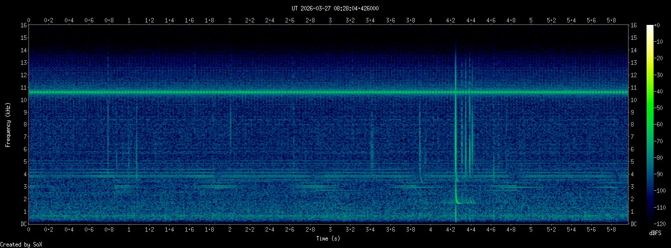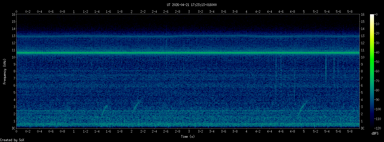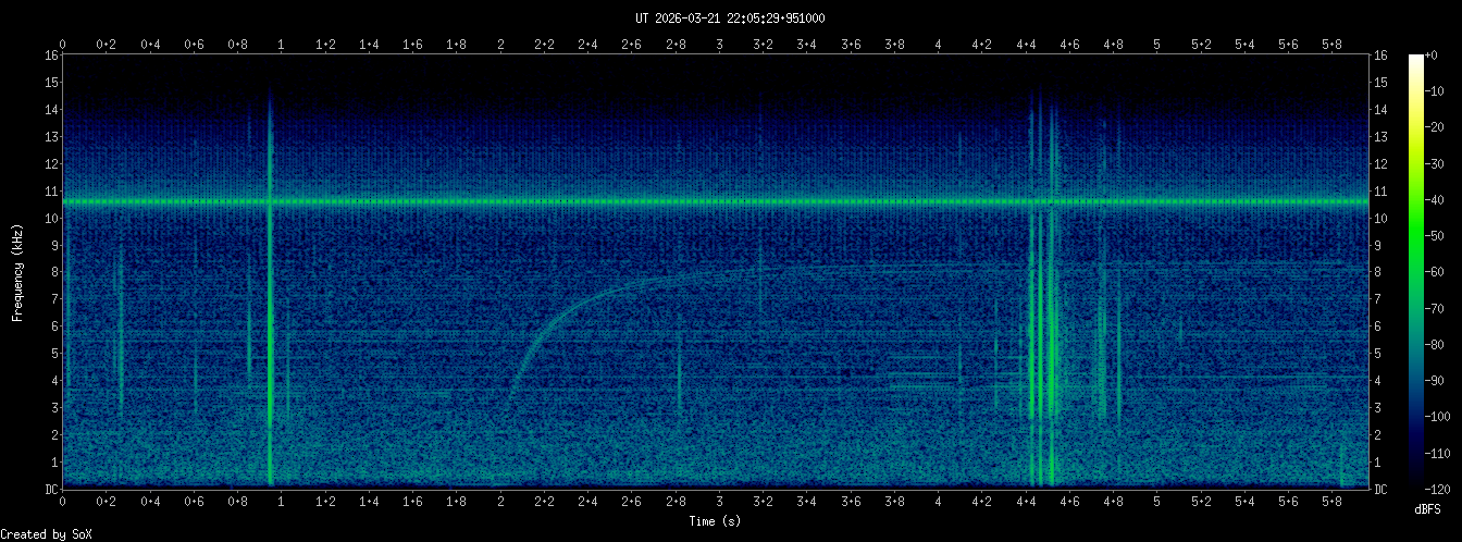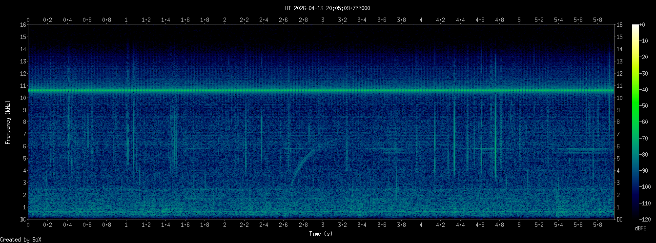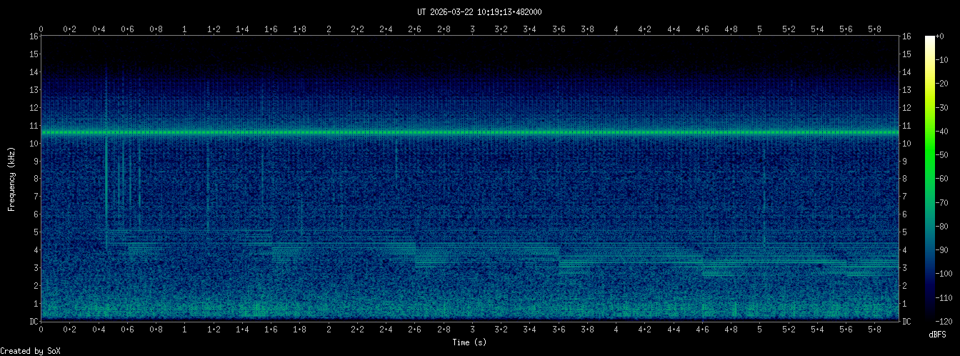 The following images are the recent VLF events received by my system and detected using 'vtevent'. They are sorted from most recent to least recent. When they are classified, they are moved to 'Archive Data' (so this page may be empty at times). This data is regenerated every 10 minutes.