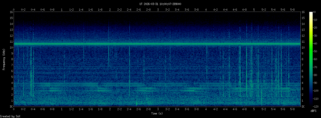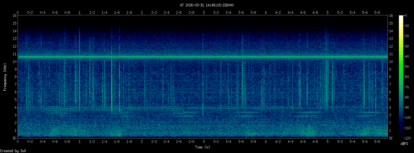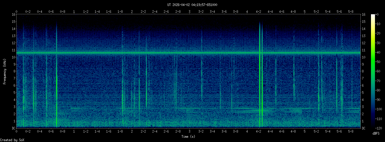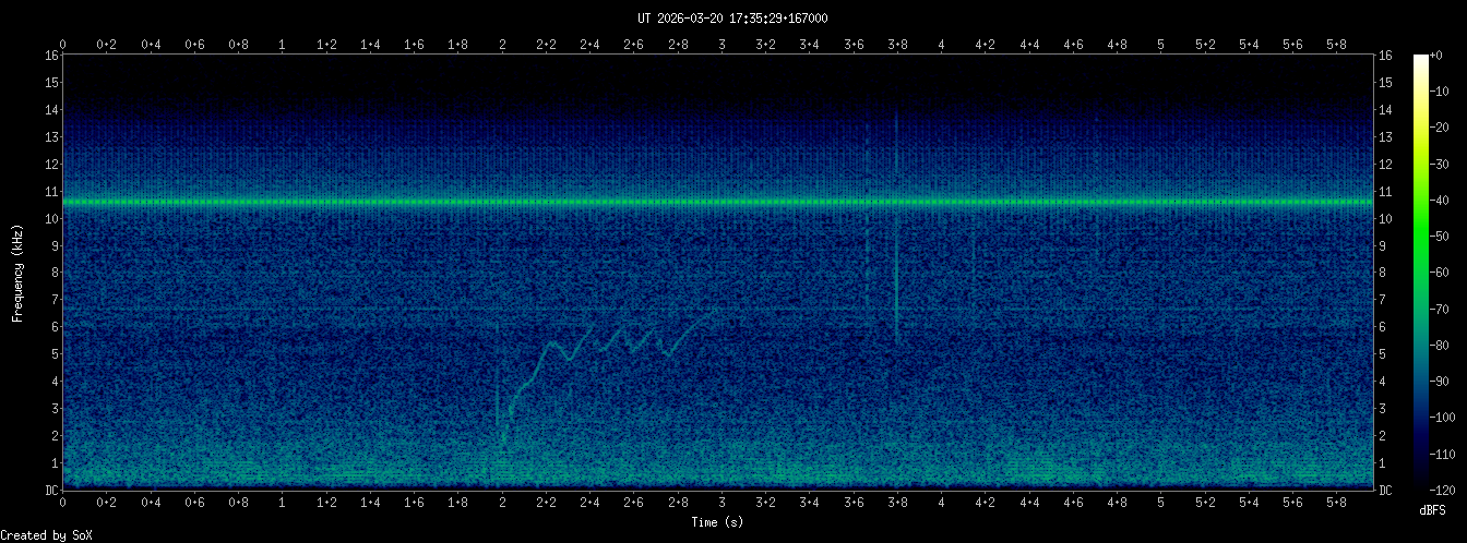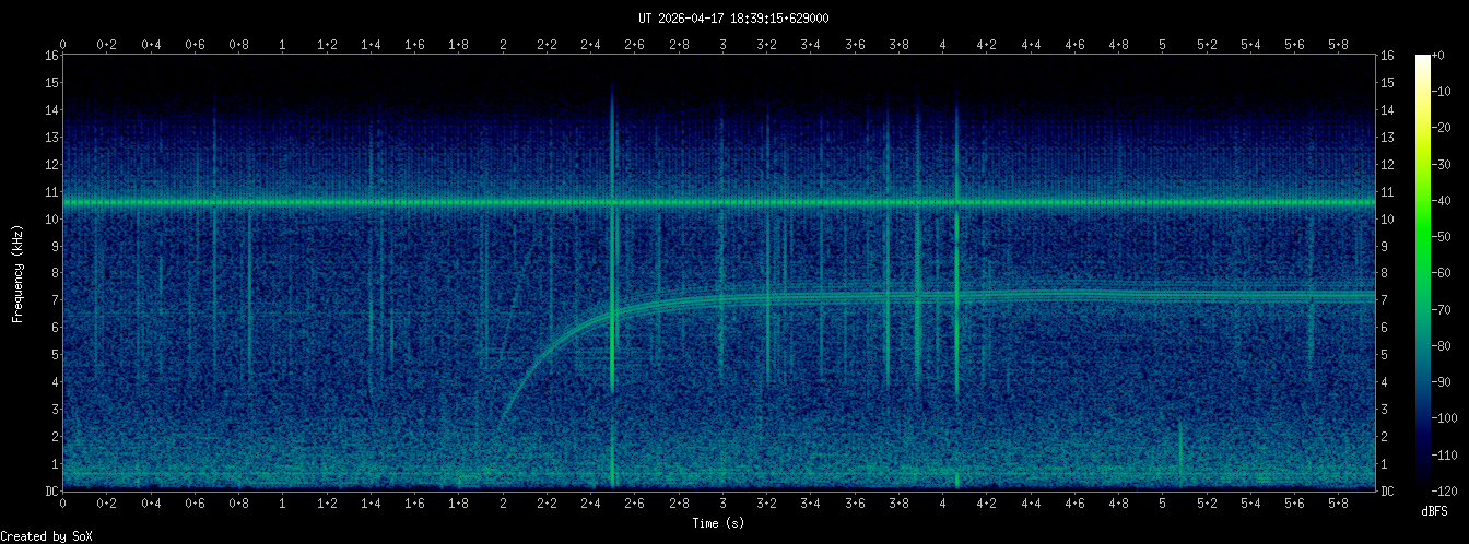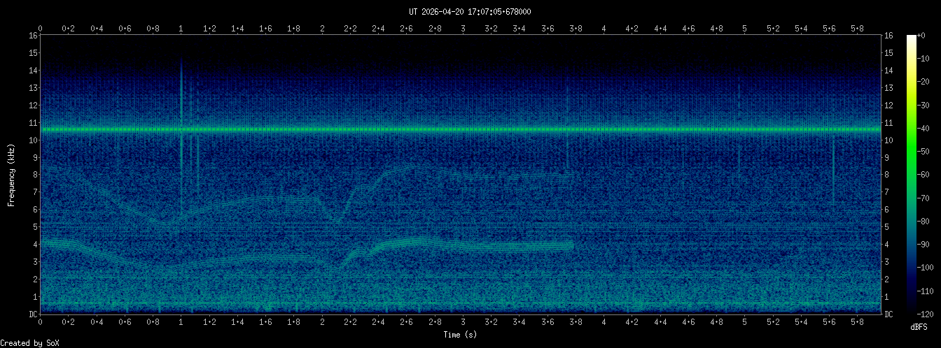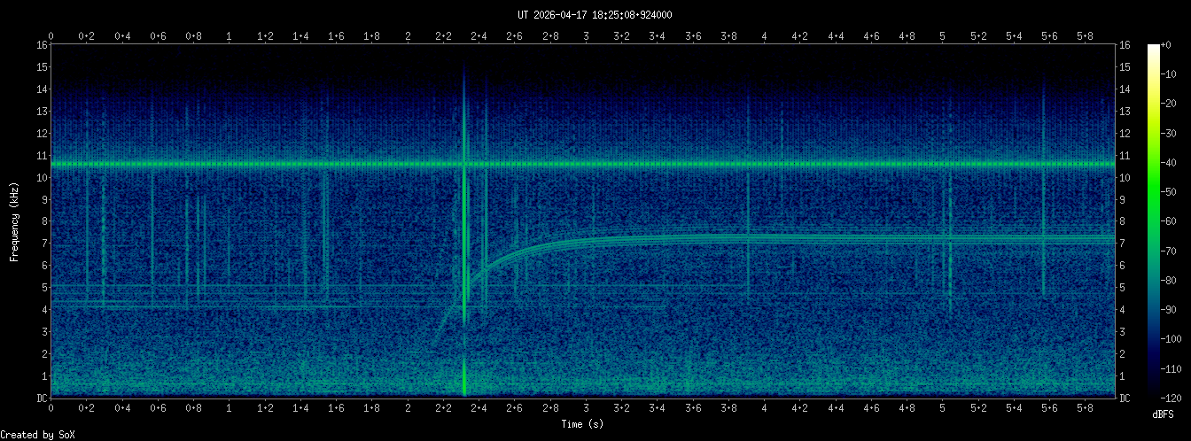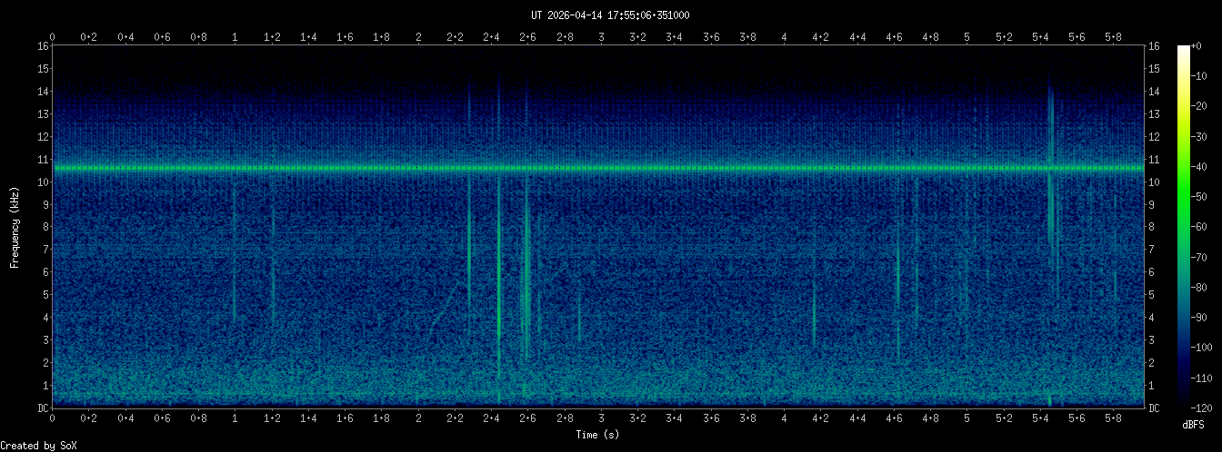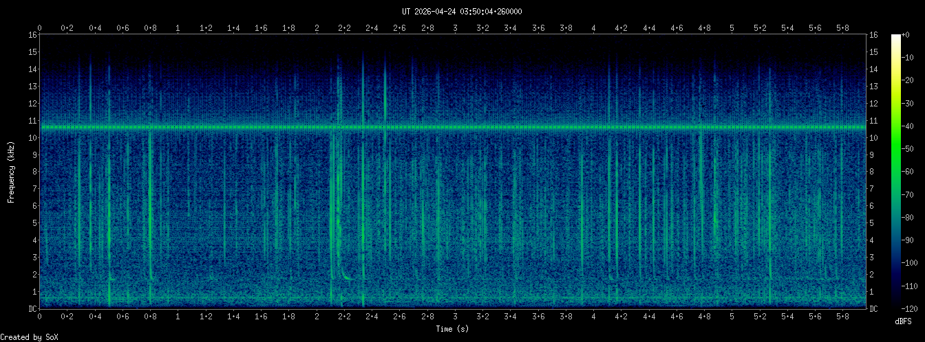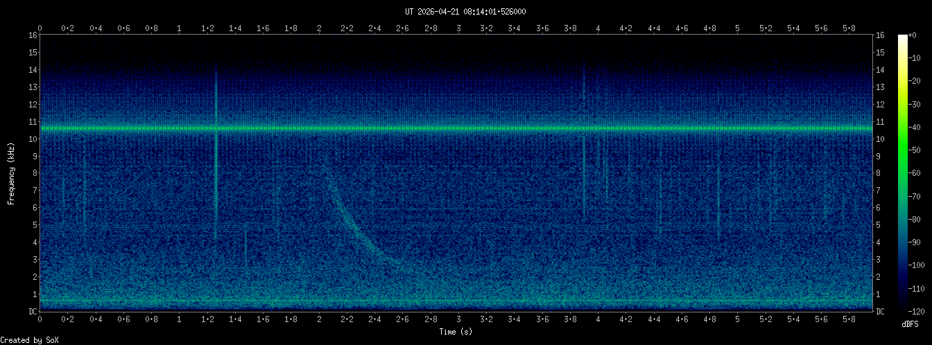 The following images are the recent VLF events received by my system and detected using 'vtevent'. They are sorted from most recent to least recent. When they are classified, they are moved to 'Archive Data' (so this page may be empty at times). This data is regenerated every 10 minutes.