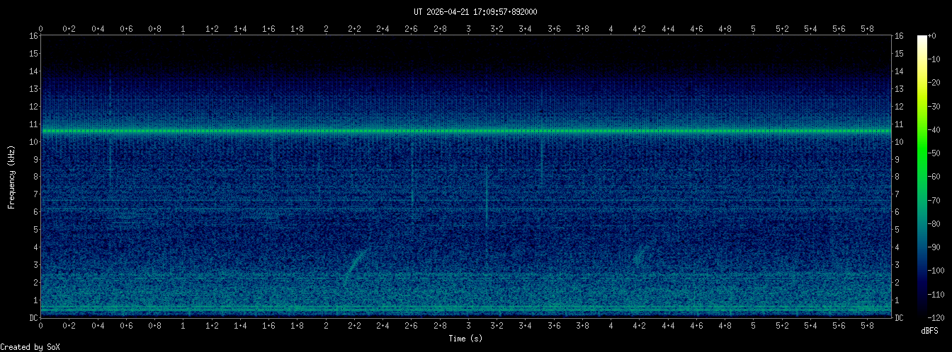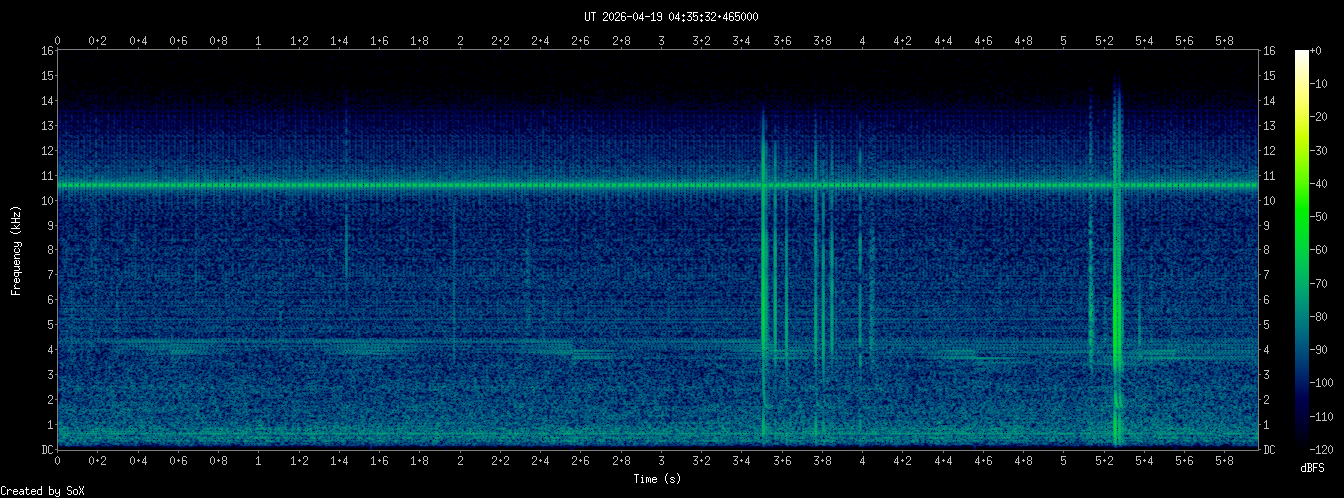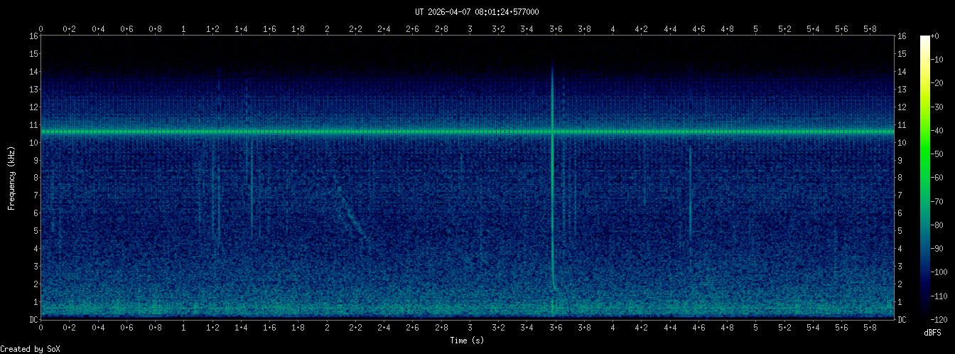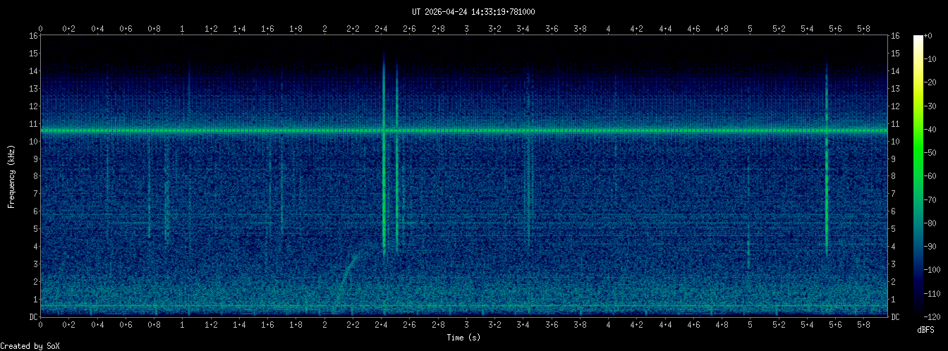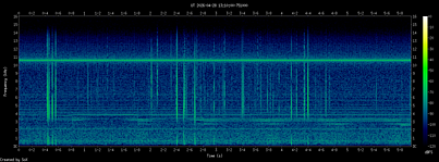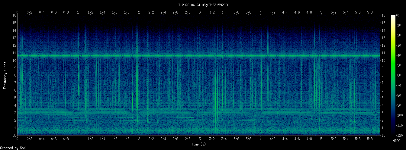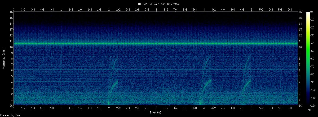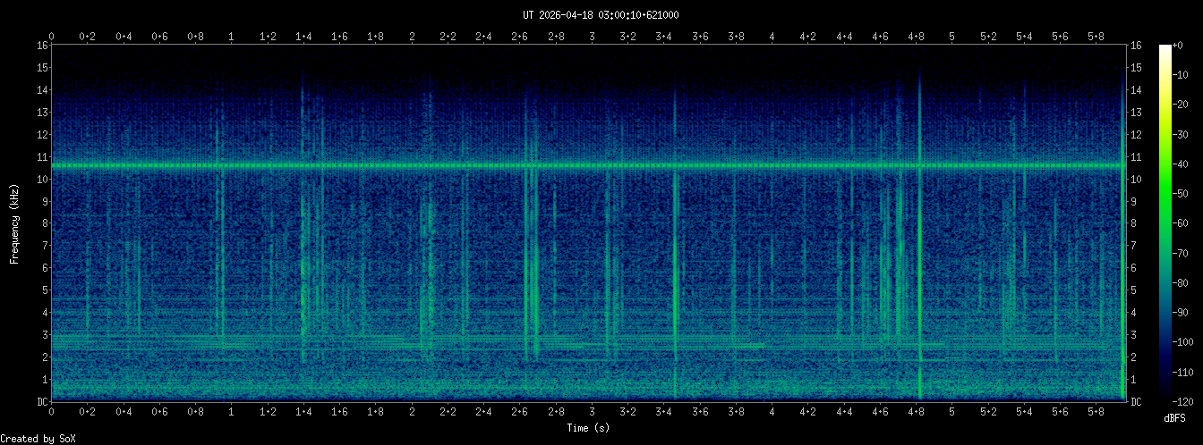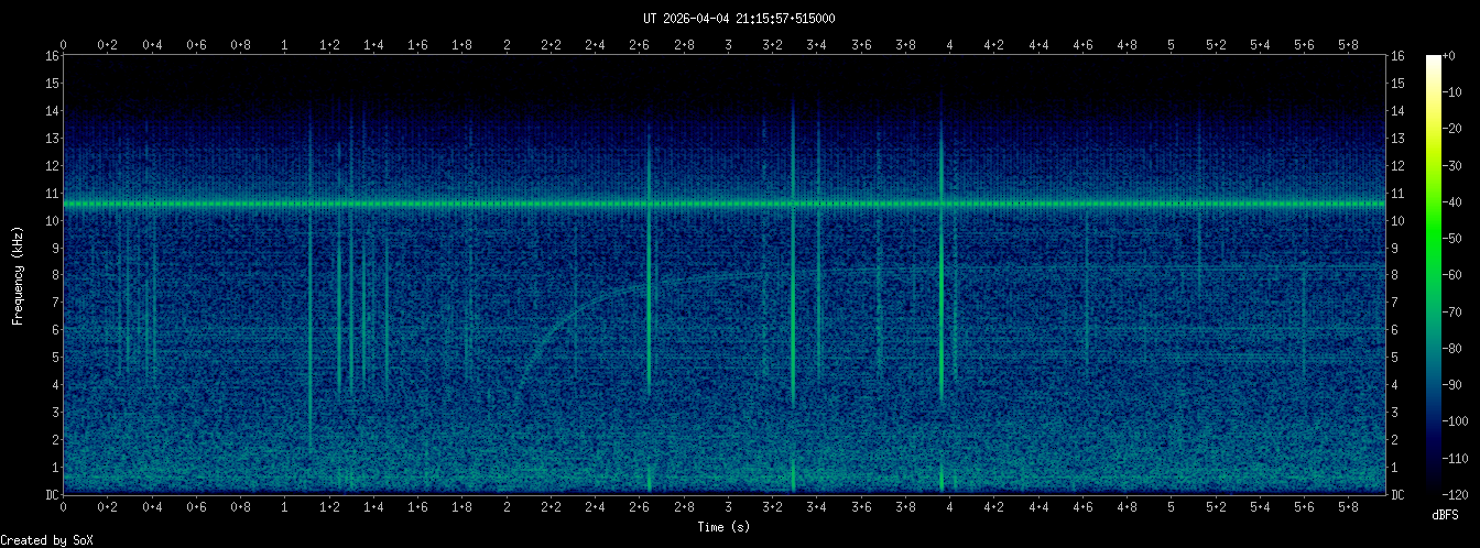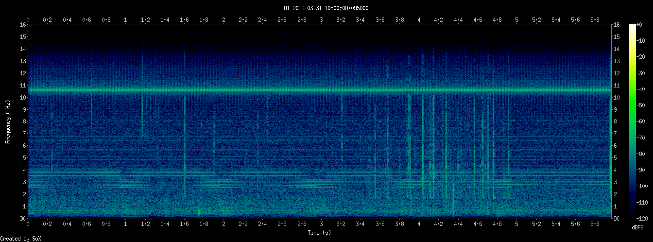 The following images are the recent VLF events received by my system and detected using 'vtevent'. They are sorted from most recent to least recent. When they are classified, they are moved to 'Archive Data' (so this page may be empty at times). This data is regenerated every 10 minutes.