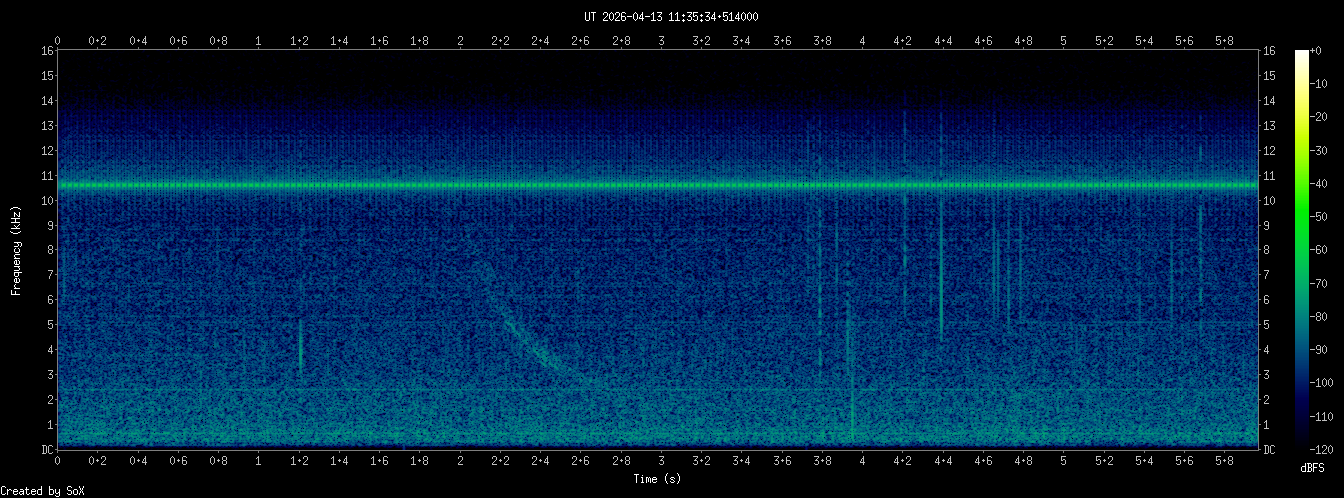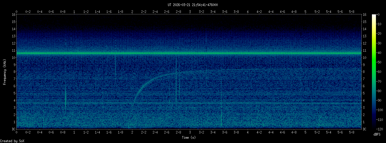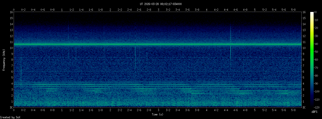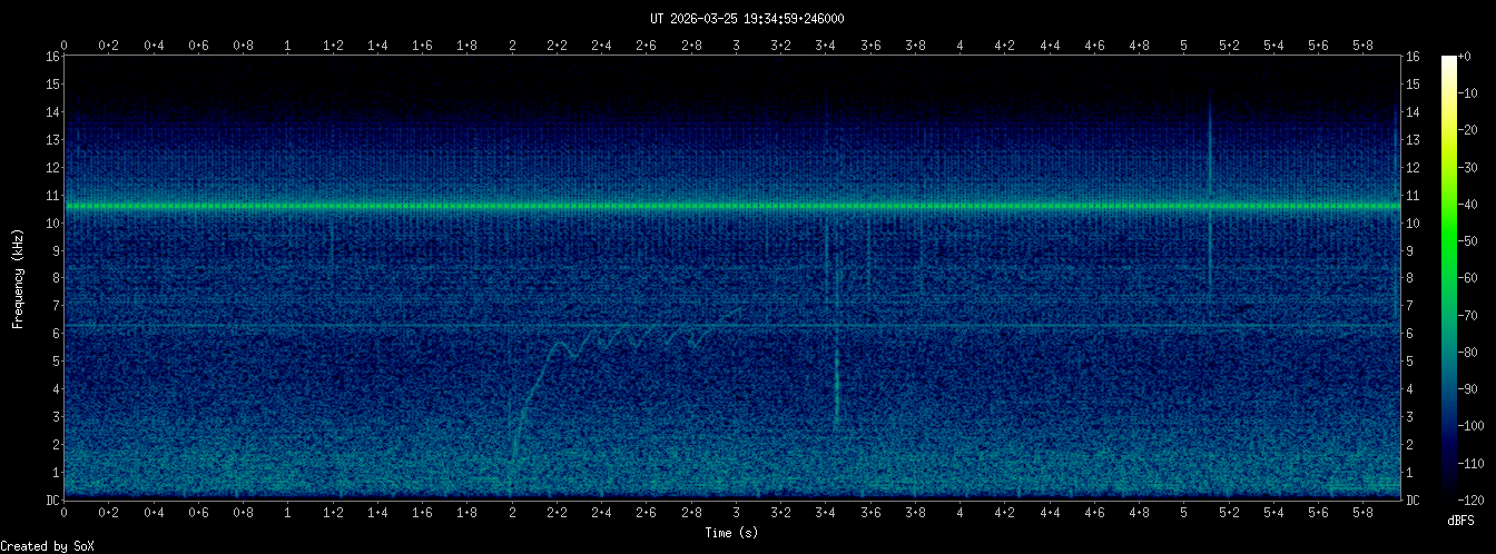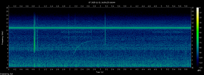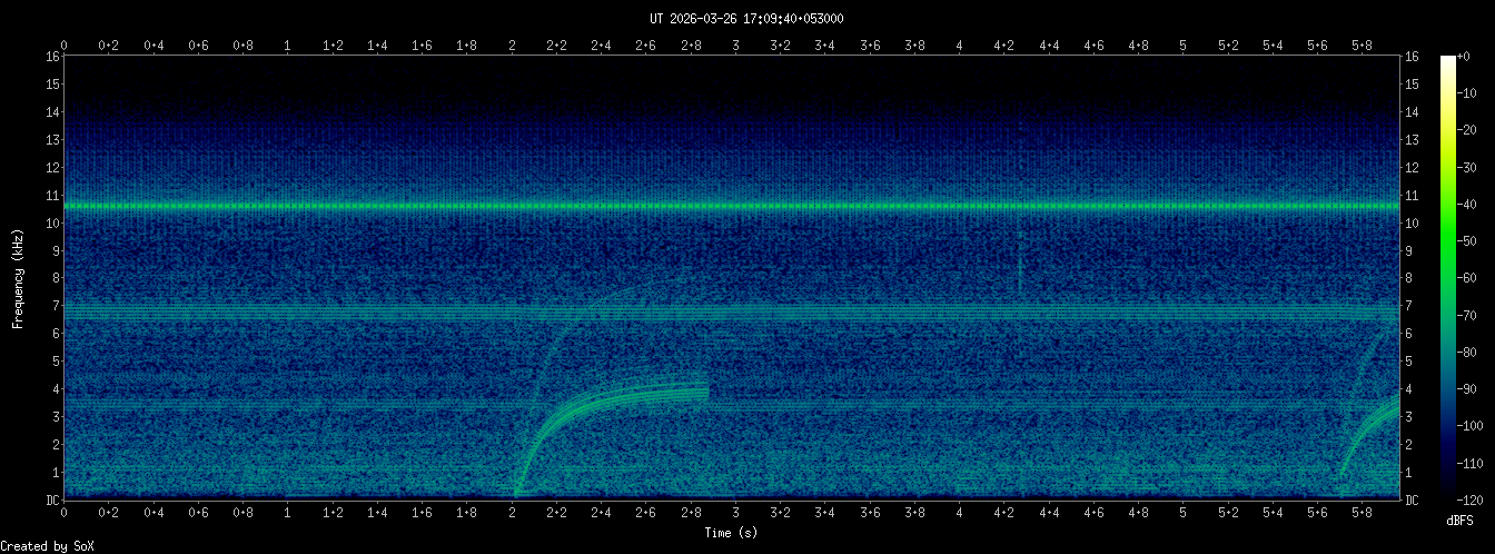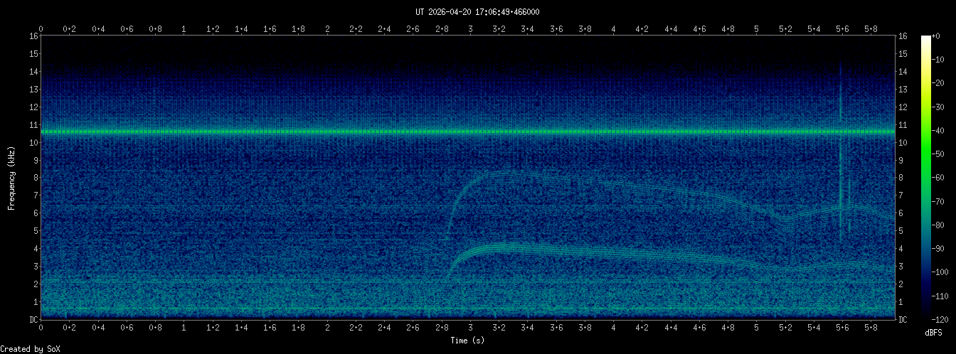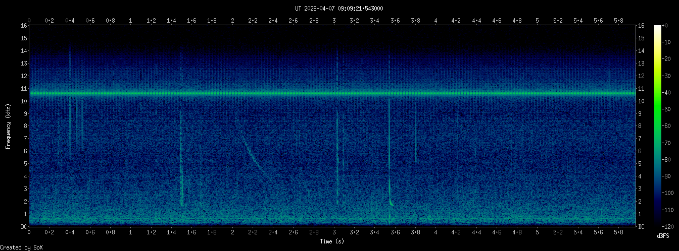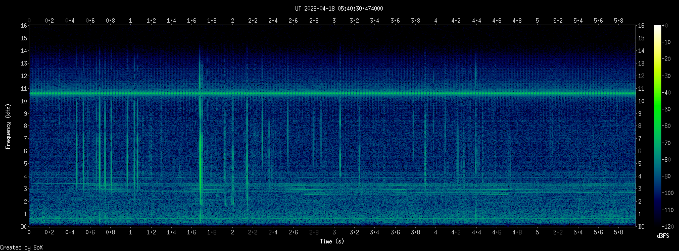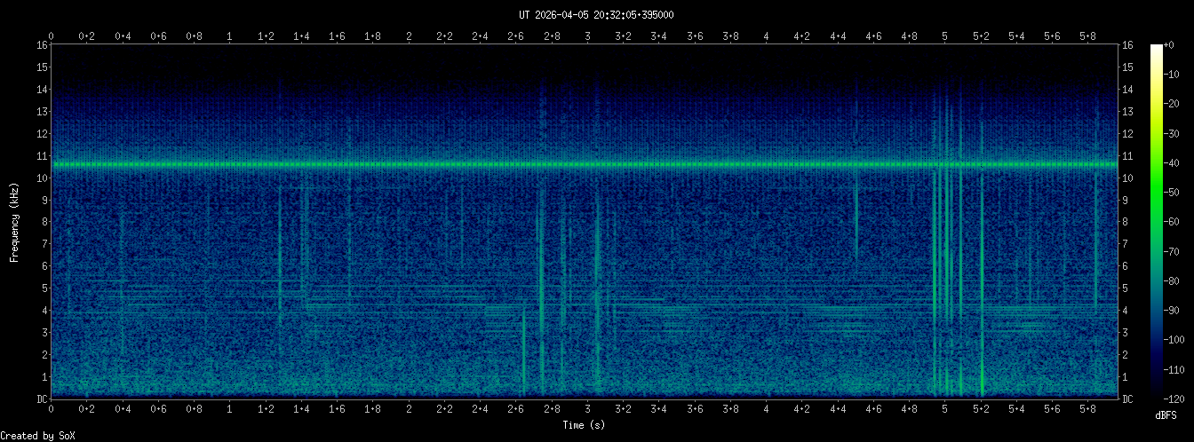 The following images are the recent VLF events received by my system and detected using 'vtevent'. They are sorted from most recent to least recent. When they are classified, they are moved to 'Archive Data' (so this page may be empty at times). This data is regenerated every 10 minutes.