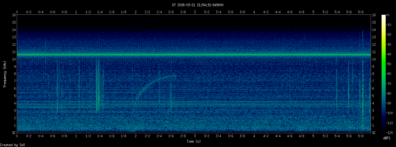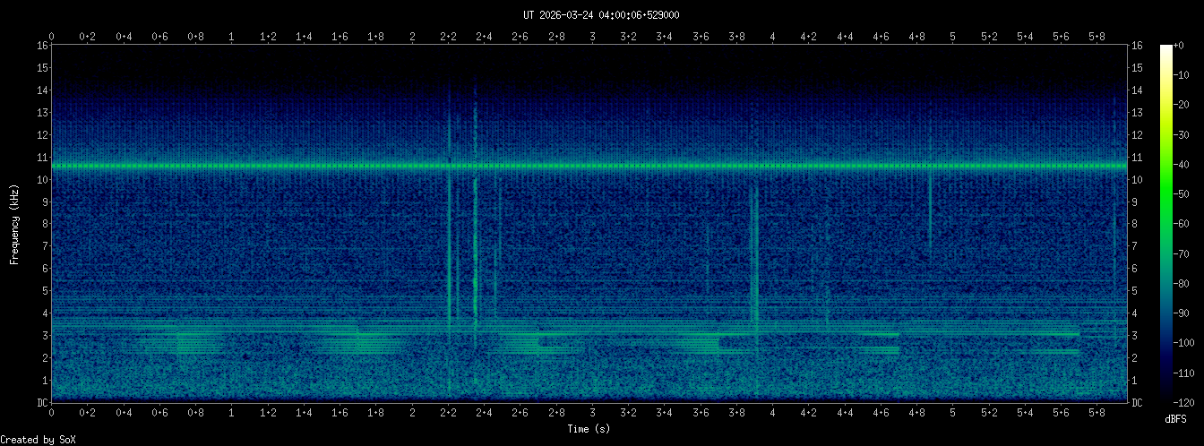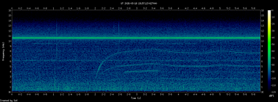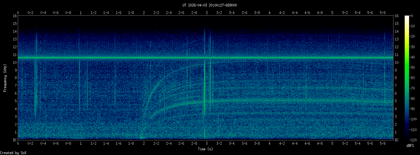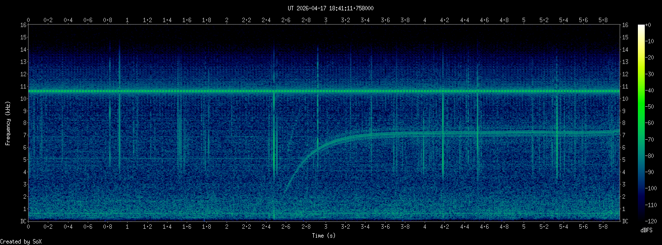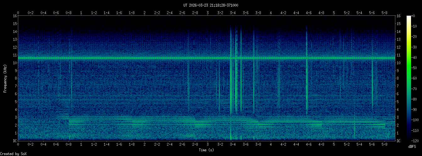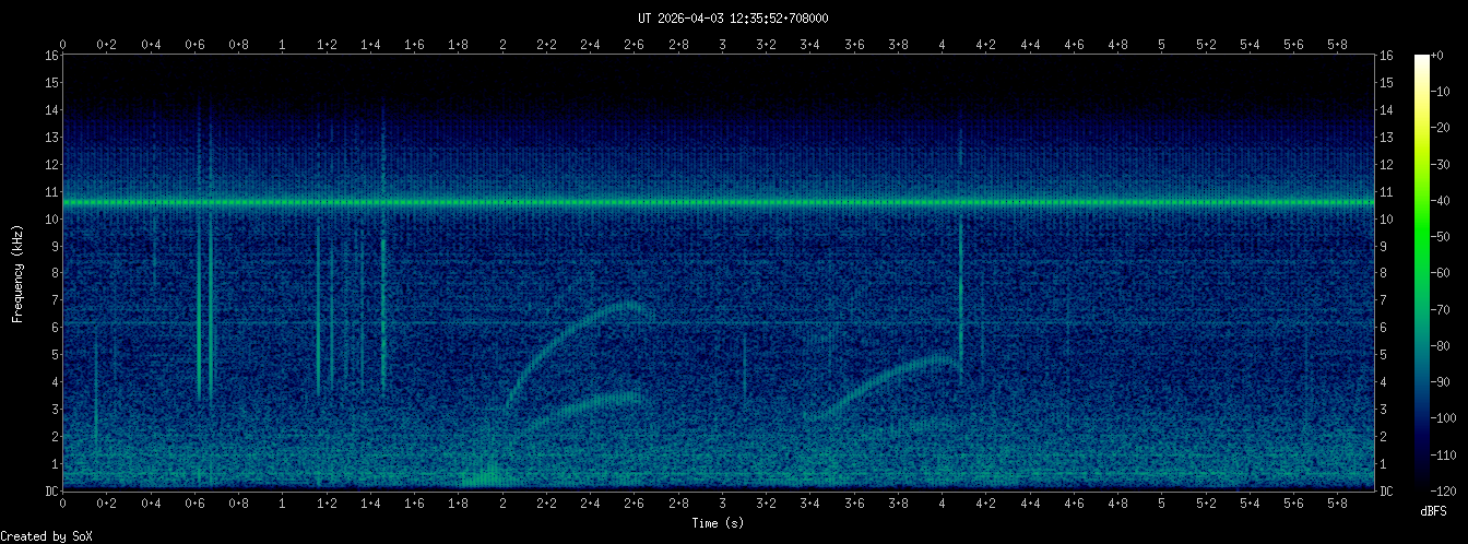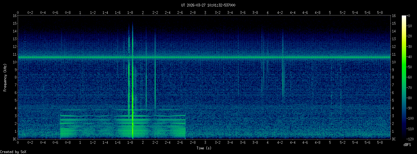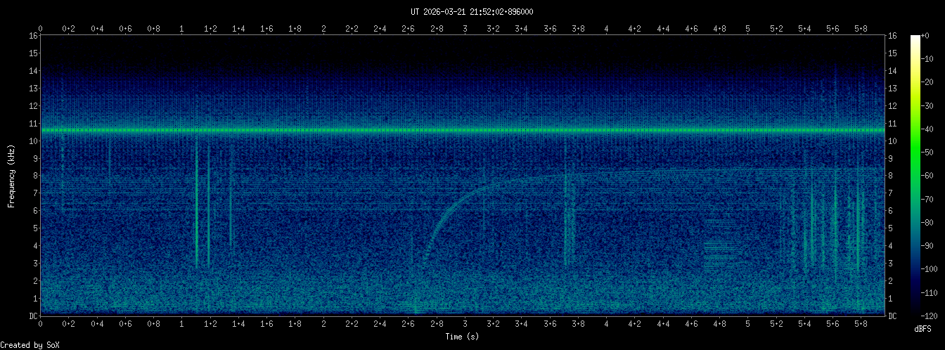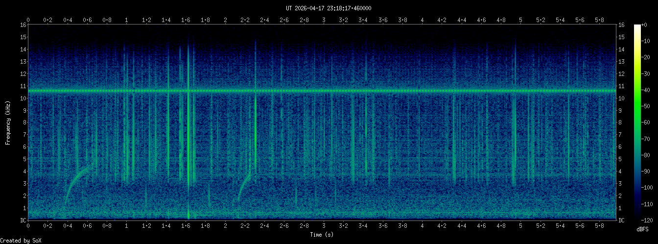 The following images are the recent VLF events received by my system and detected using 'vtevent'. They are sorted from most recent to least recent. When they are classified, they are moved to 'Archive Data' (so this page may be empty at times). This data is regenerated every 10 minutes.