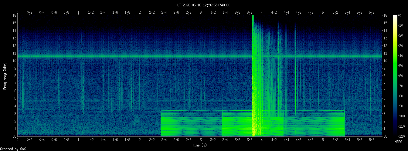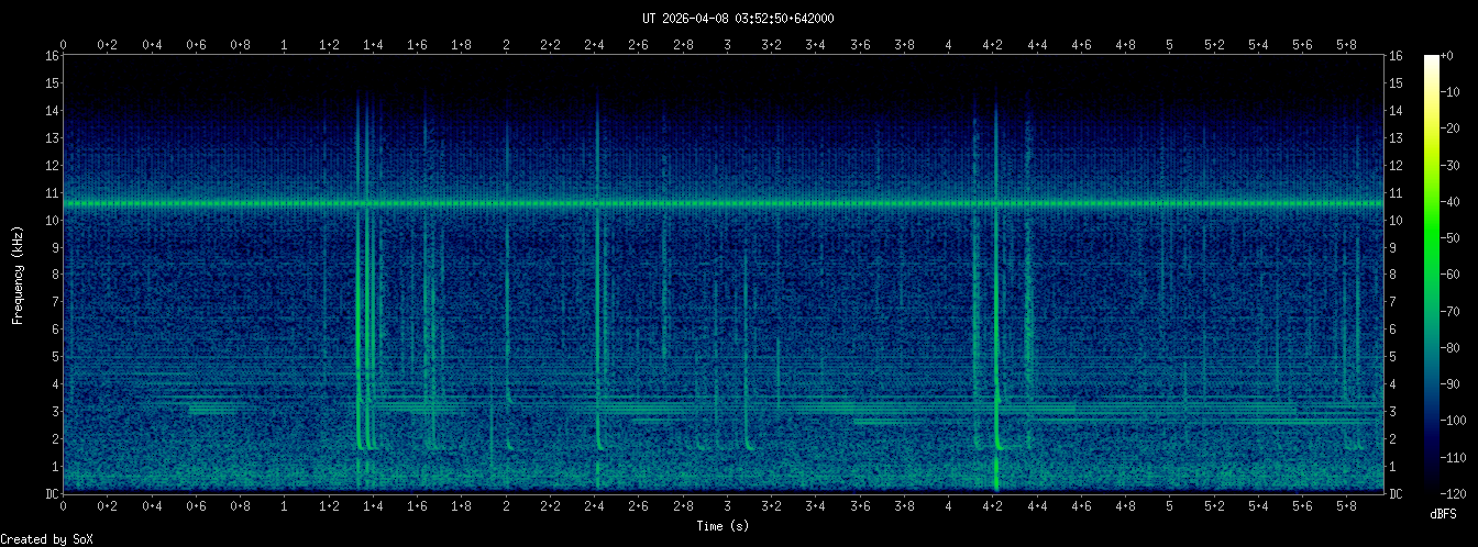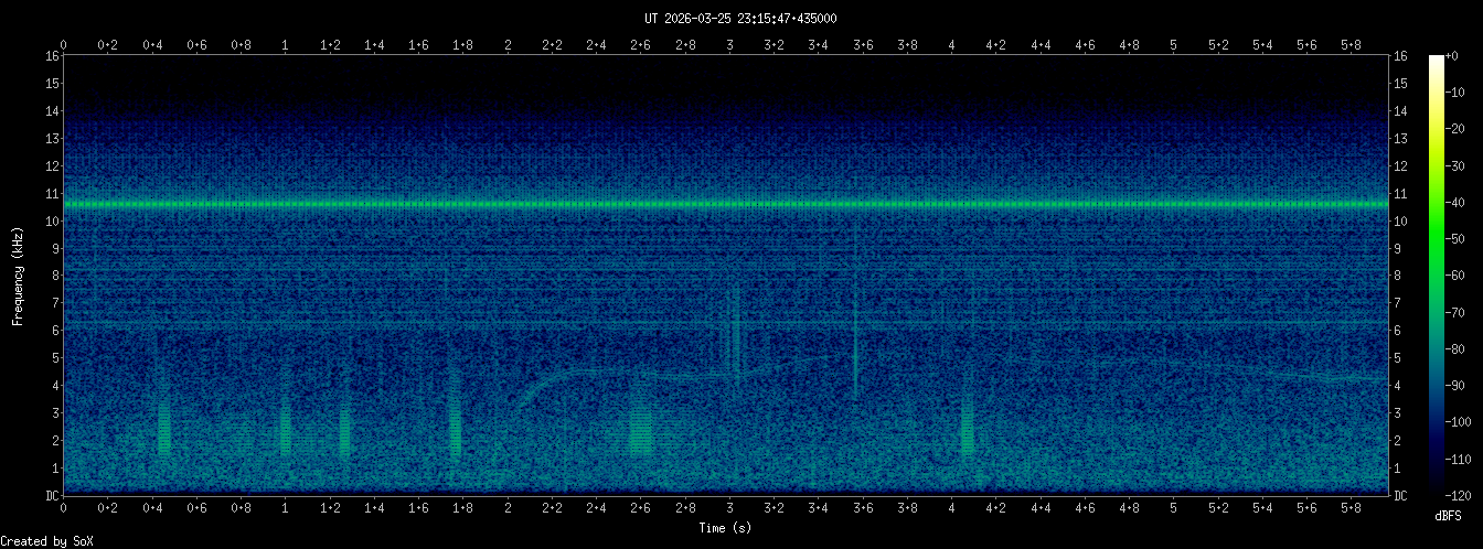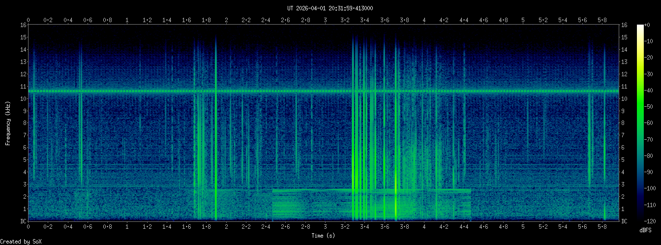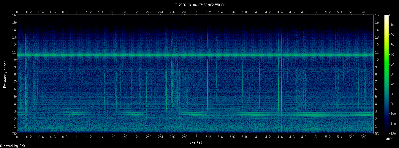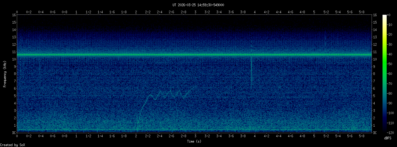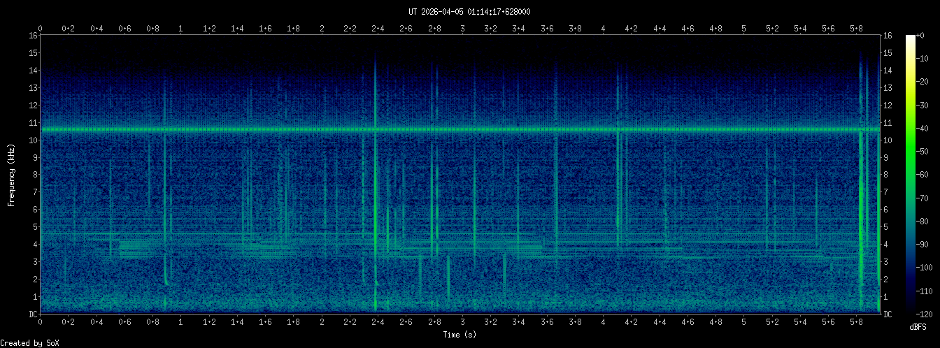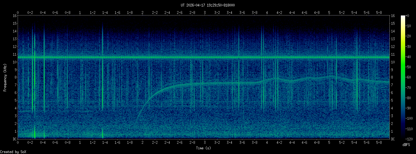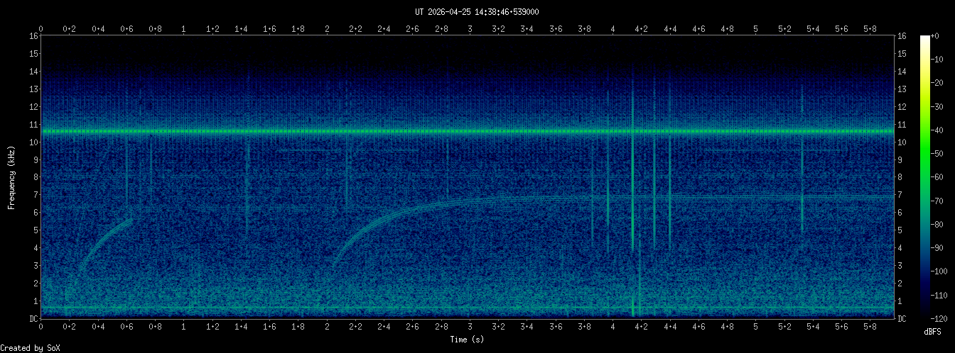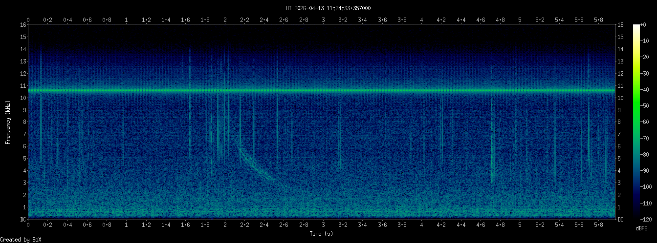 The following images are the recent VLF events received by my system and detected using 'vtevent'. They are sorted from most recent to least recent. When they are classified, they are moved to 'Archive Data' (so this page may be empty at times). This data is regenerated every 10 minutes.