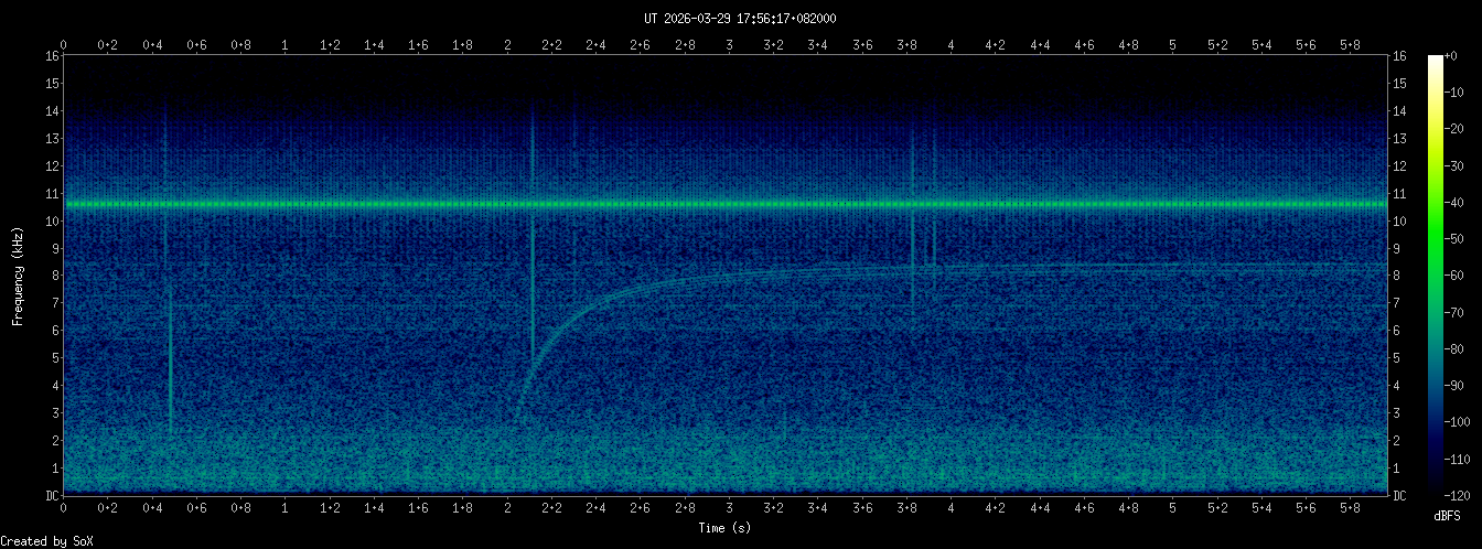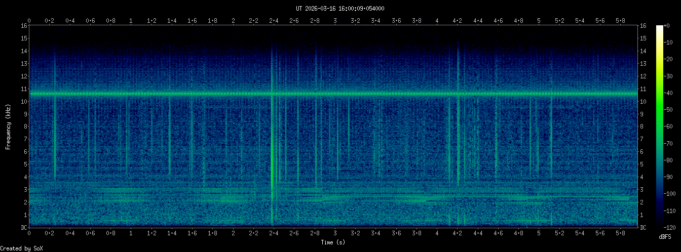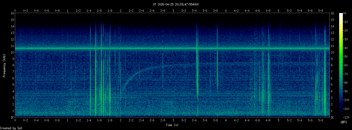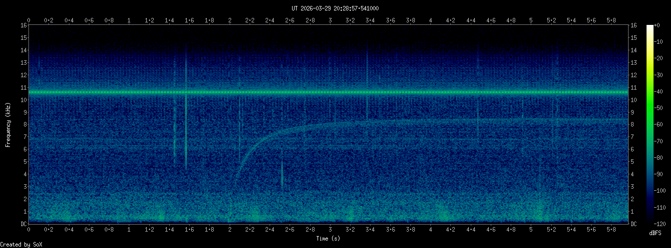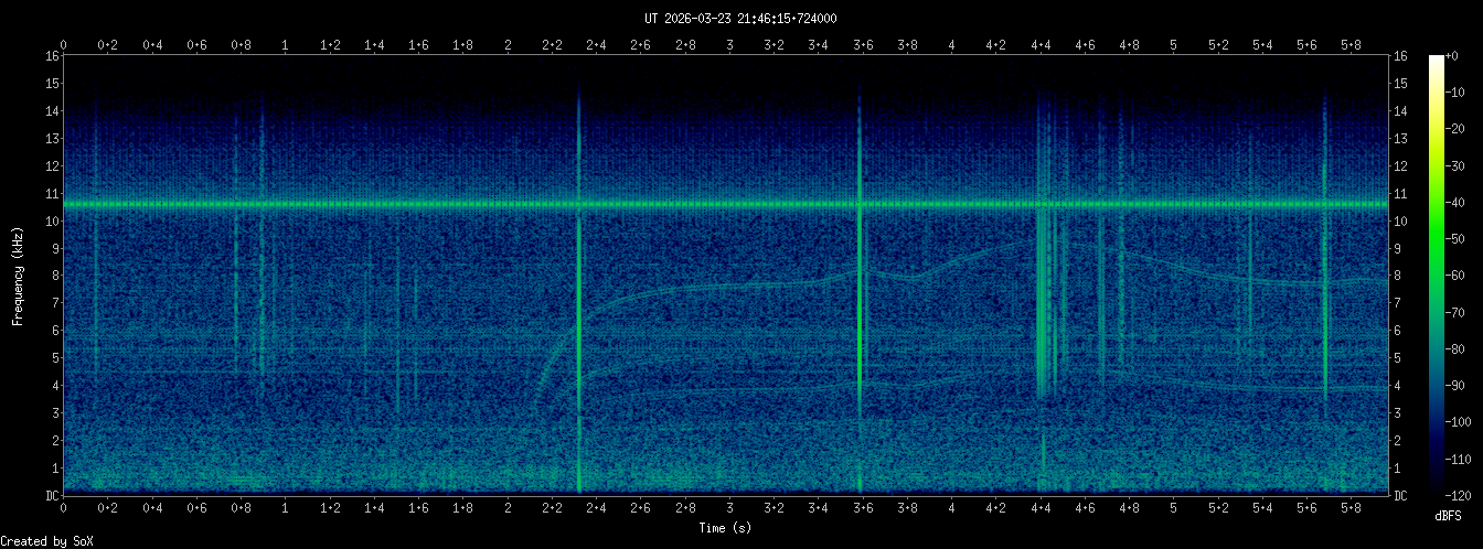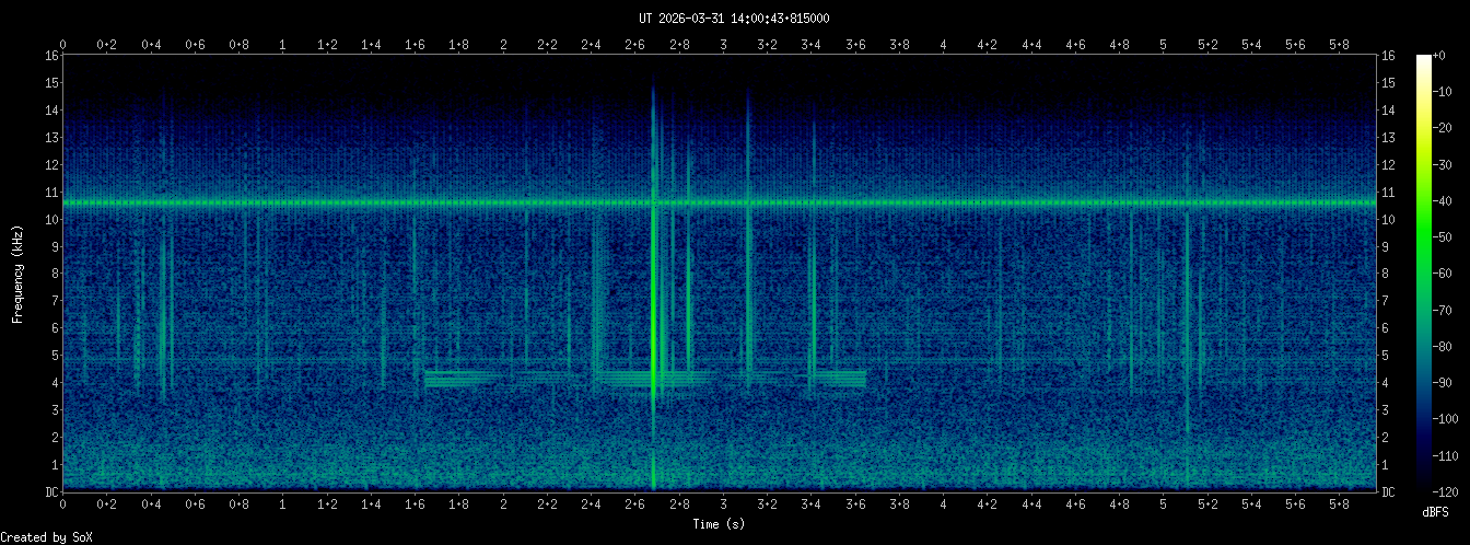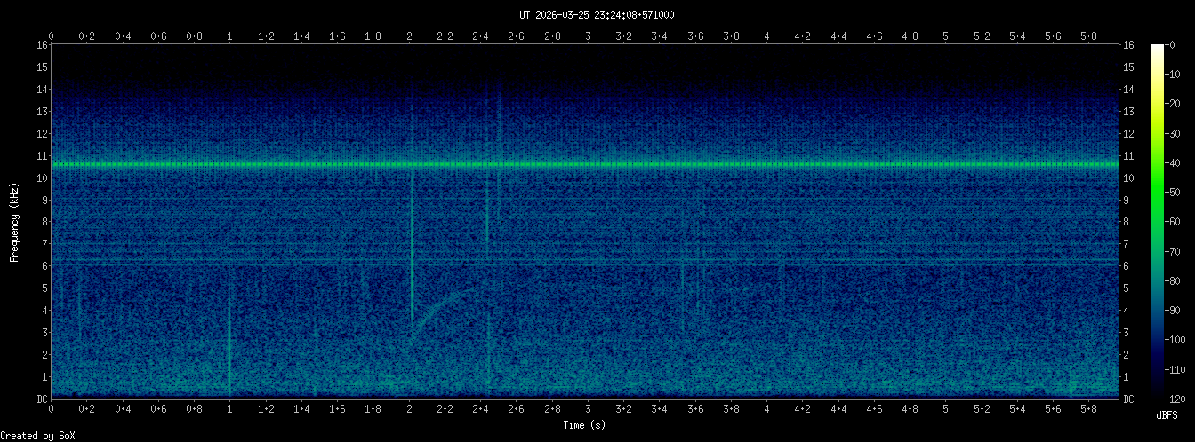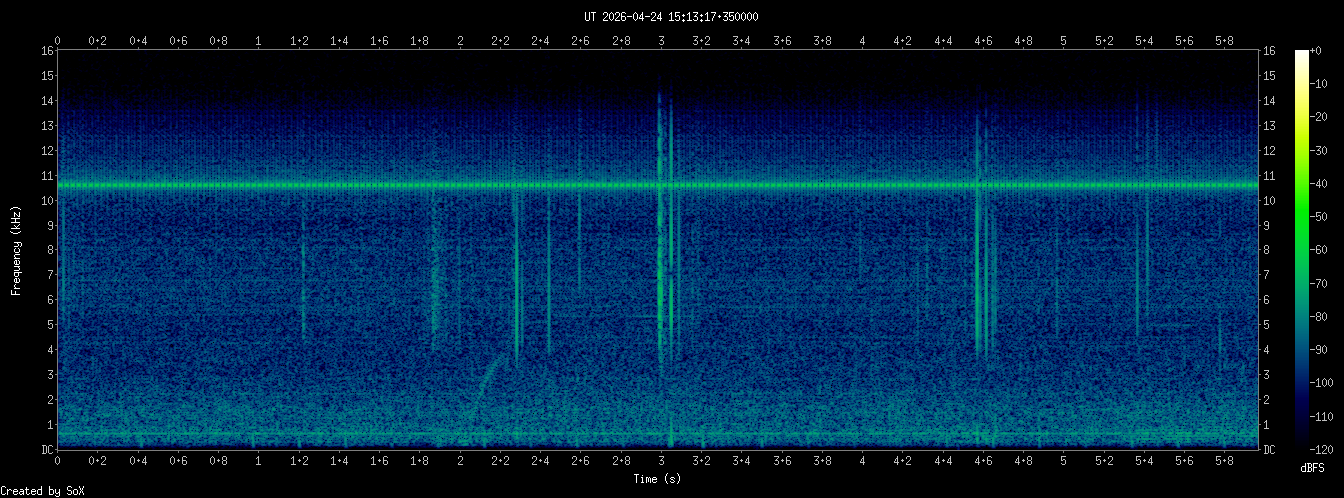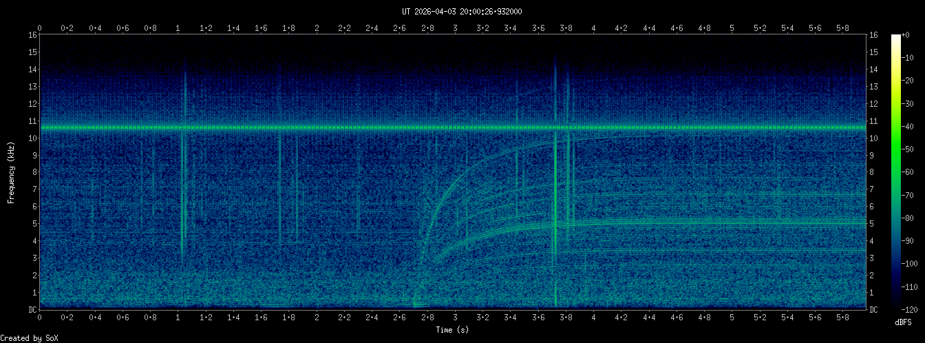 The following images are the recent VLF events received by my system and detected using 'vtevent'. They are sorted from most recent to least recent. When they are classified, they are moved to 'Archive Data' (so this page may be empty at times). This data is regenerated every 10 minutes.