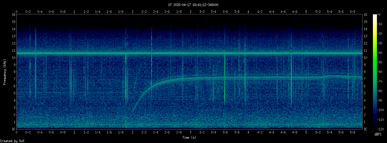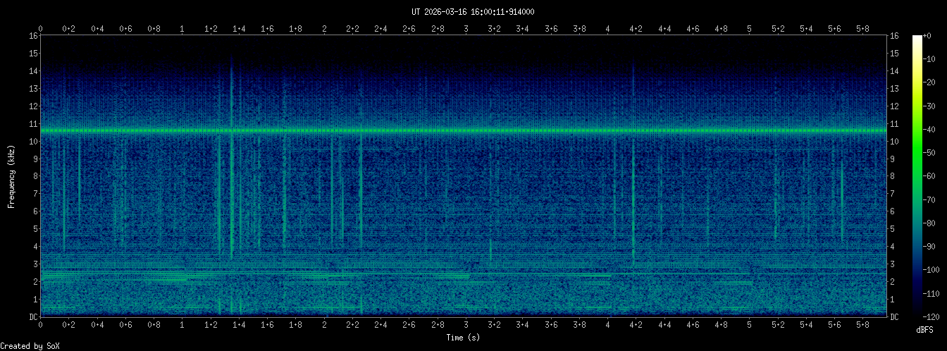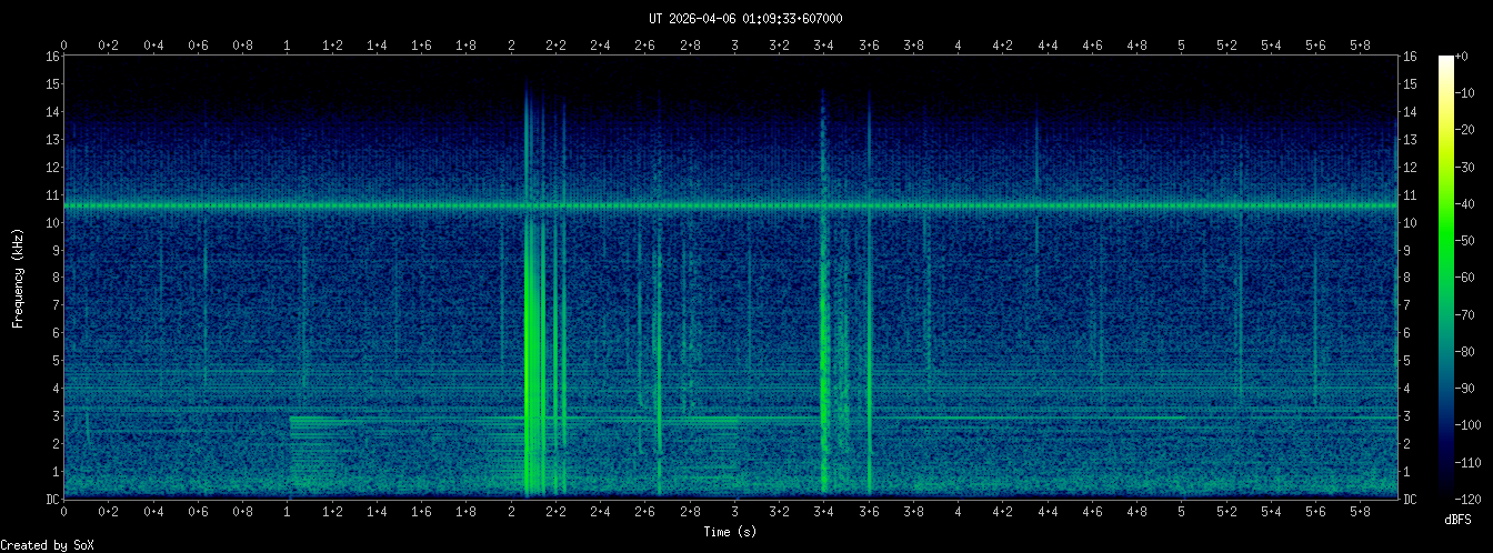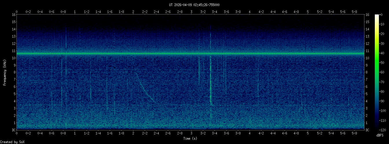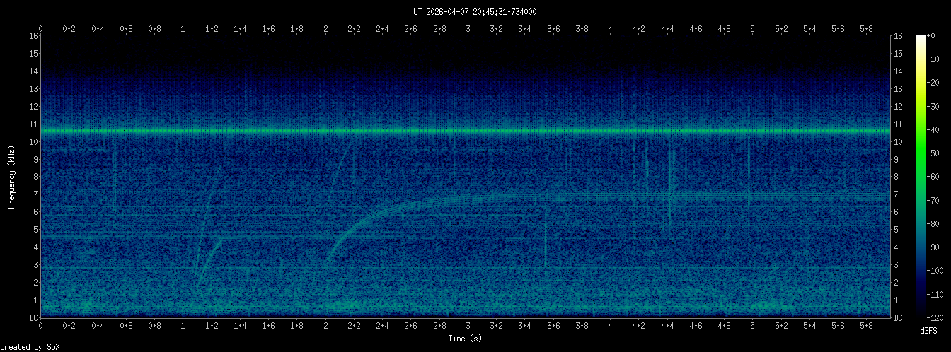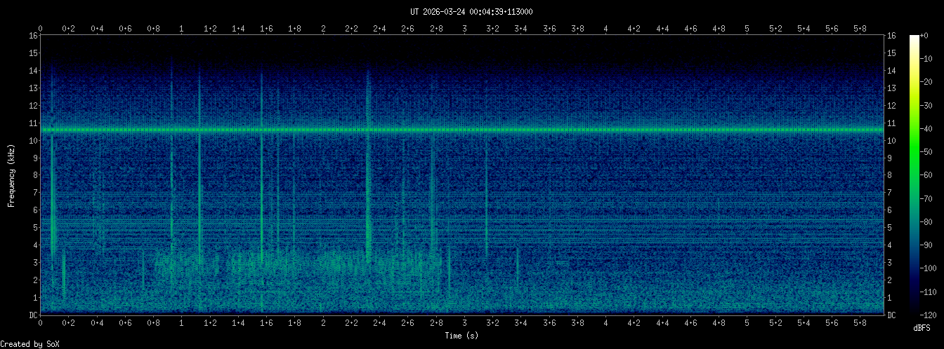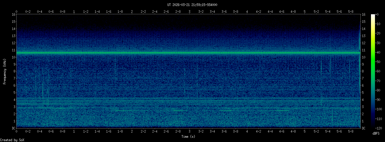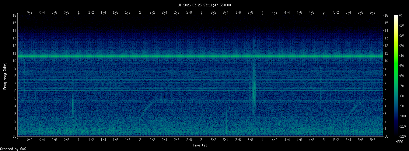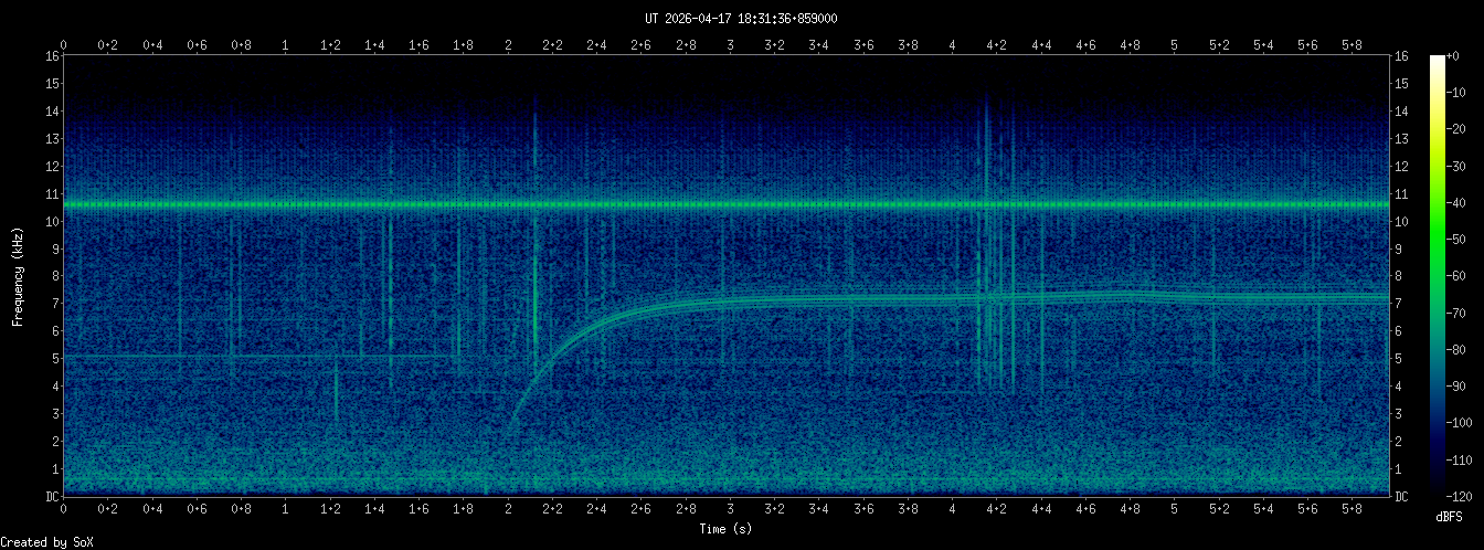 The following images are the recent VLF events received by my system and detected using 'vtevent'. They are sorted from most recent to least recent. When they are classified, they are moved to 'Archive Data' (so this page may be empty at times). This data is regenerated every 10 minutes.