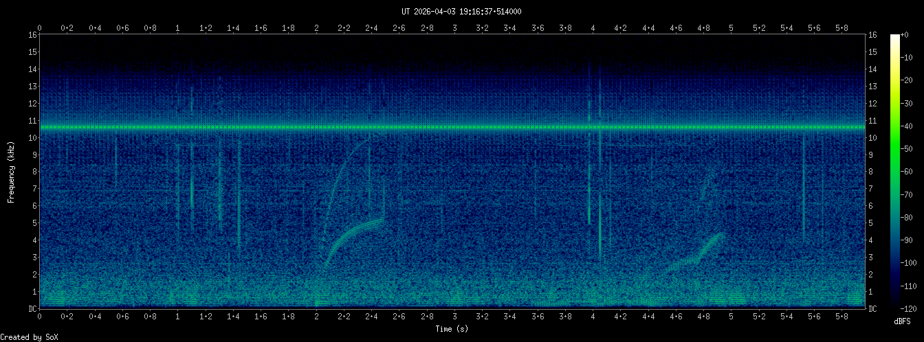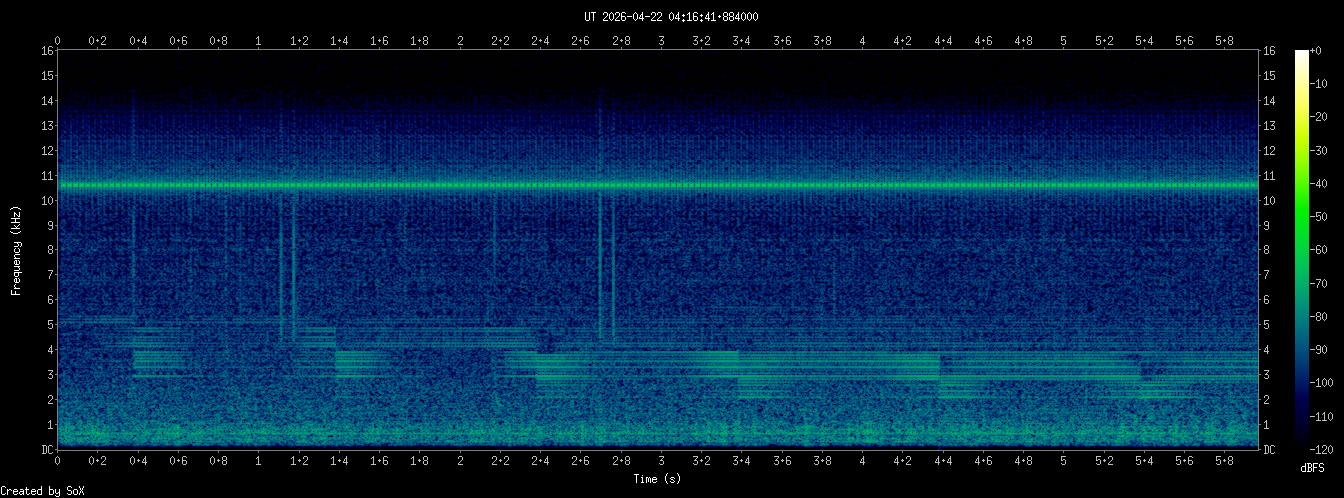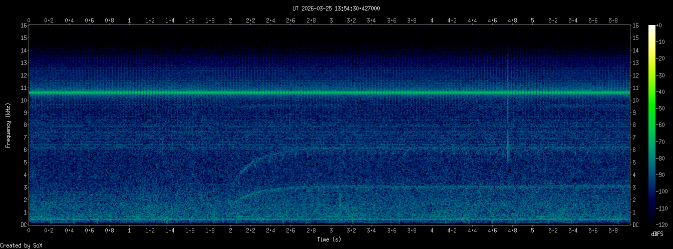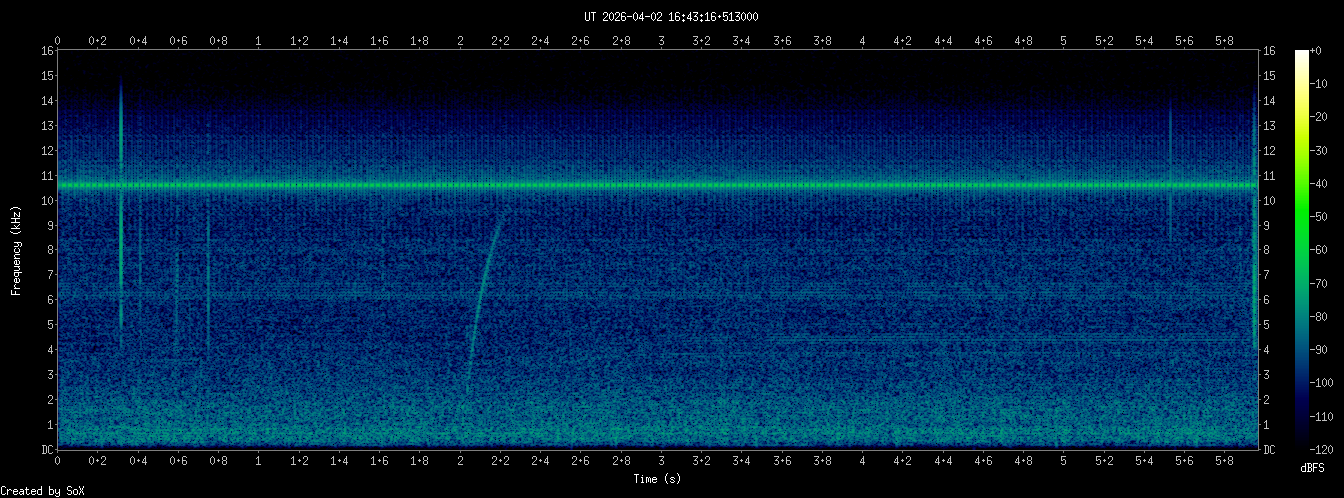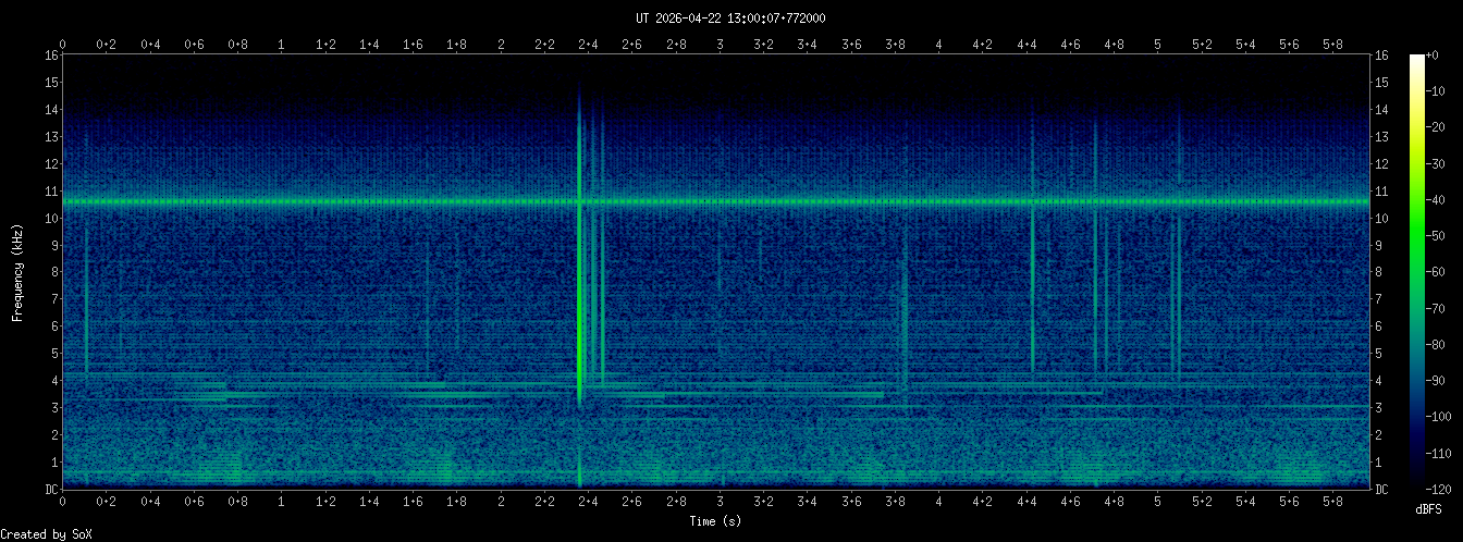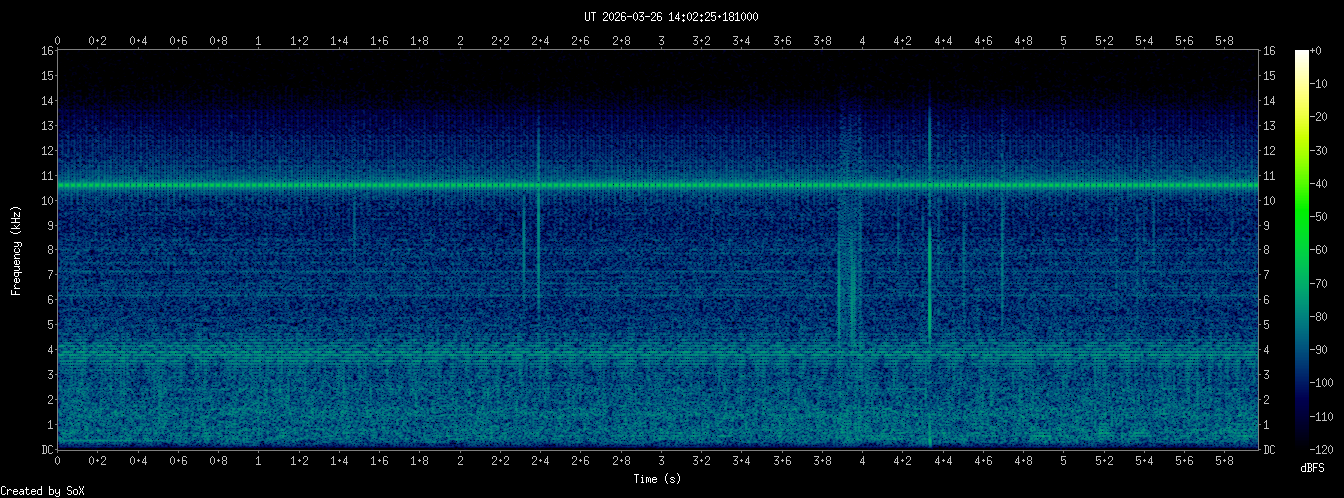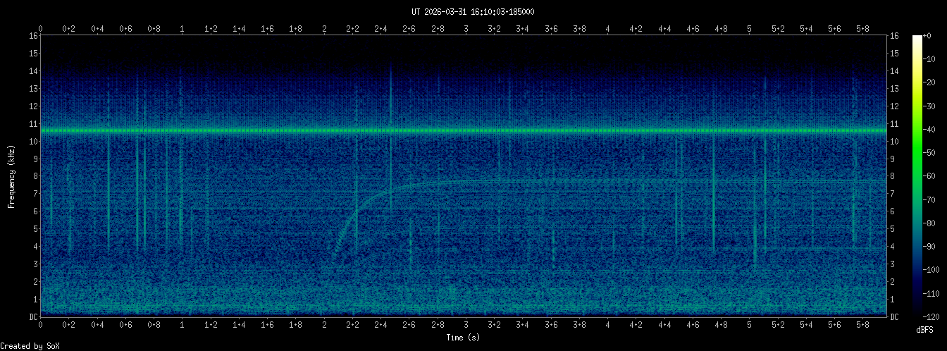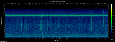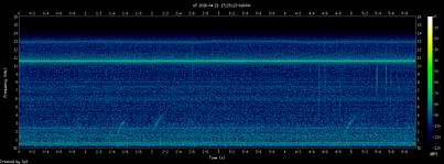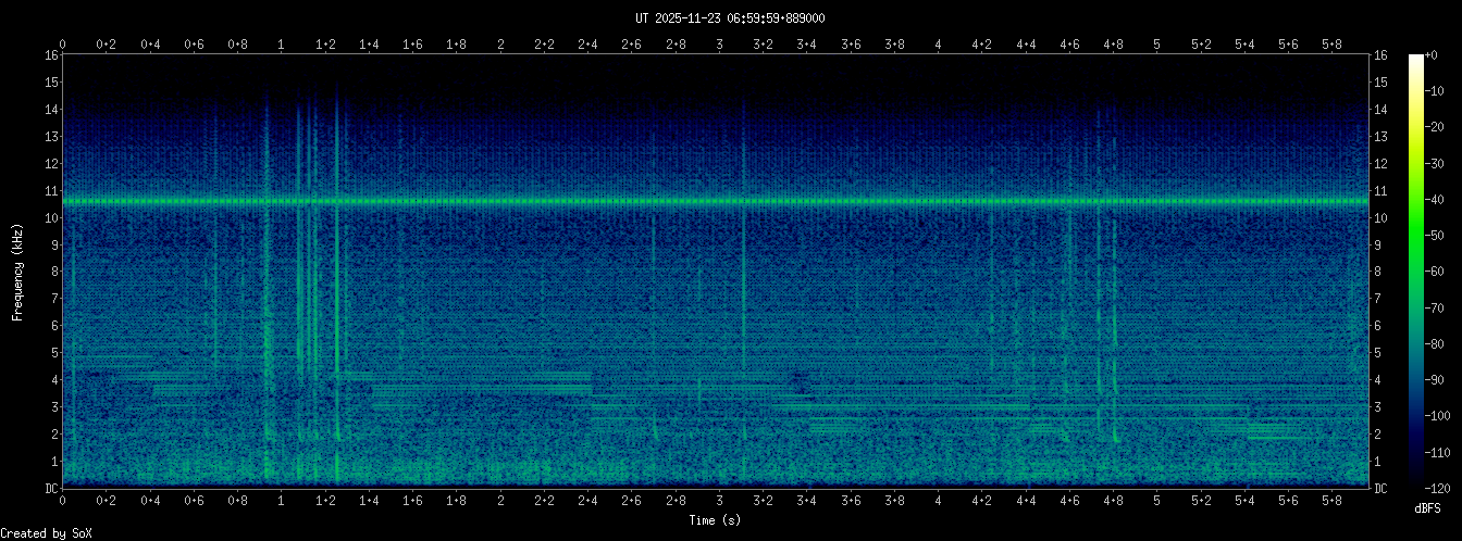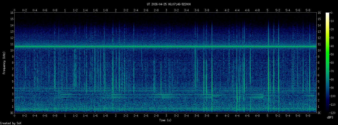 The following images are the recent VLF events received by my system and detected using 'vtevent'. They are sorted from most recent to least recent. When they are classified, they are moved to 'Archive Data' (so this page may be empty at times). This data is regenerated every 10 minutes.
