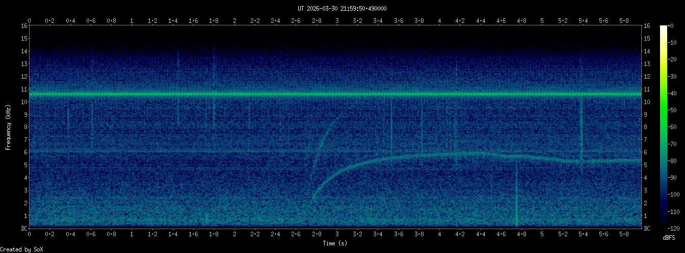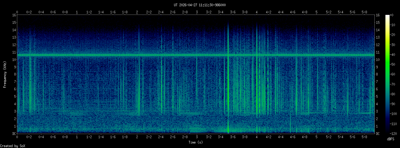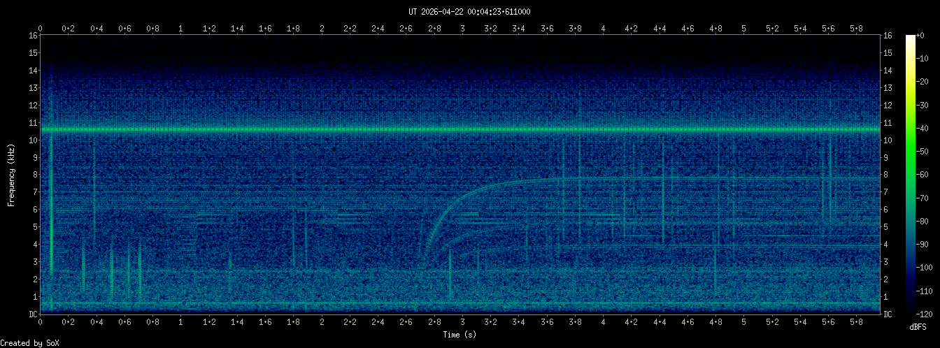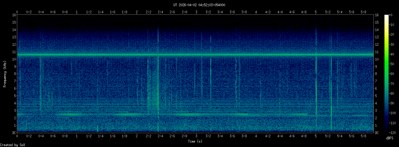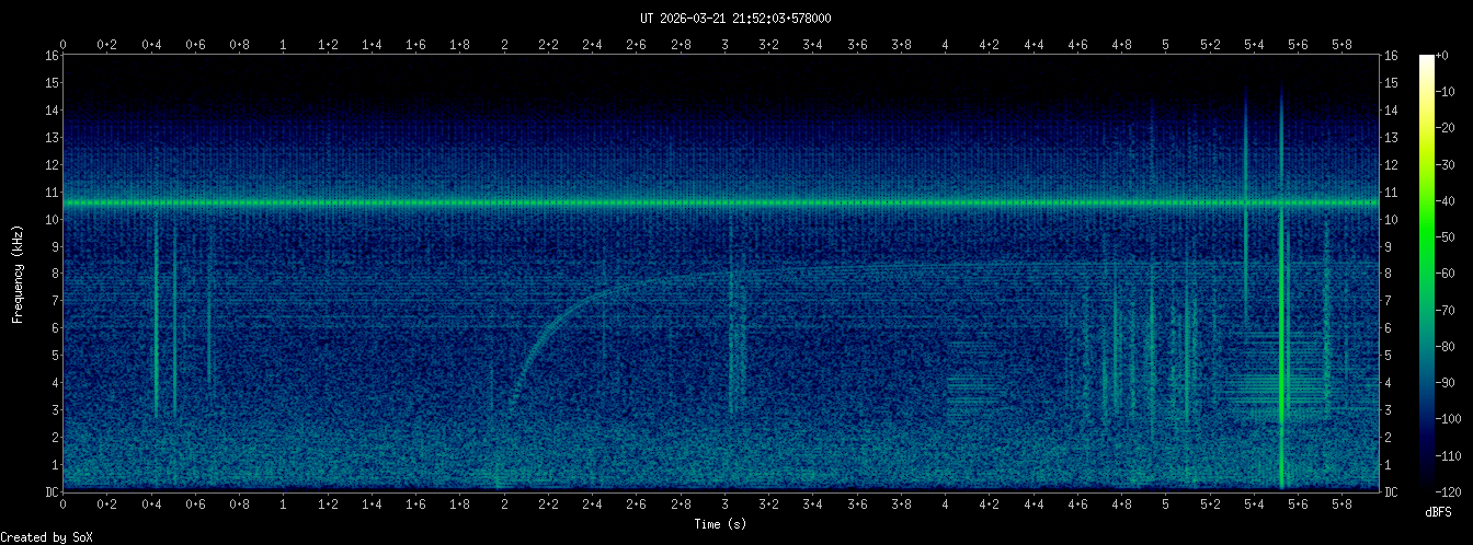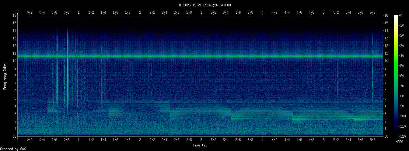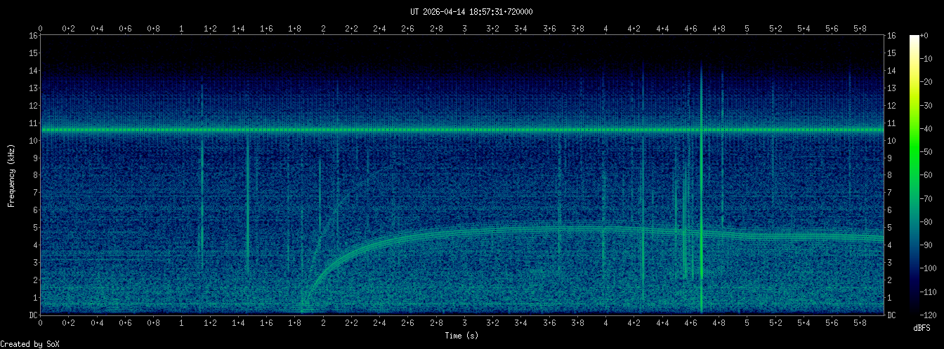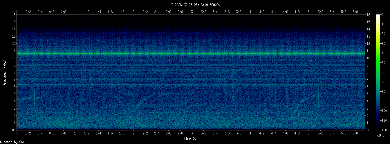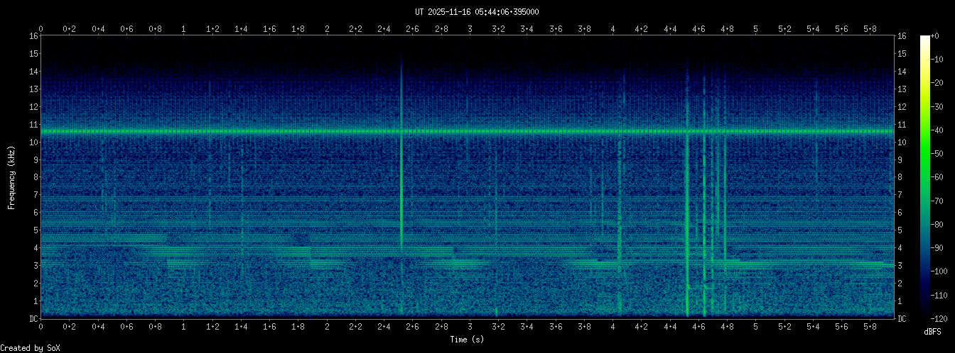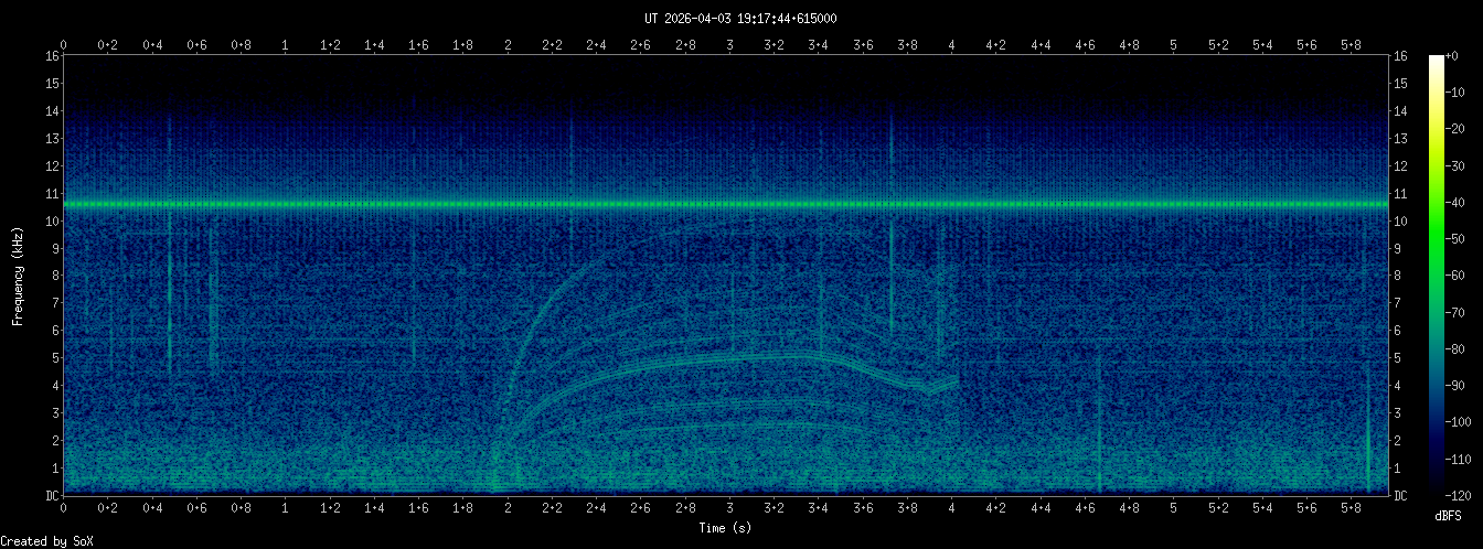 The following images are the recent VLF events received by my system and detected using 'vtevent'. They are sorted from most recent to least recent. When they are classified, they are moved to 'Archive Data' (so this page may be empty at times). This data is regenerated every 10 minutes.