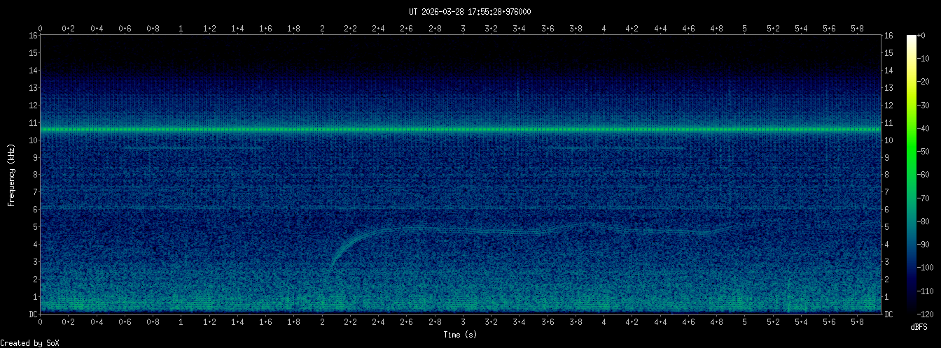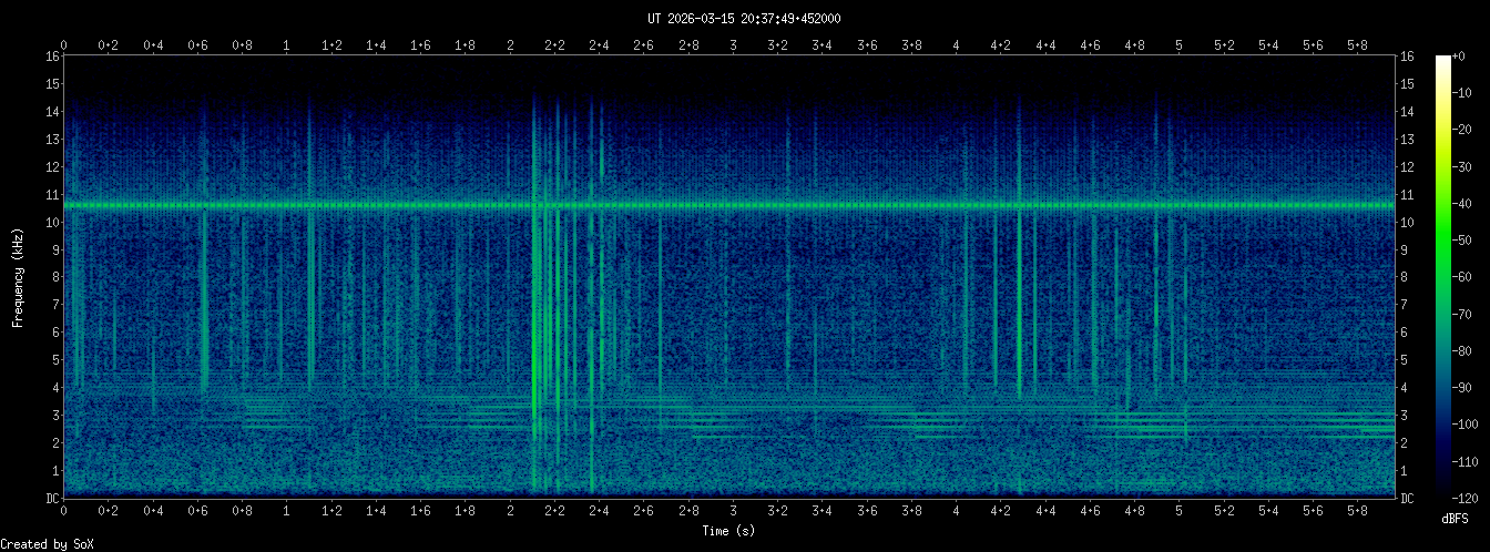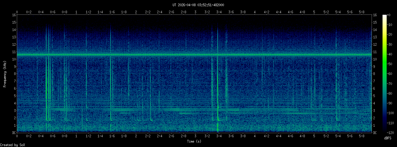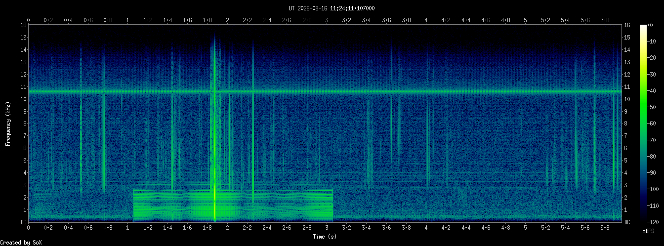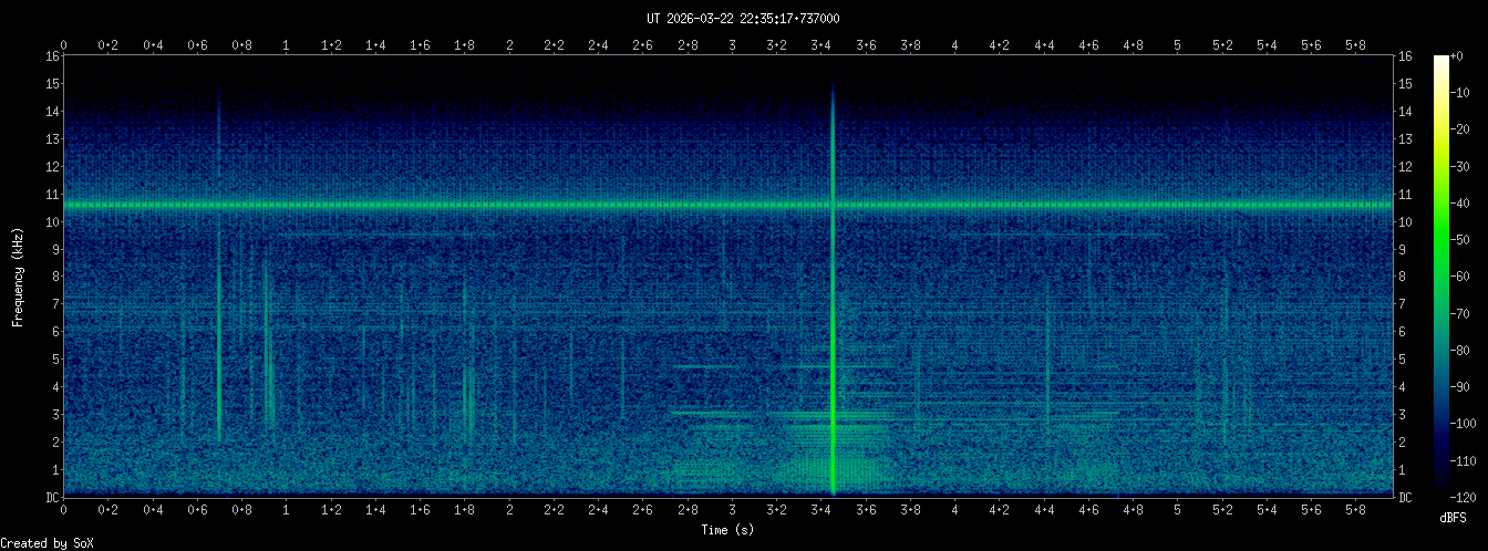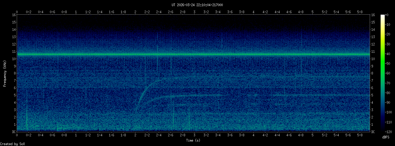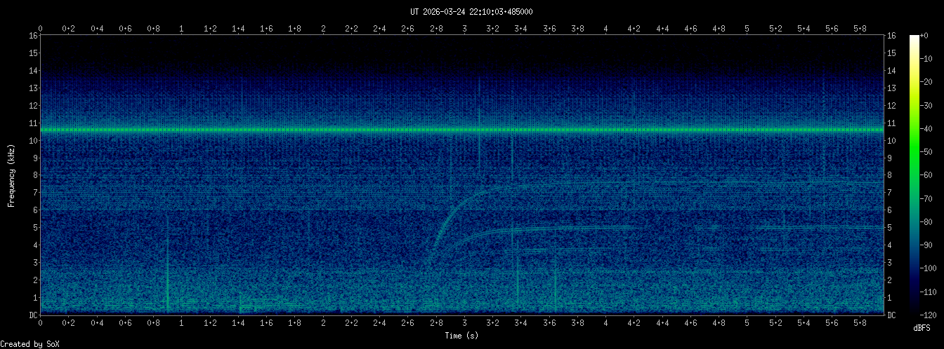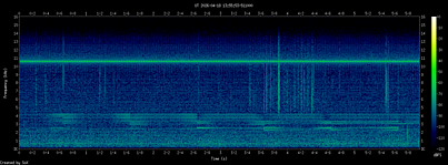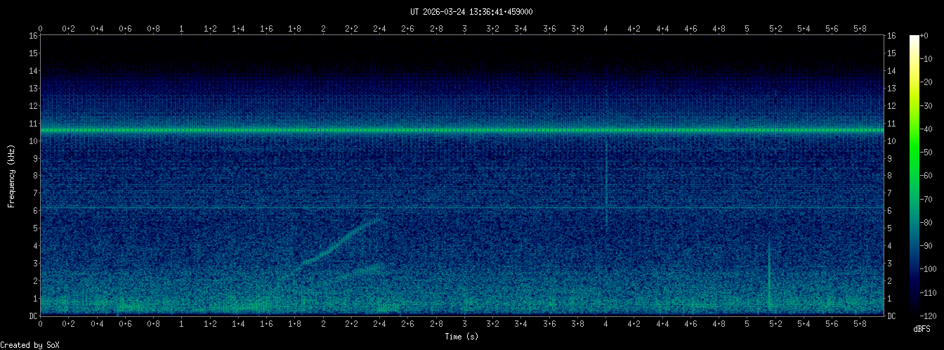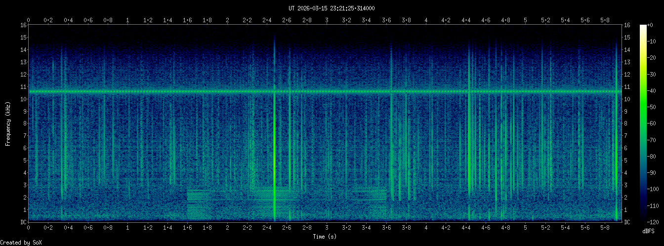 The following images are the recent VLF events received by my system and detected using 'vtevent'. They are sorted from most recent to least recent. When they are classified, they are moved to 'Archive Data' (so this page may be empty at times). This data is regenerated every 10 minutes.