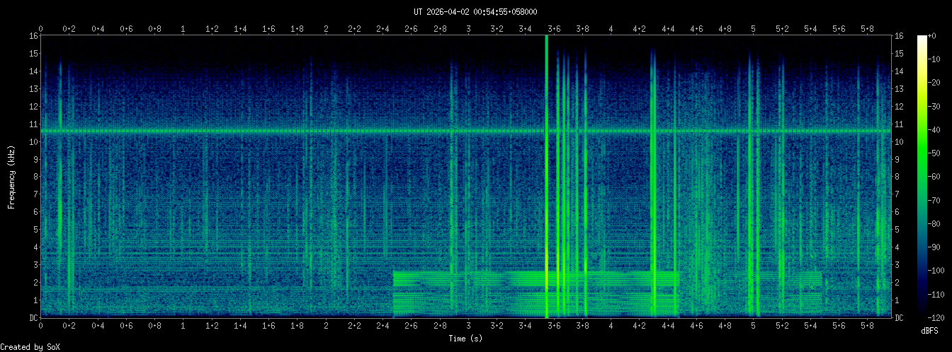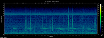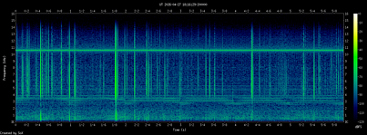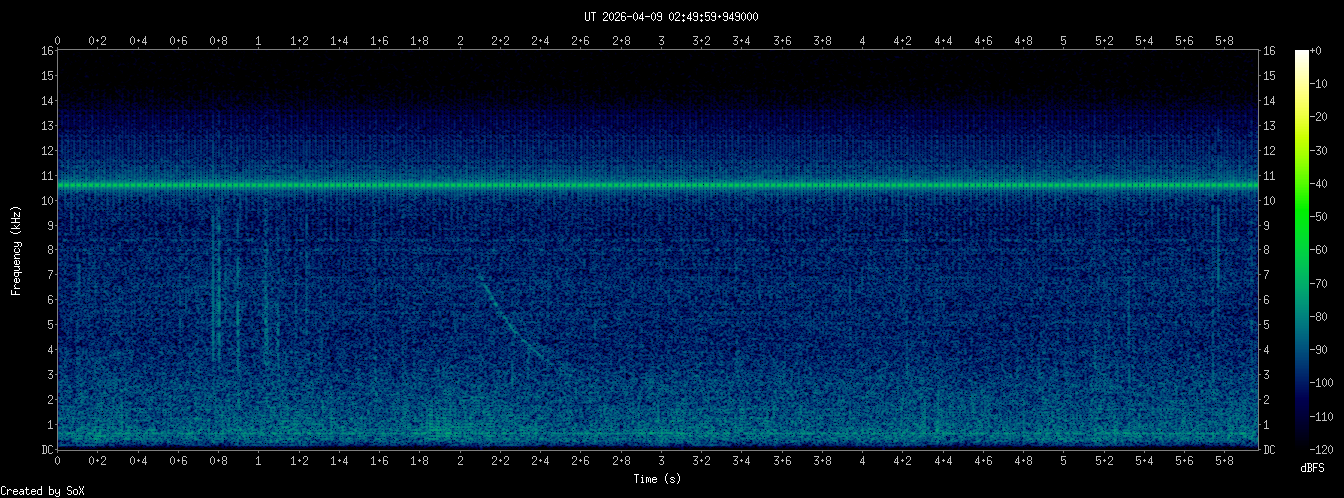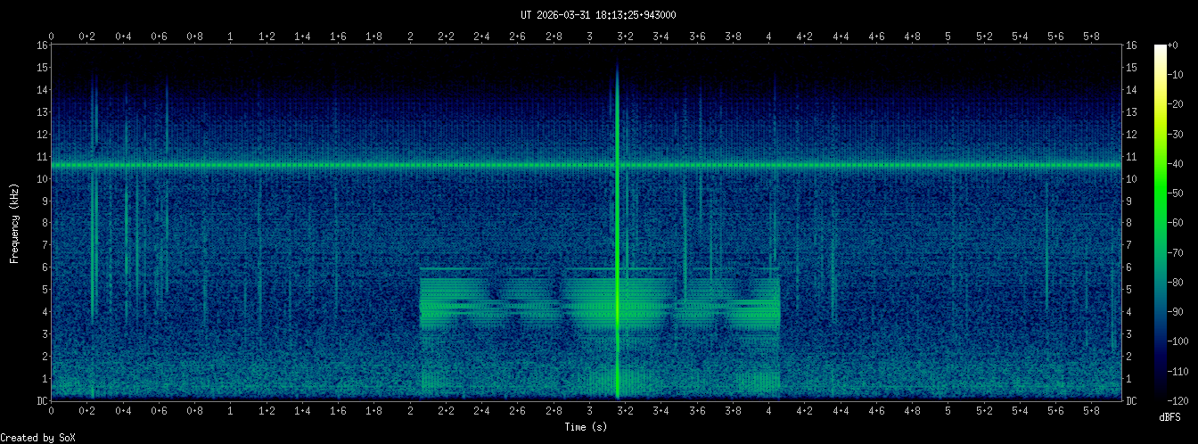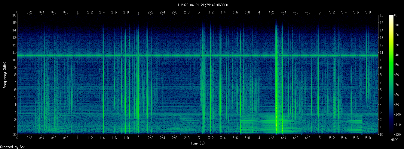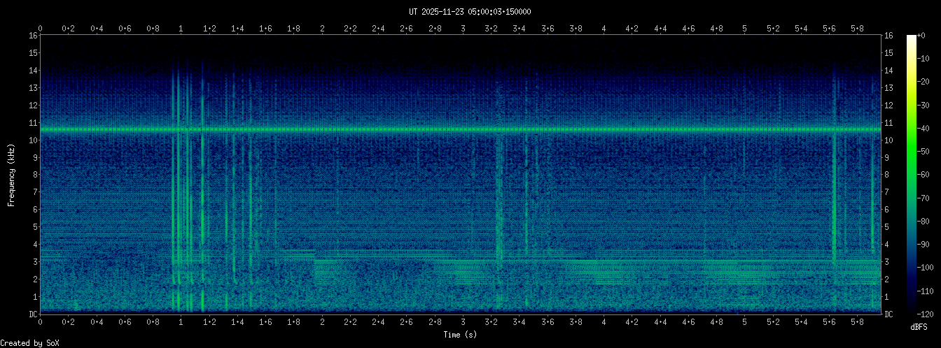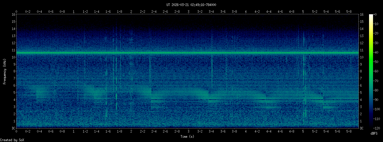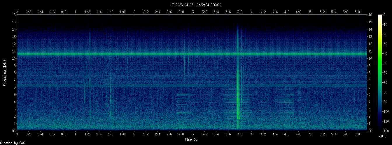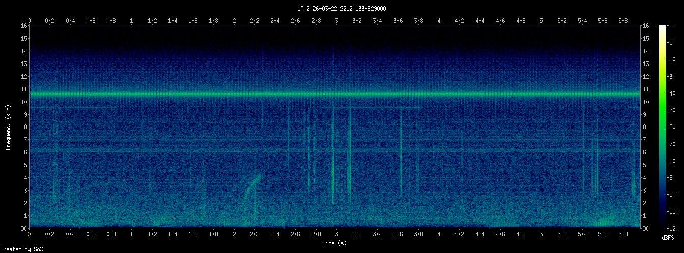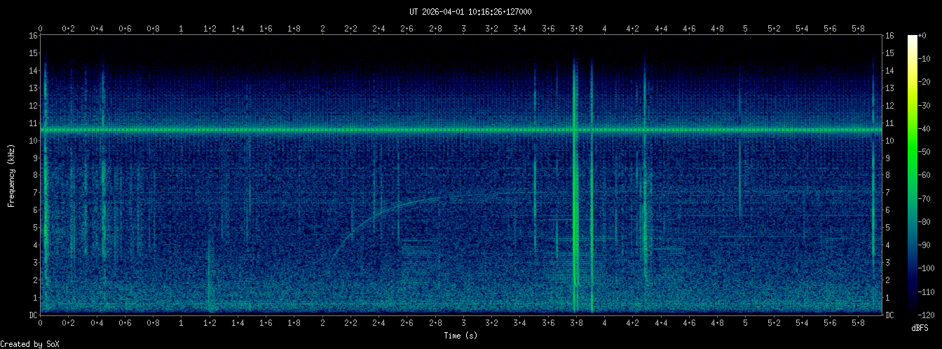 The following images are the recent VLF events received by my system and detected using 'vtevent'. They are sorted from most recent to least recent. When they are classified, they are moved to 'Archive Data' (so this page may be empty at times). This data is regenerated every 10 minutes.