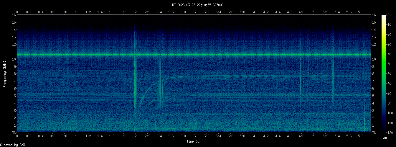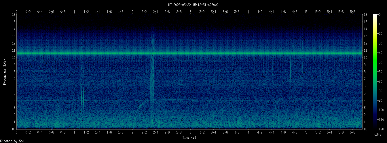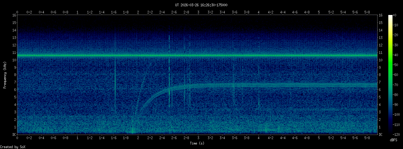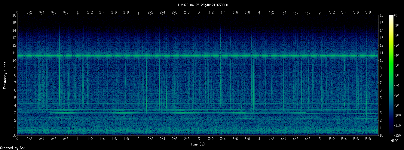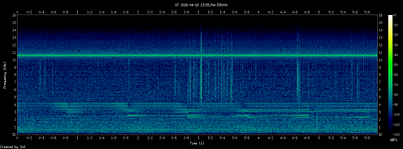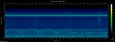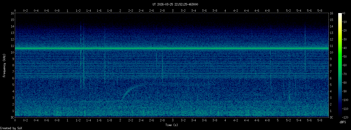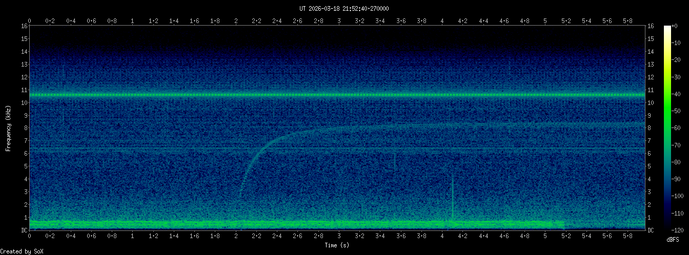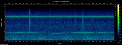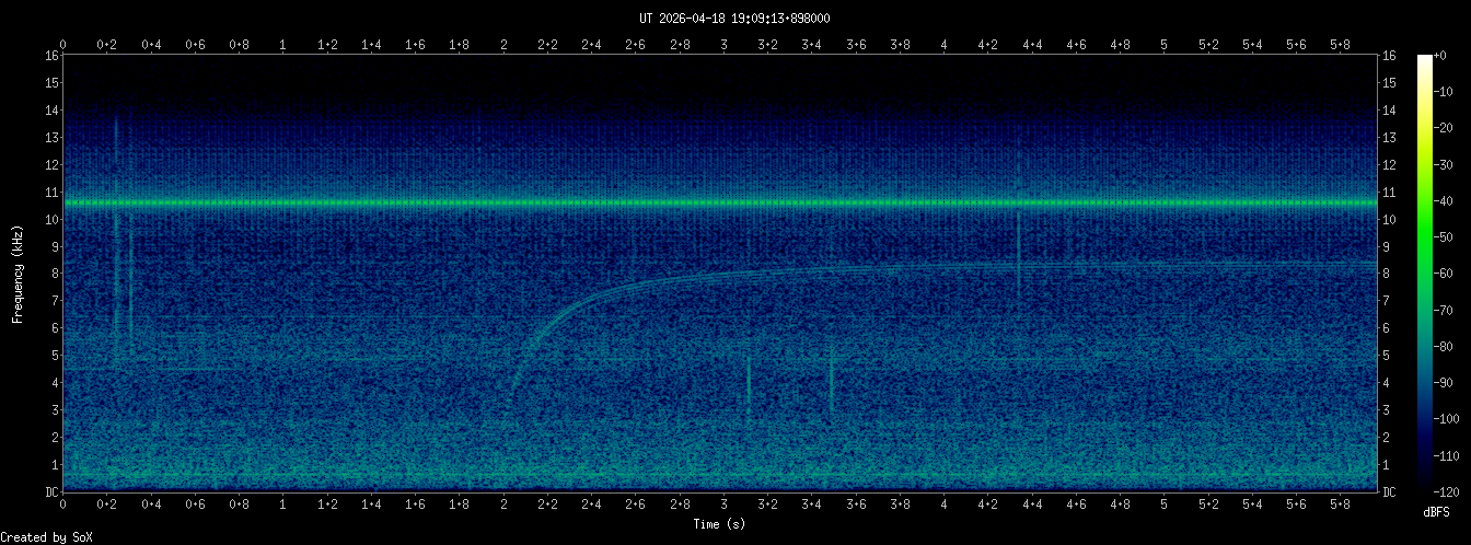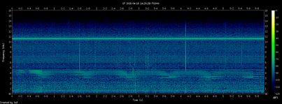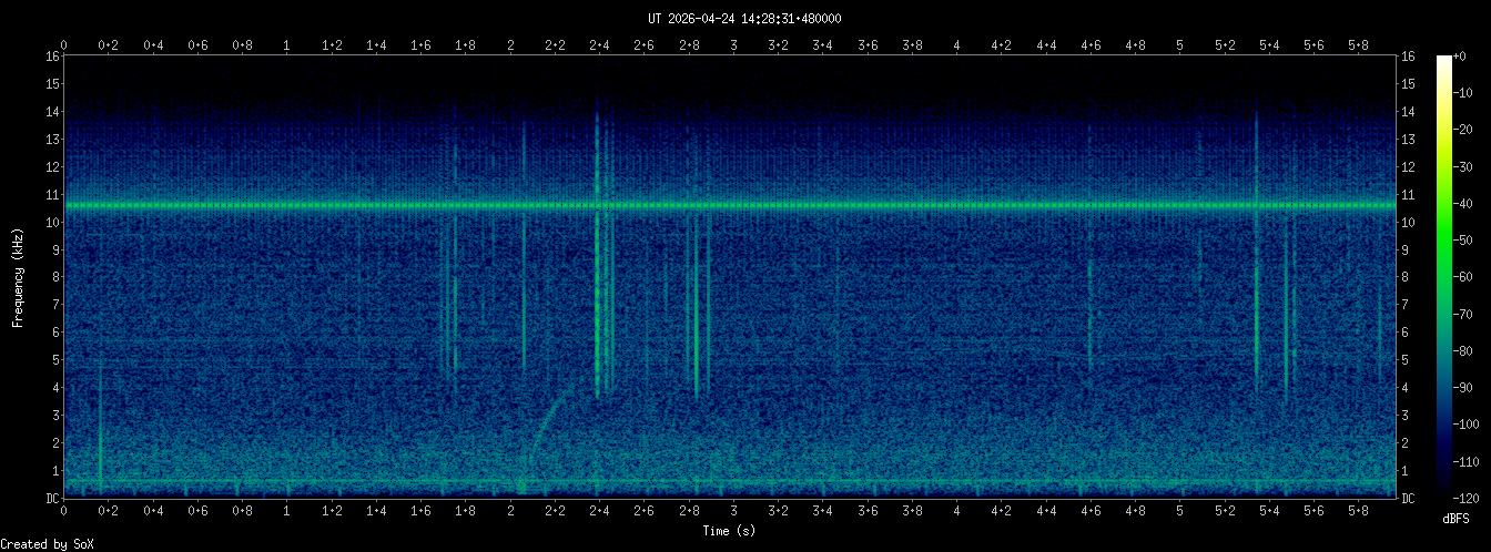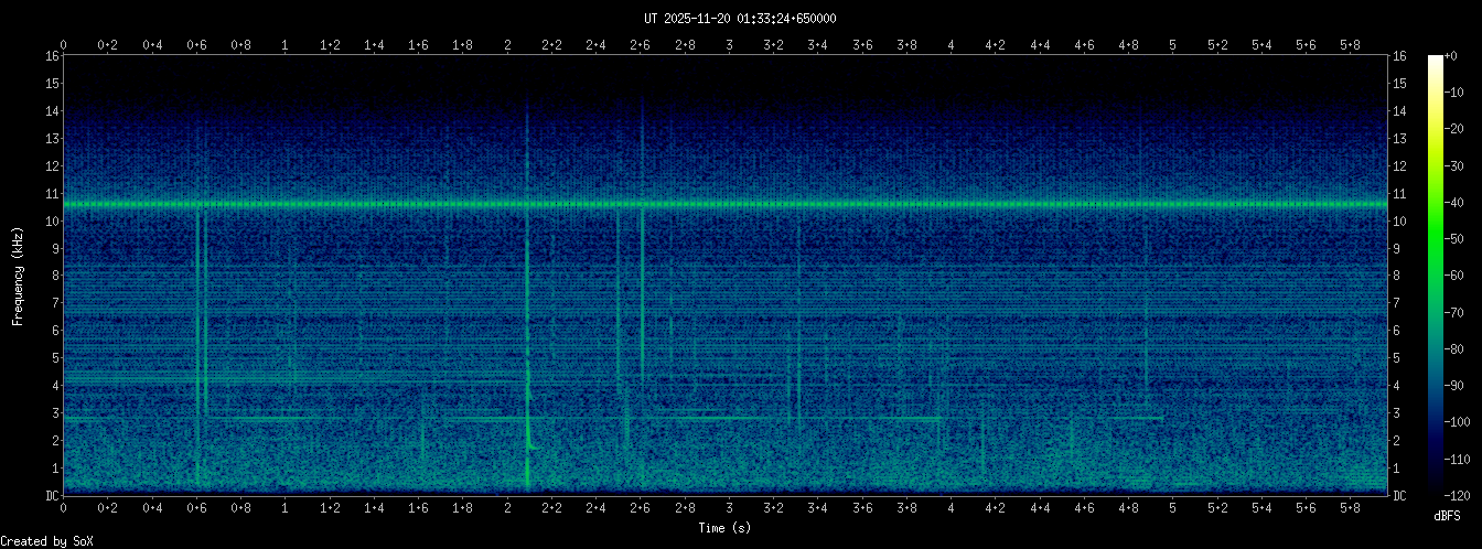 The following images are the recent VLF events received by my system and detected using 'vtevent'. They are sorted from most recent to least recent. When they are classified, they are moved to 'Archive Data' (so this page may be empty at times). This data is regenerated every 10 minutes.