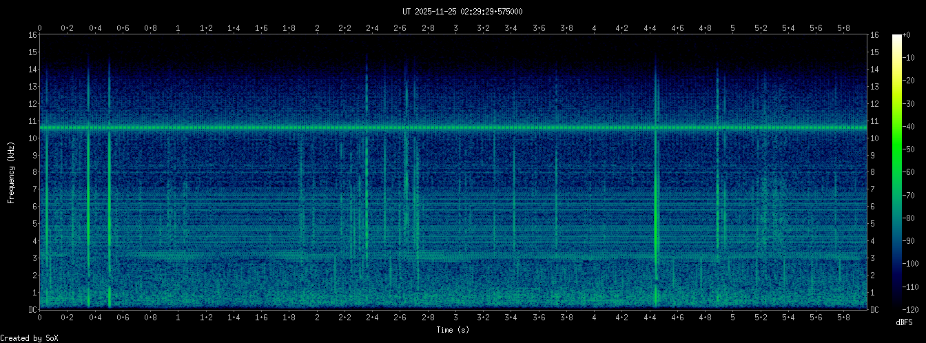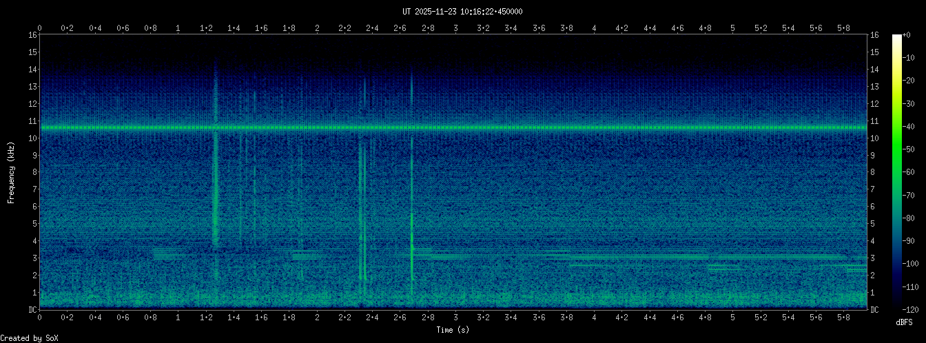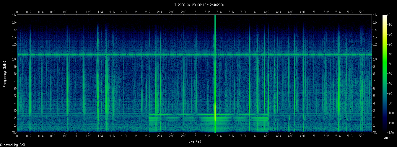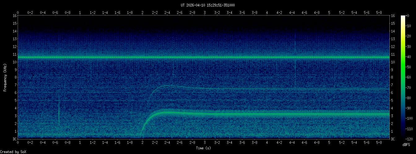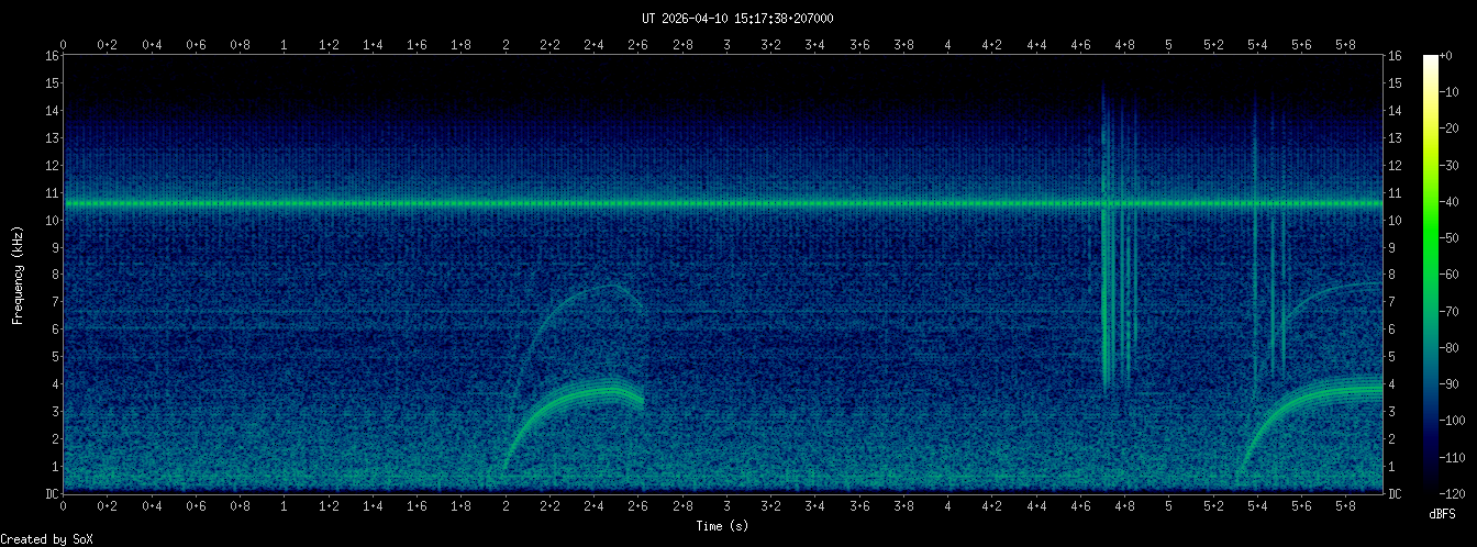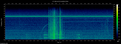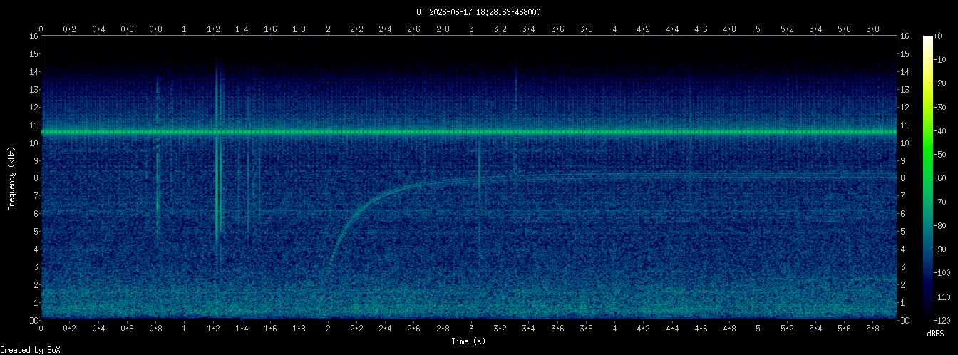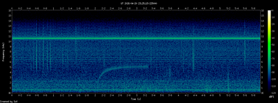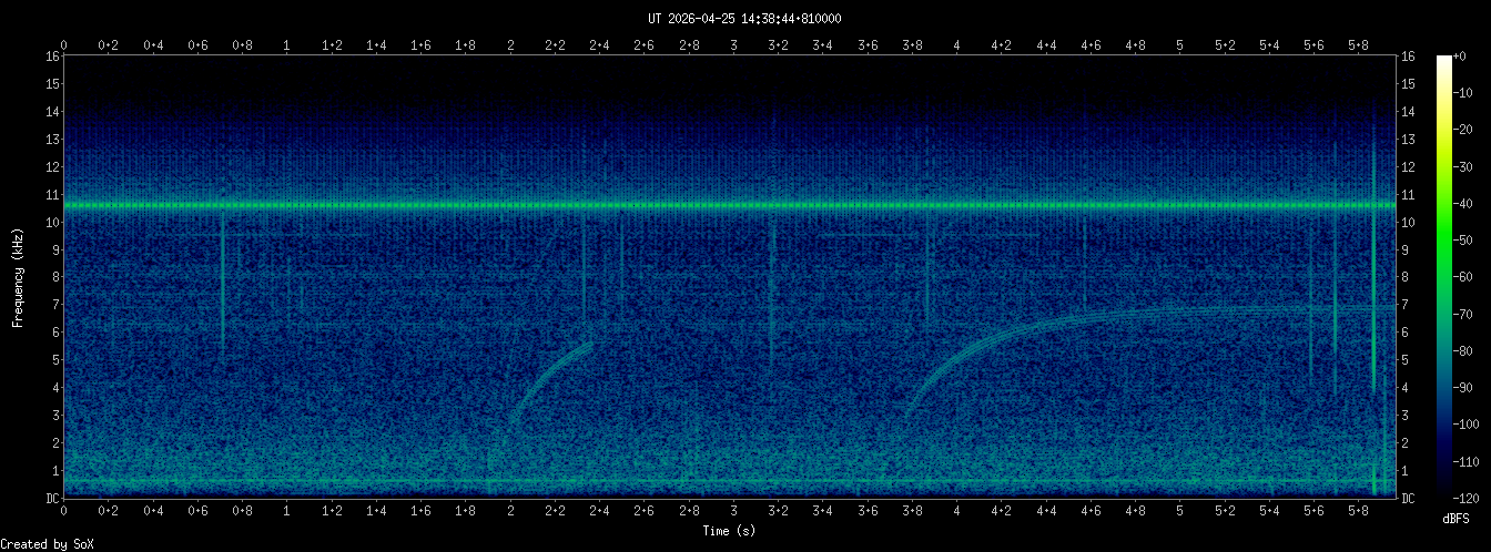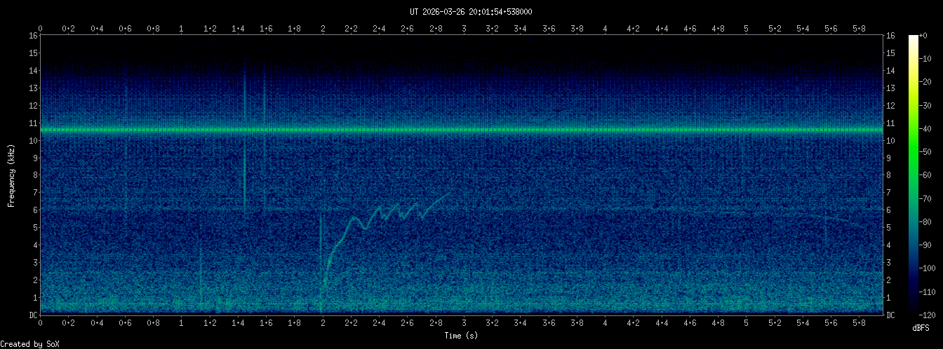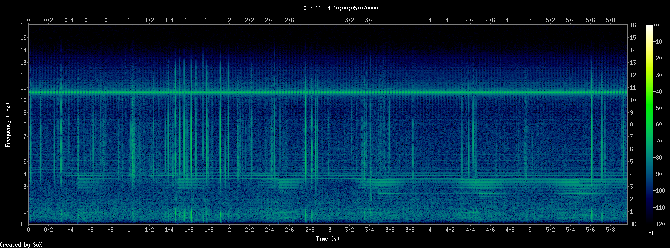 The following images are the recent VLF events received by my system and detected using 'vtevent'. They are sorted from most recent to least recent. When they are classified, they are moved to 'Archive Data' (so this page may be empty at times). This data is regenerated every 10 minutes.