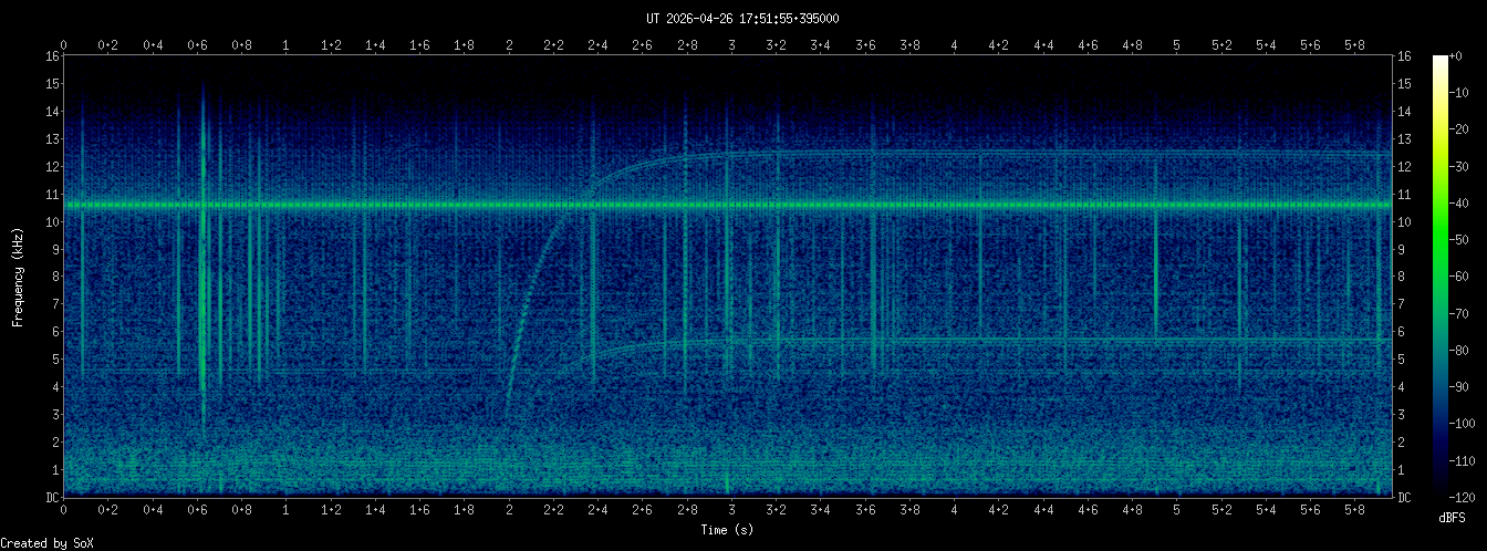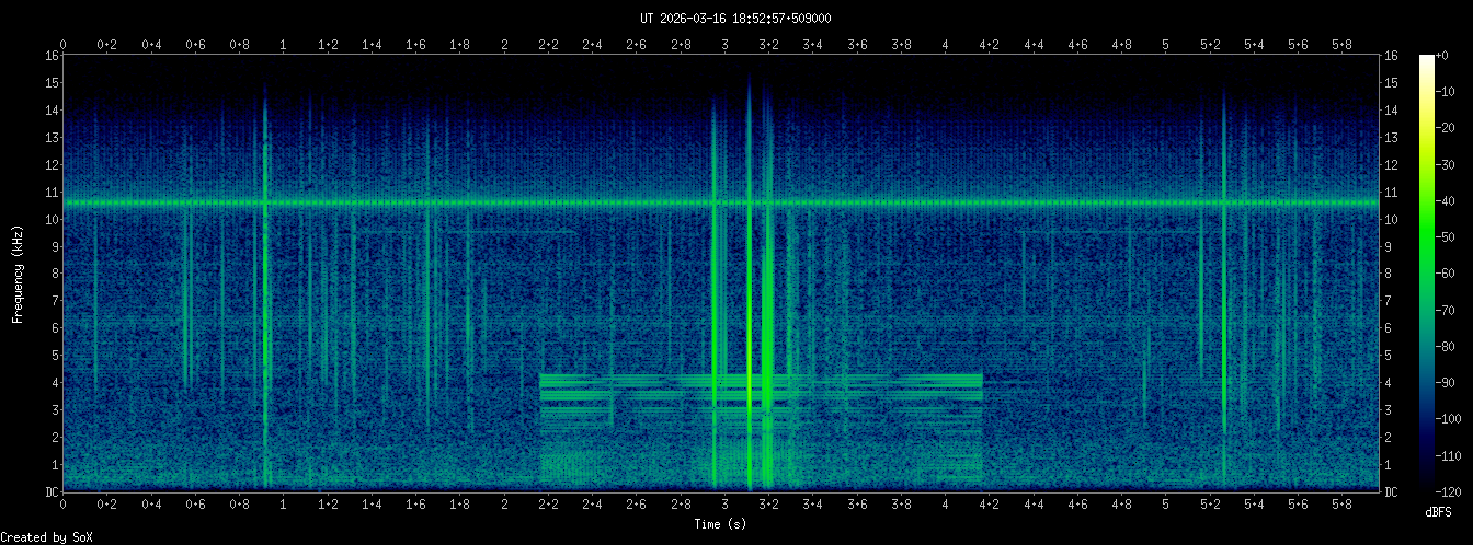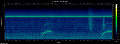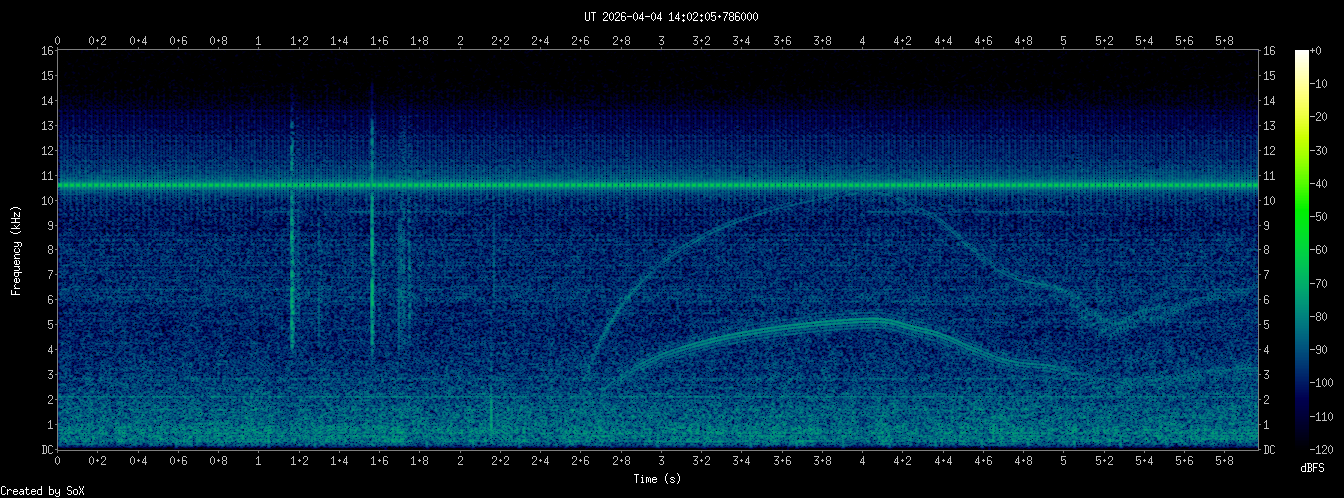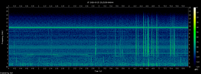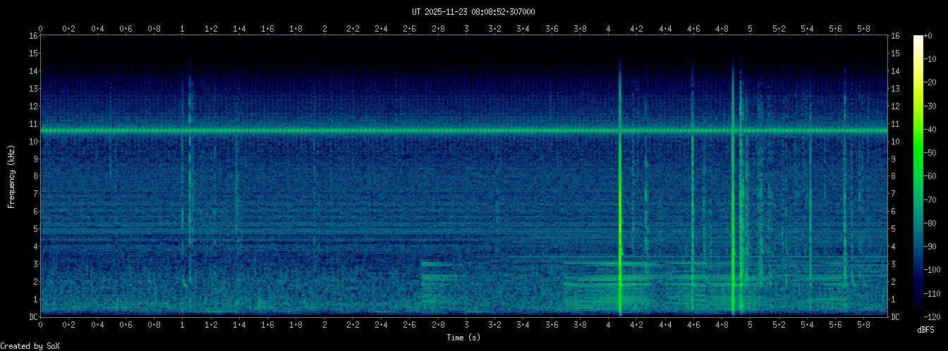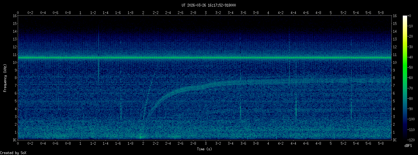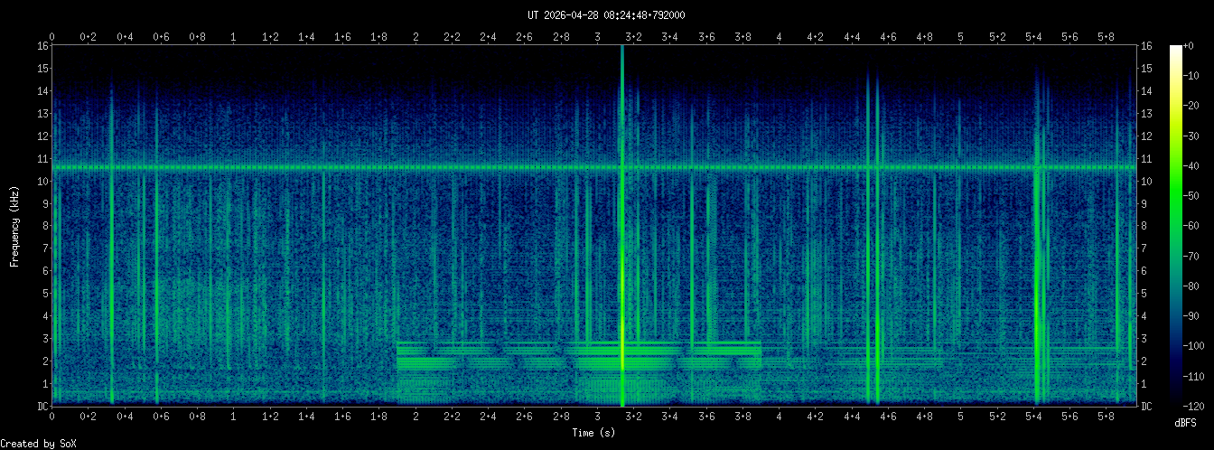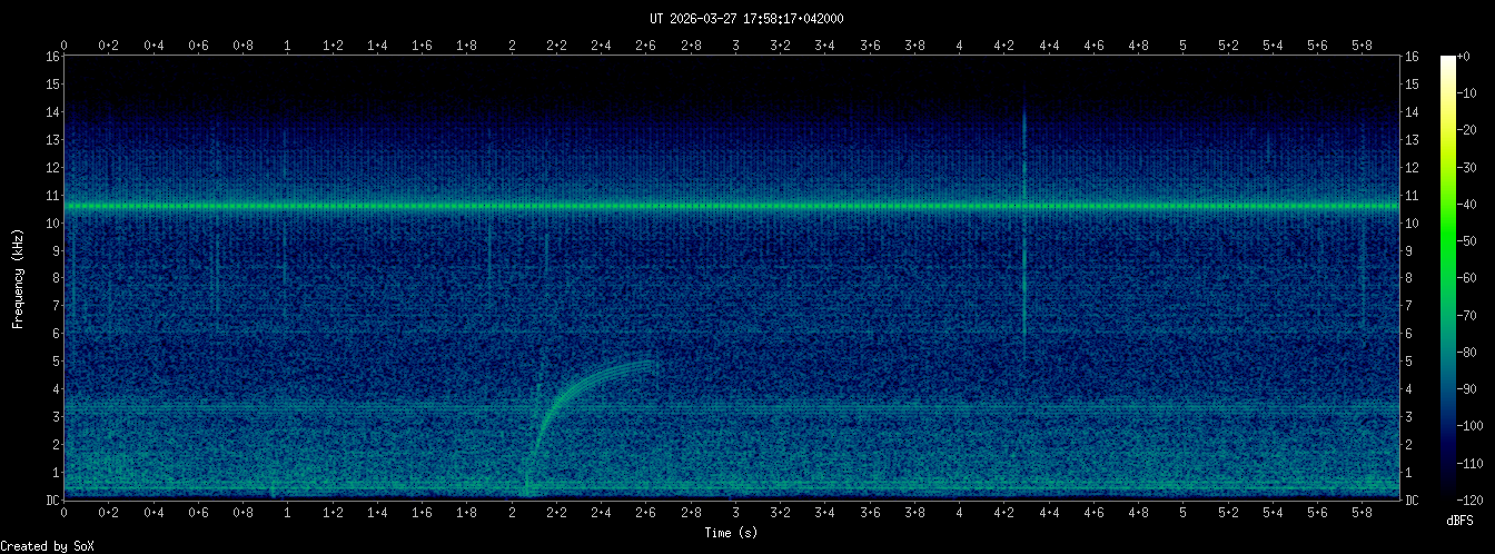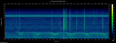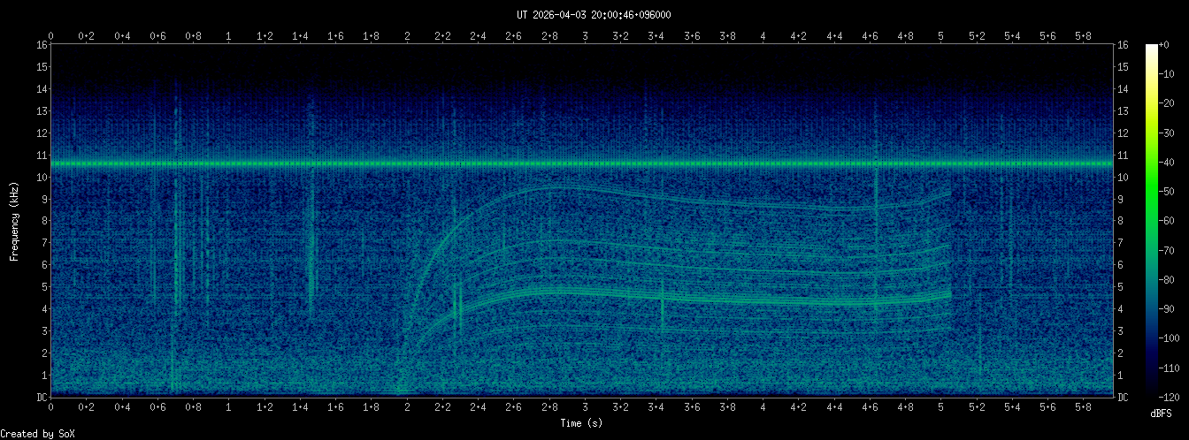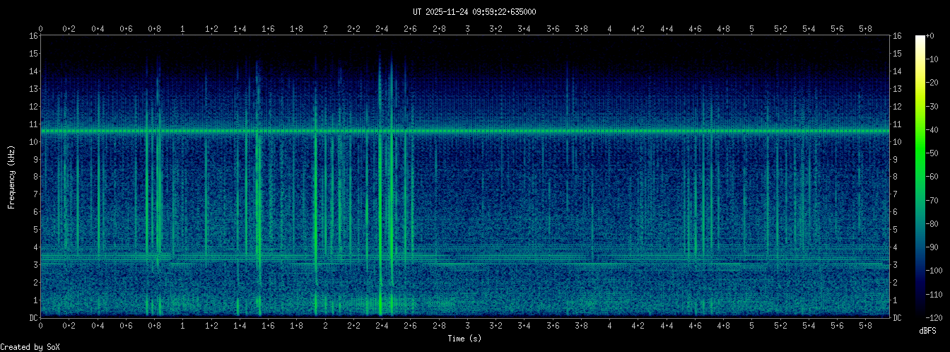 The following images are the recent VLF events received by my system and detected using 'vtevent'. They are sorted from most recent to least recent. When they are classified, they are moved to 'Archive Data' (so this page may be empty at times). This data is regenerated every 10 minutes.