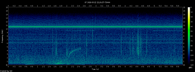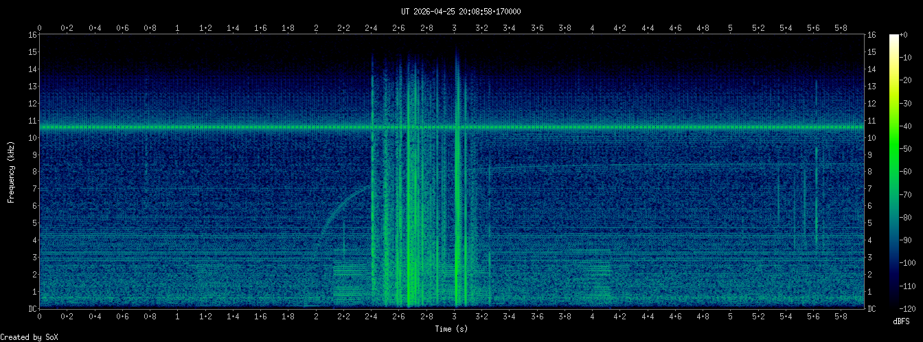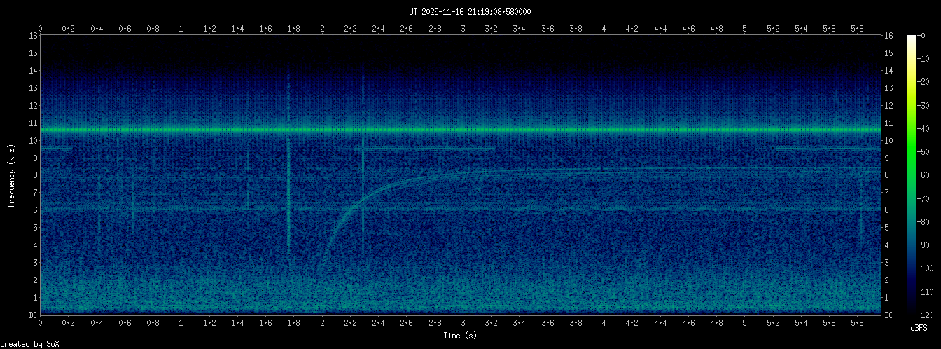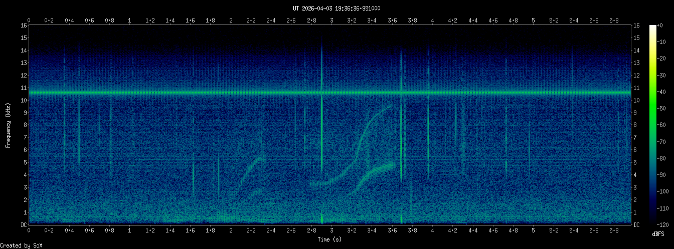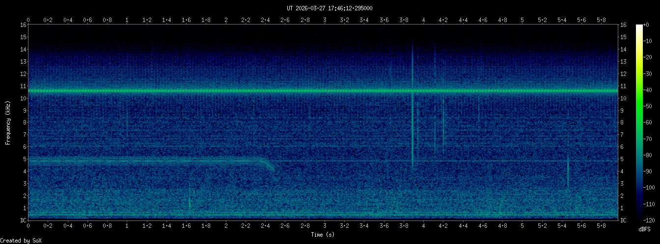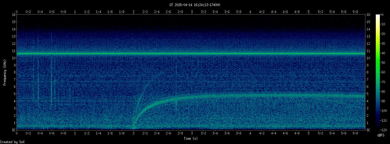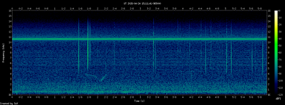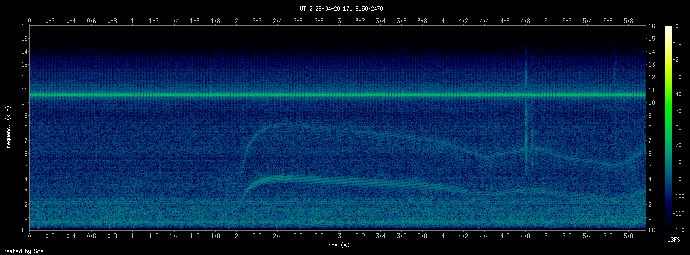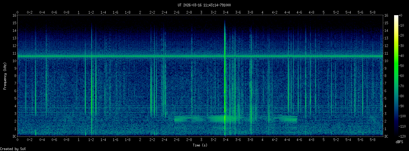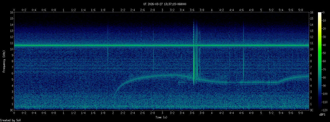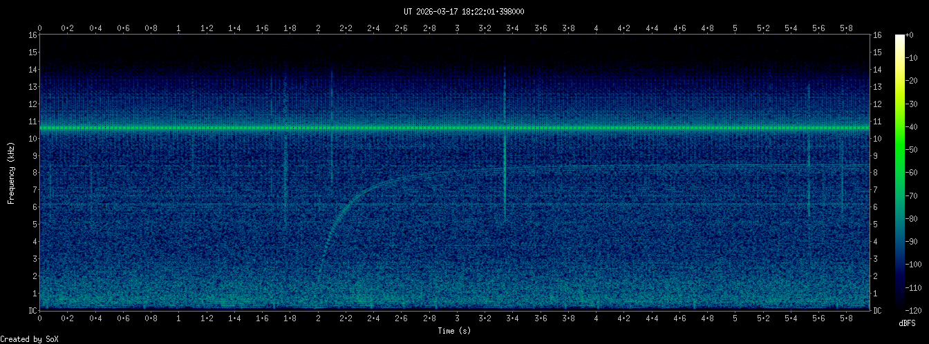 The following images are the recent VLF events received by my system and detected using 'vtevent'. They are sorted from most recent to least recent. When they are classified, they are moved to 'Archive Data' (so this page may be empty at times). This data is regenerated every 10 minutes.