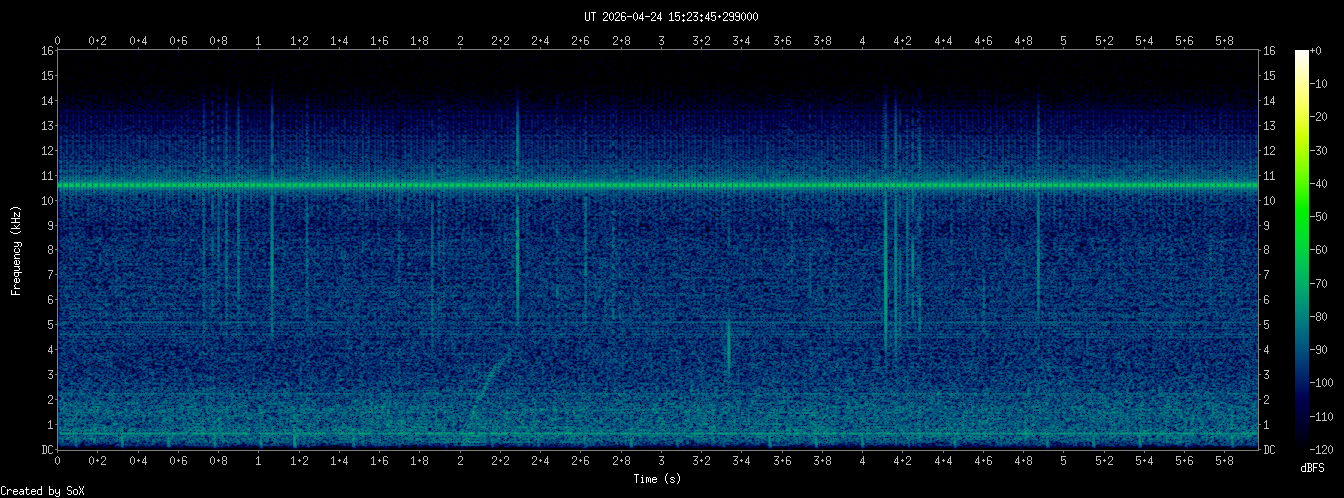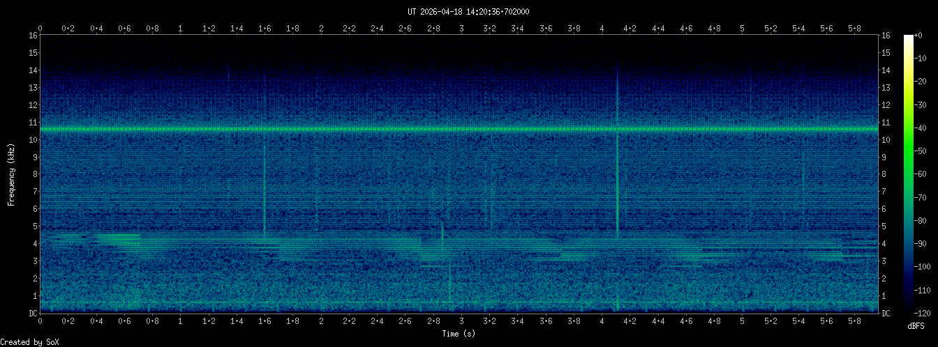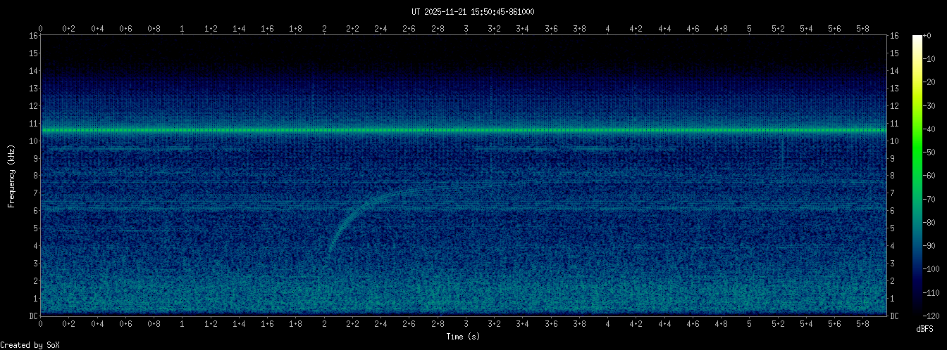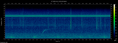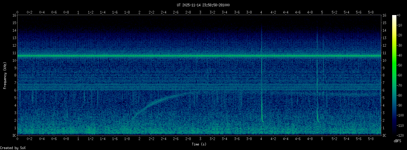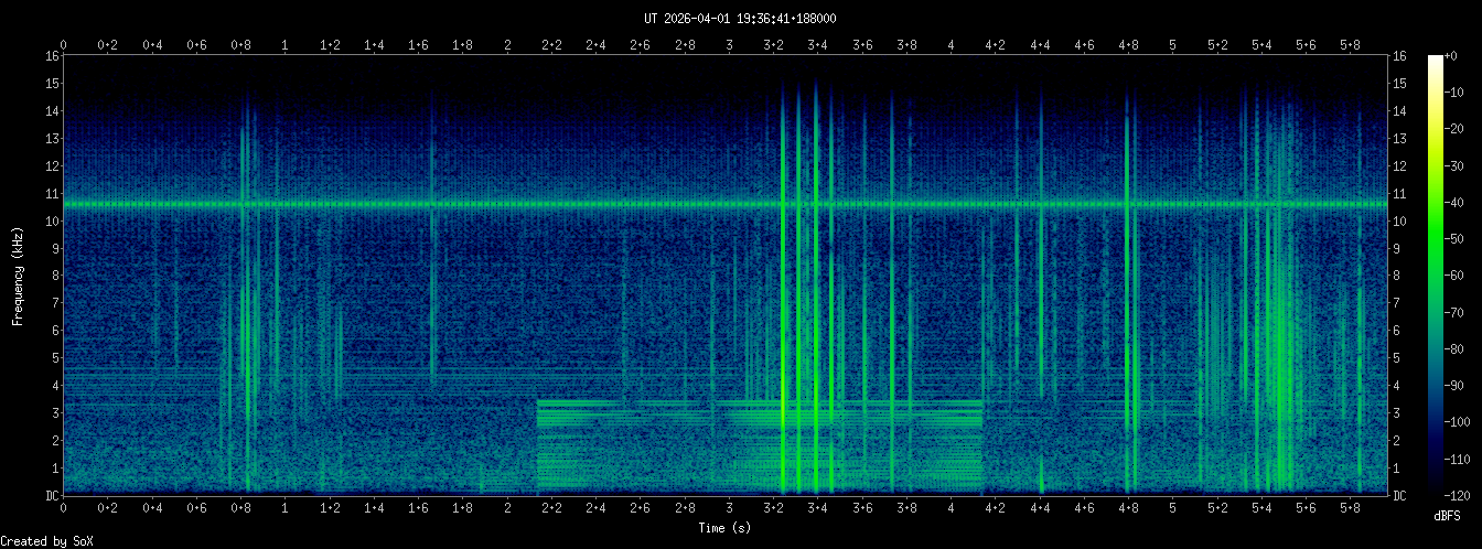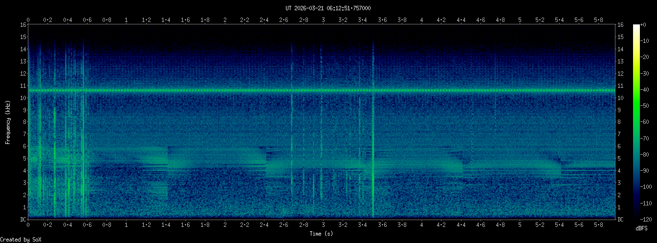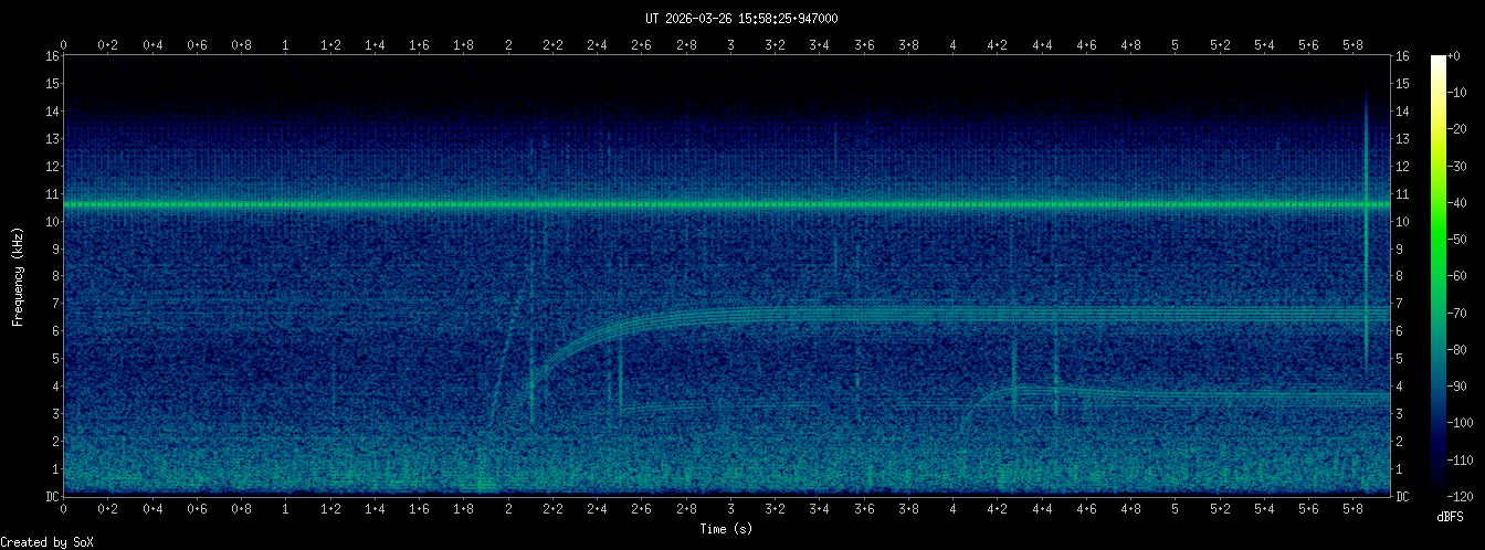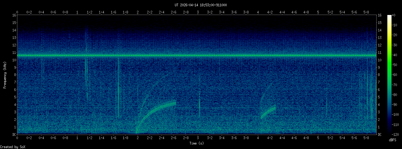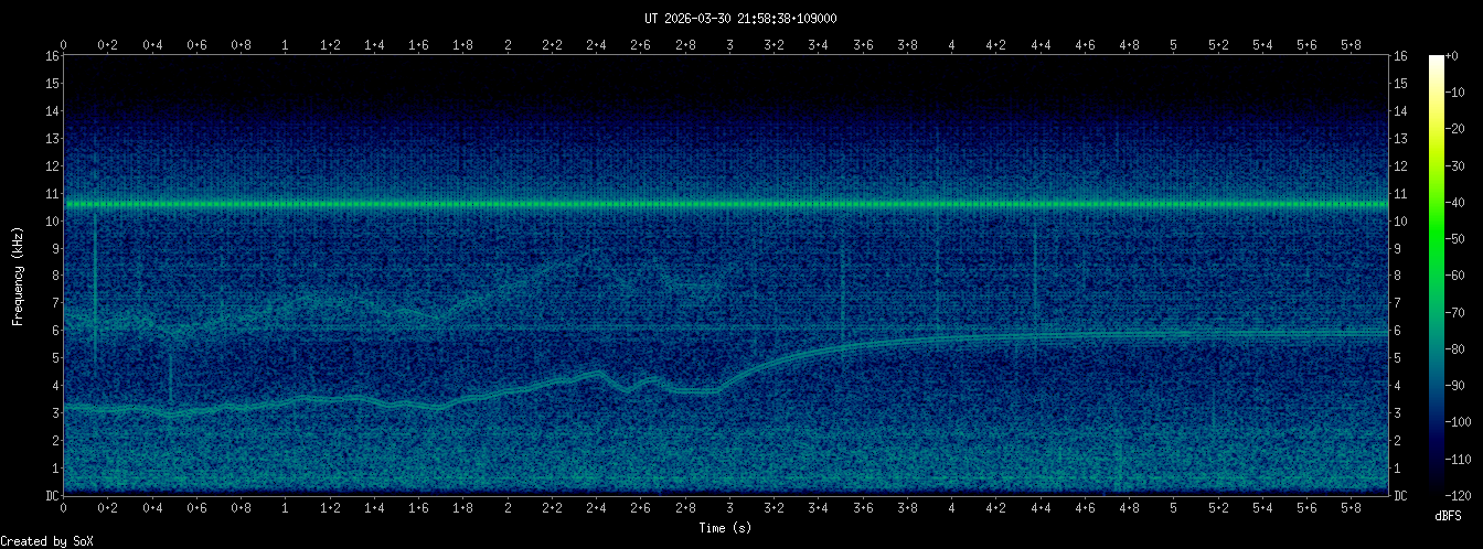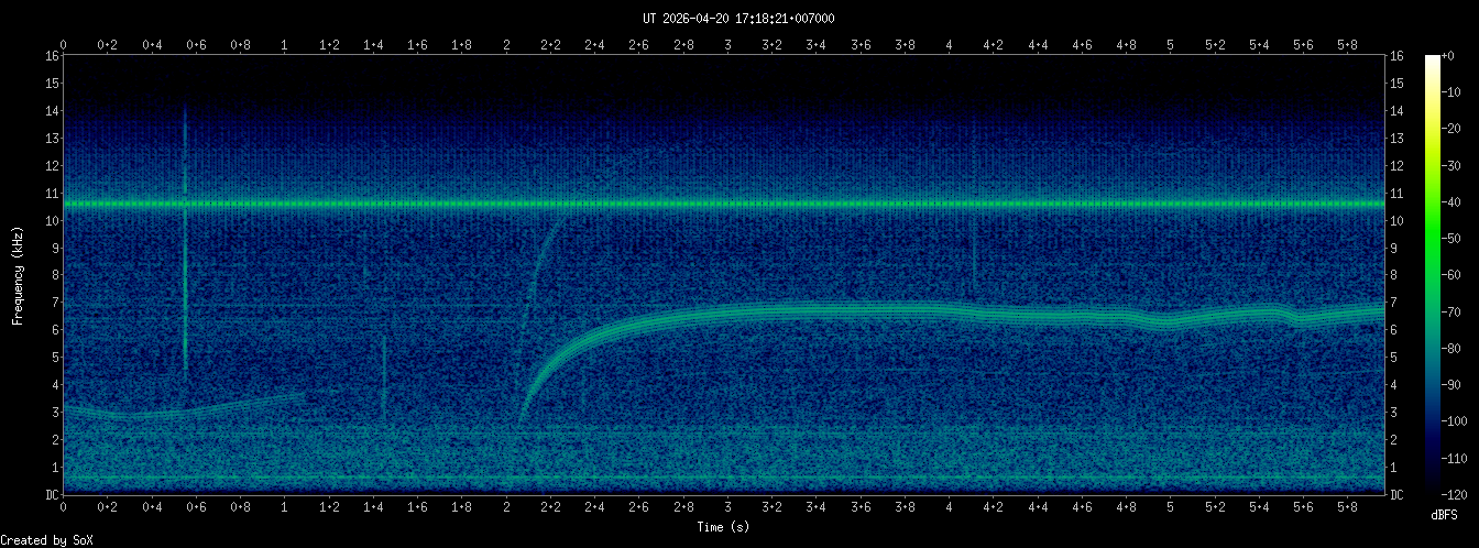 The following images are the recent VLF events received by my system and detected using 'vtevent'. They are sorted from most recent to least recent. When they are classified, they are moved to 'Archive Data' (so this page may be empty at times). This data is regenerated every 10 minutes.