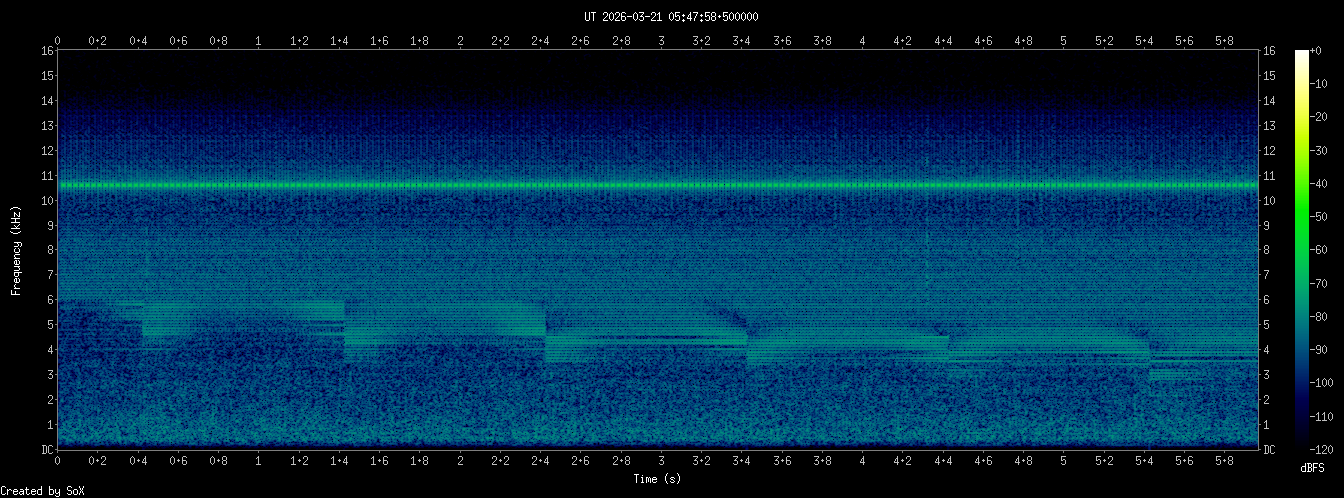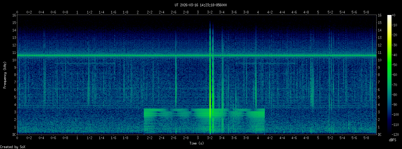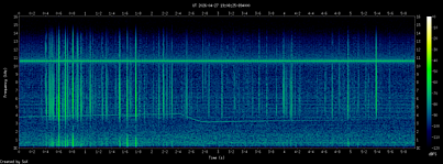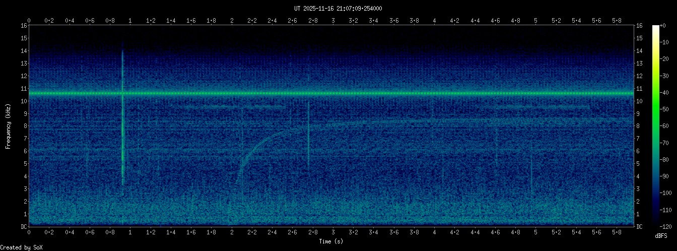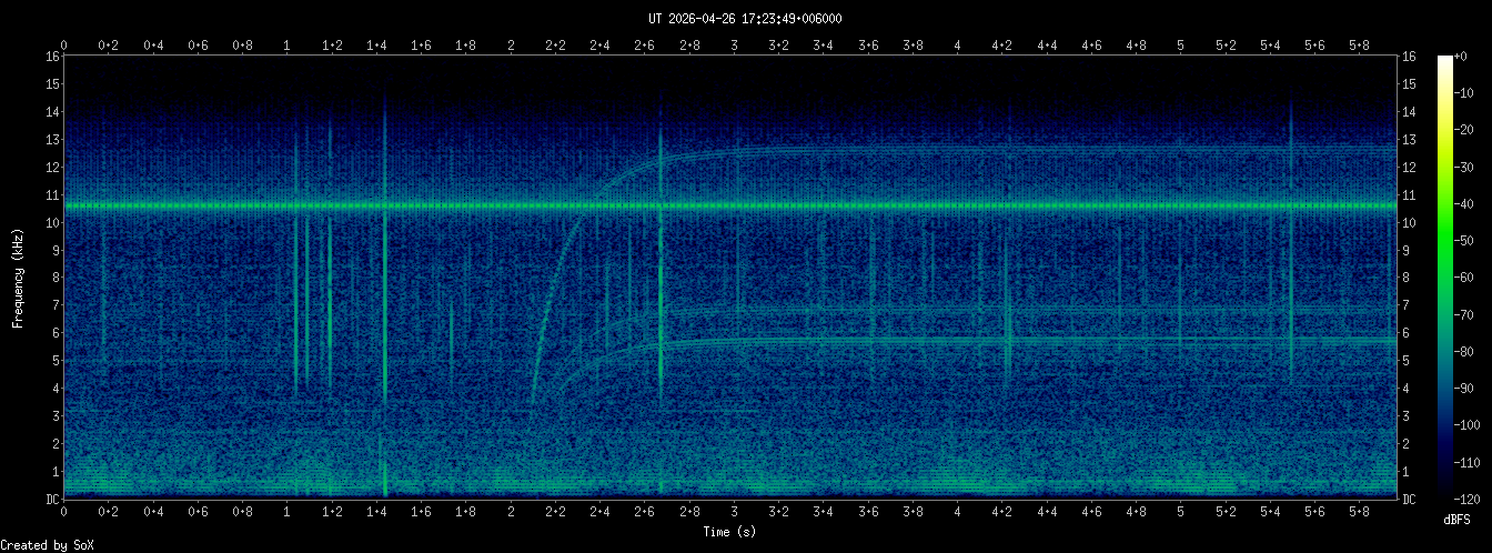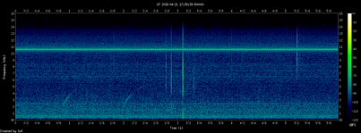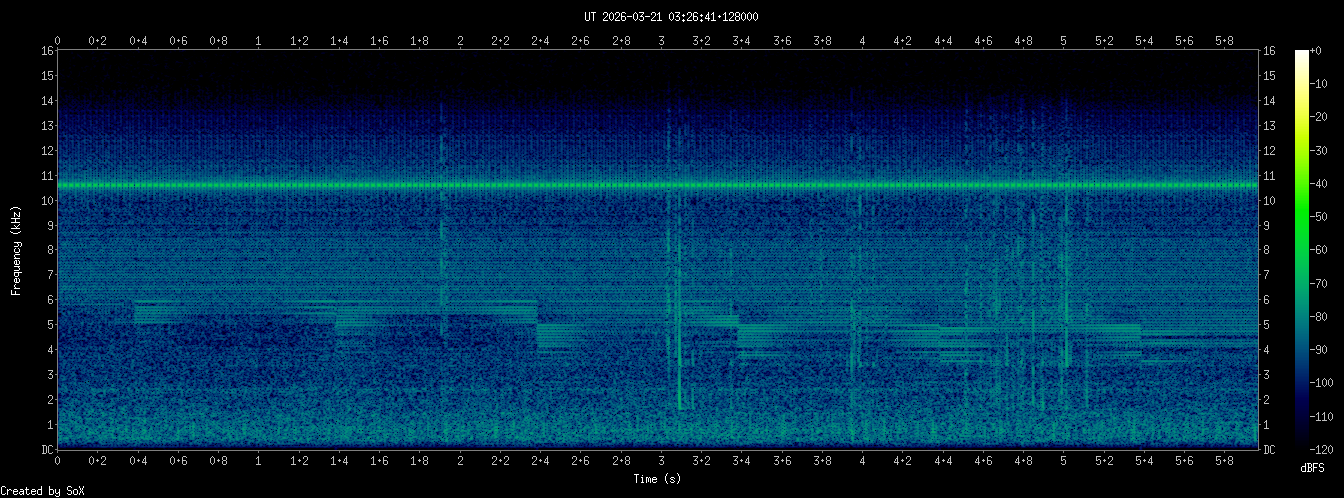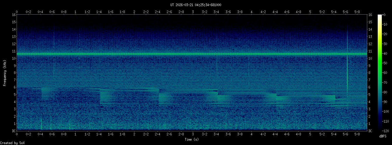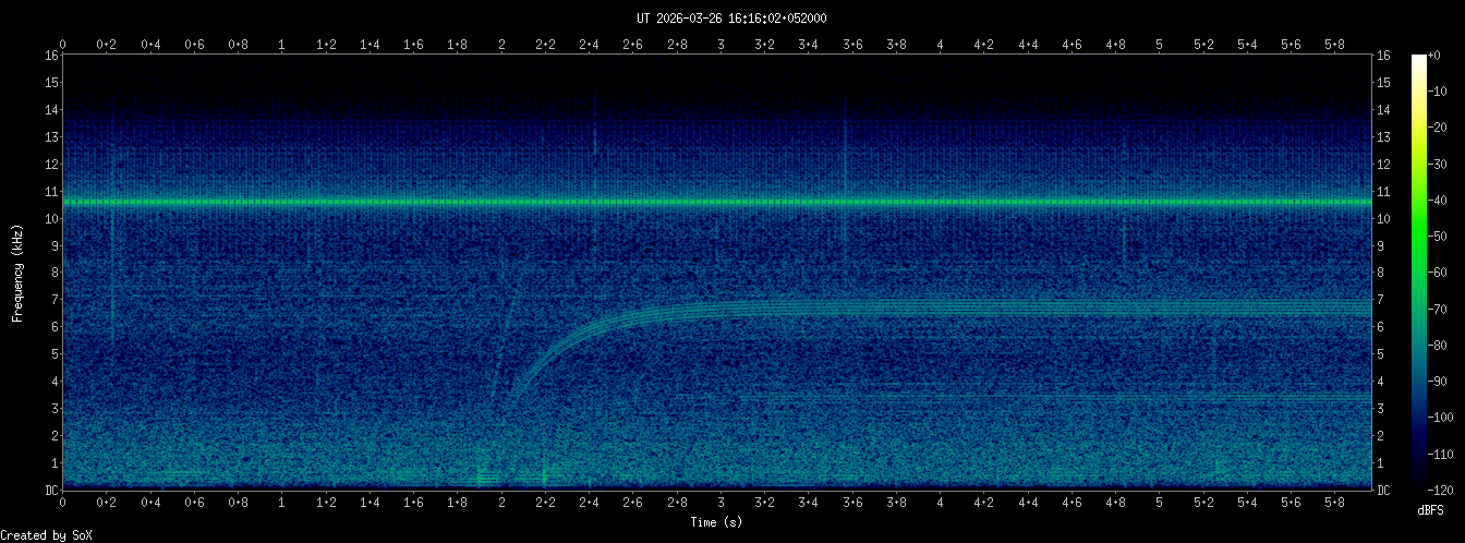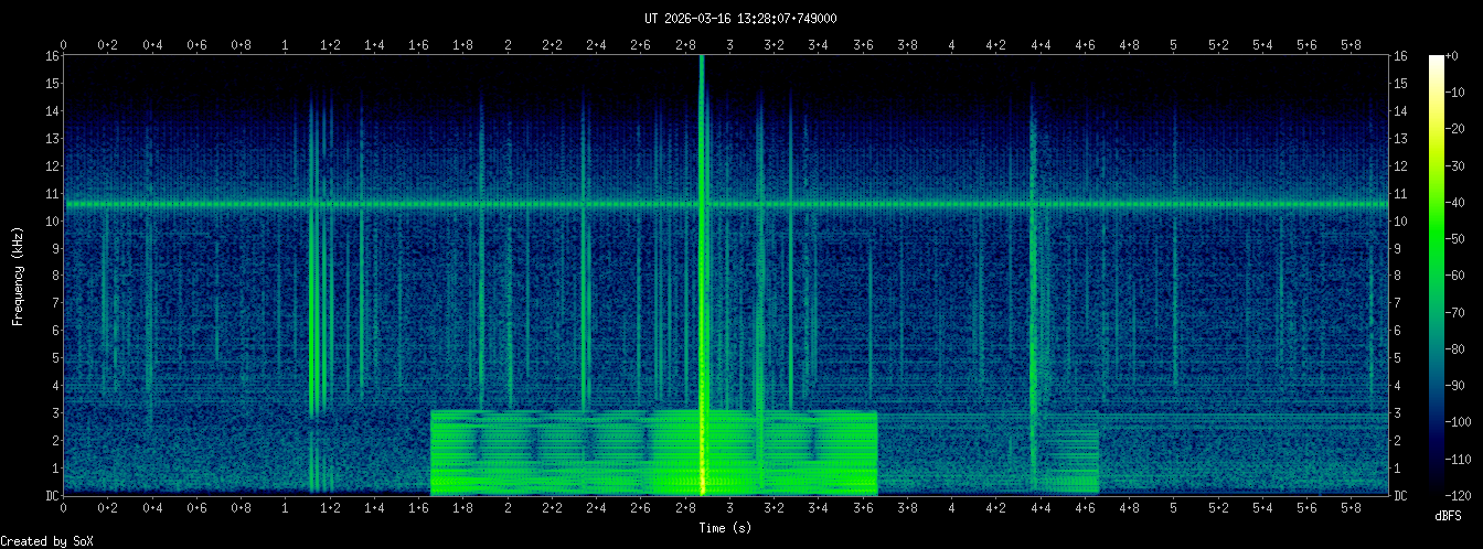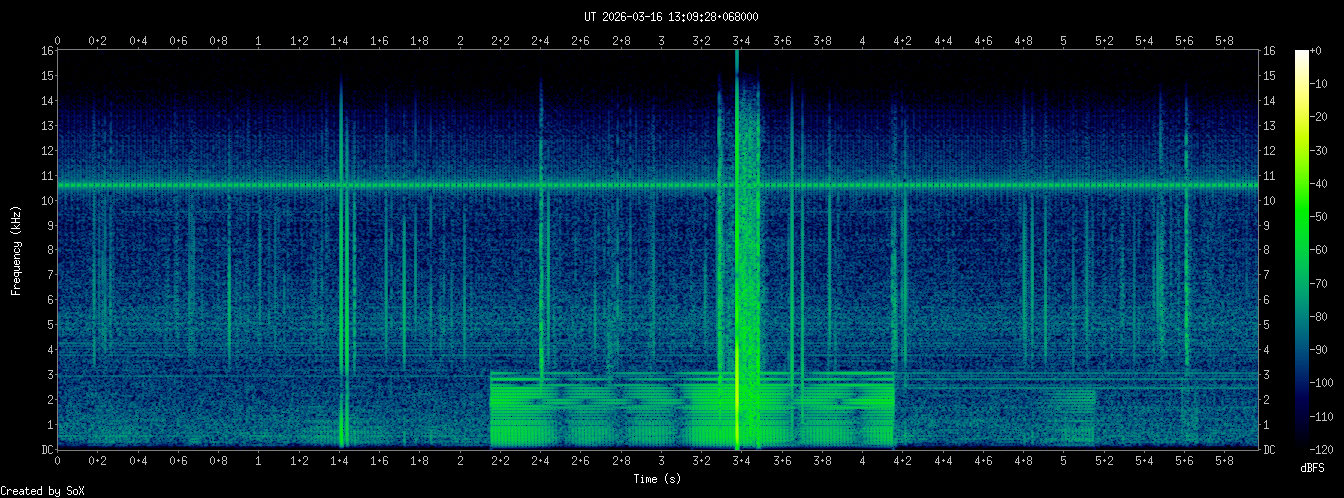 The following images are the recent VLF events received by my system and detected using 'vtevent'. They are sorted from most recent to least recent. When they are classified, they are moved to 'Archive Data' (so this page may be empty at times). This data is regenerated every 10 minutes.