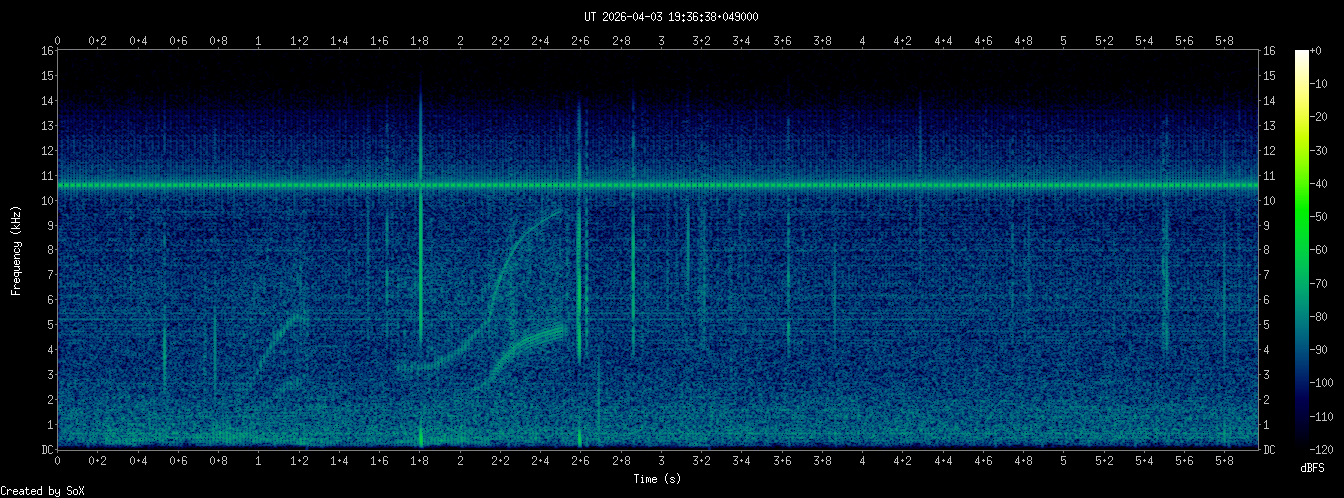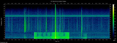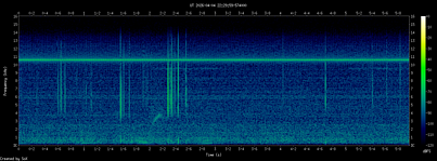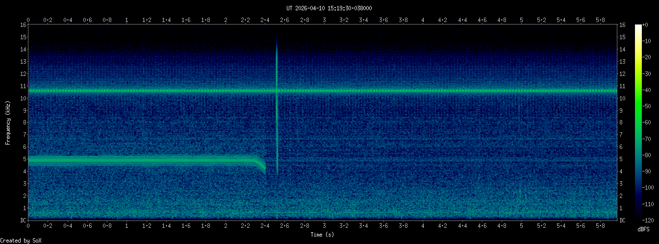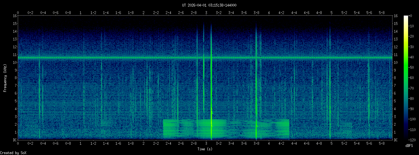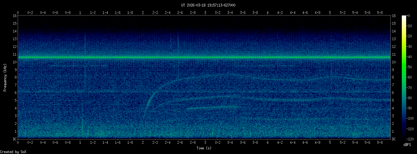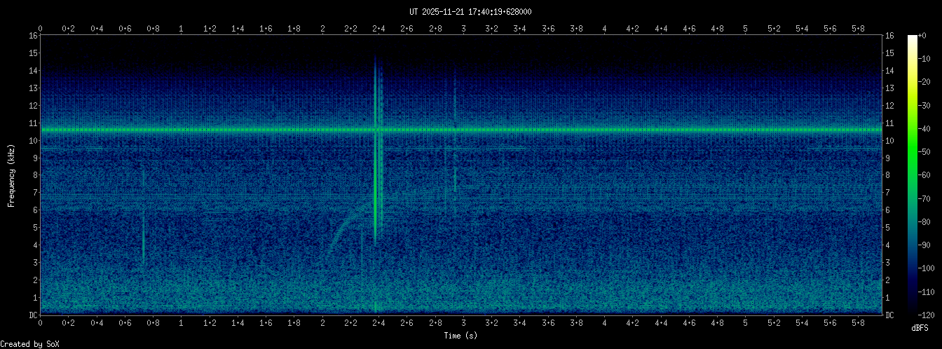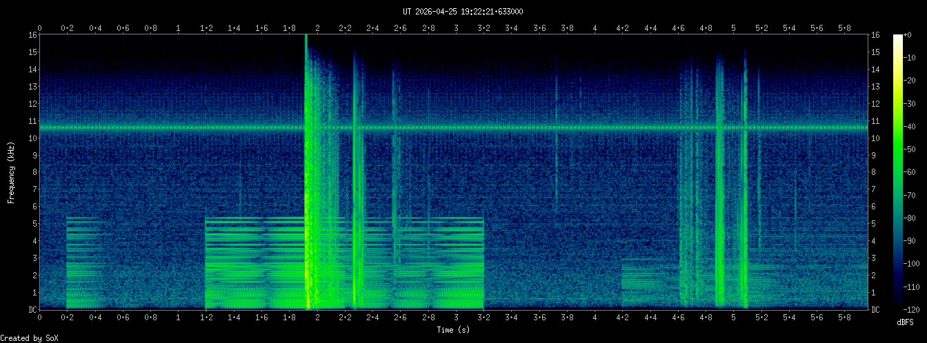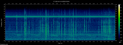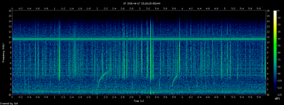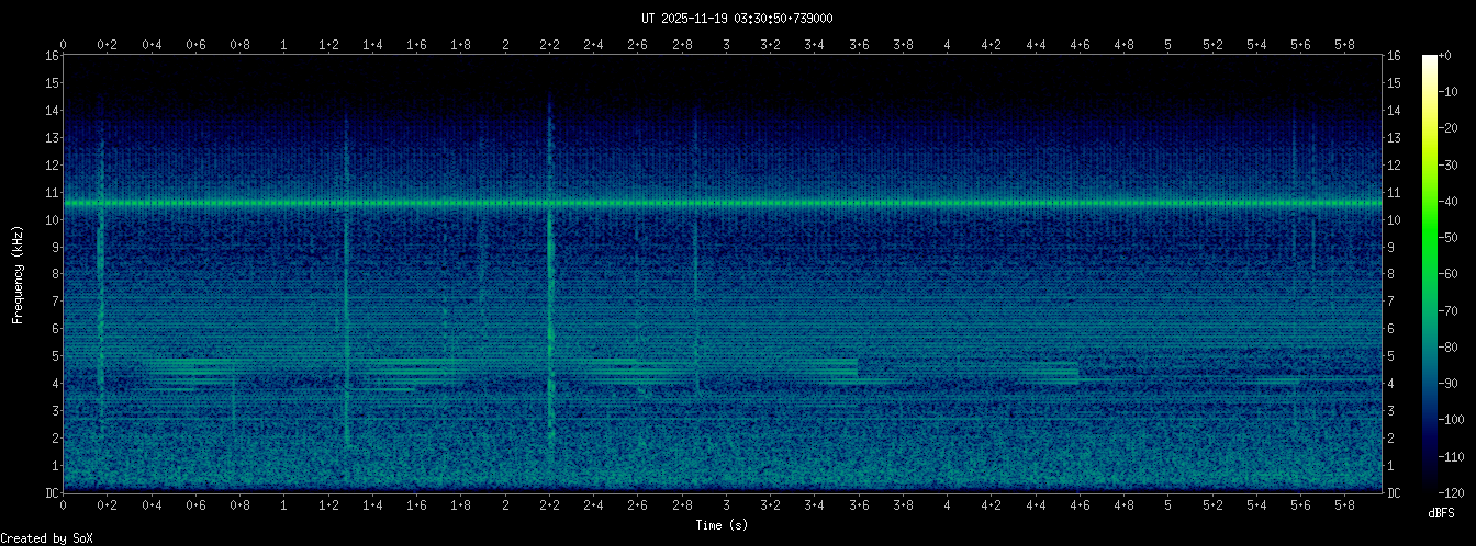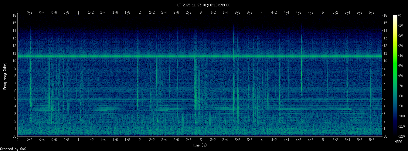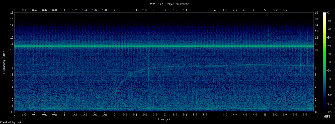 The following images are the recent VLF events received by my system and detected using 'vtevent'. They are sorted from most recent to least recent. When they are classified, they are moved to 'Archive Data' (so this page may be empty at times). This data is regenerated every 10 minutes.