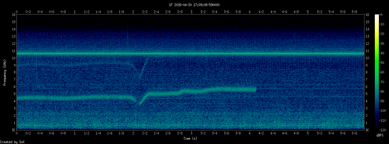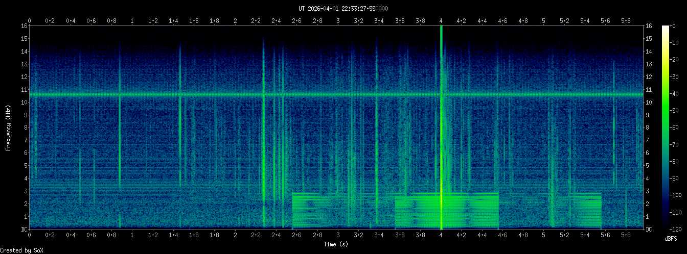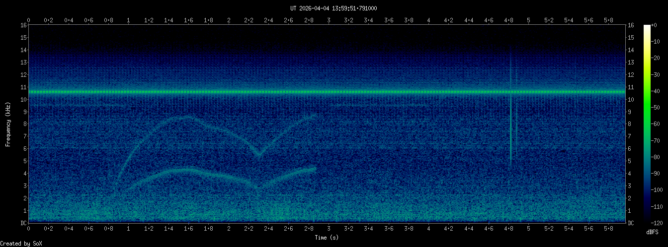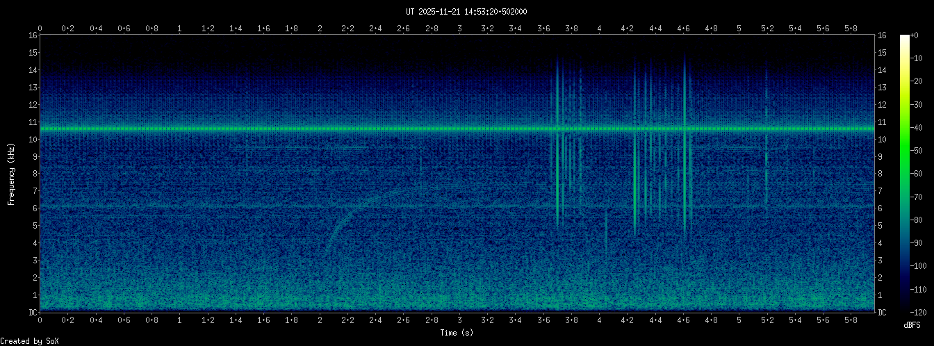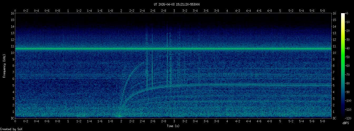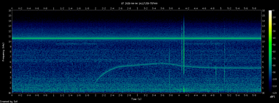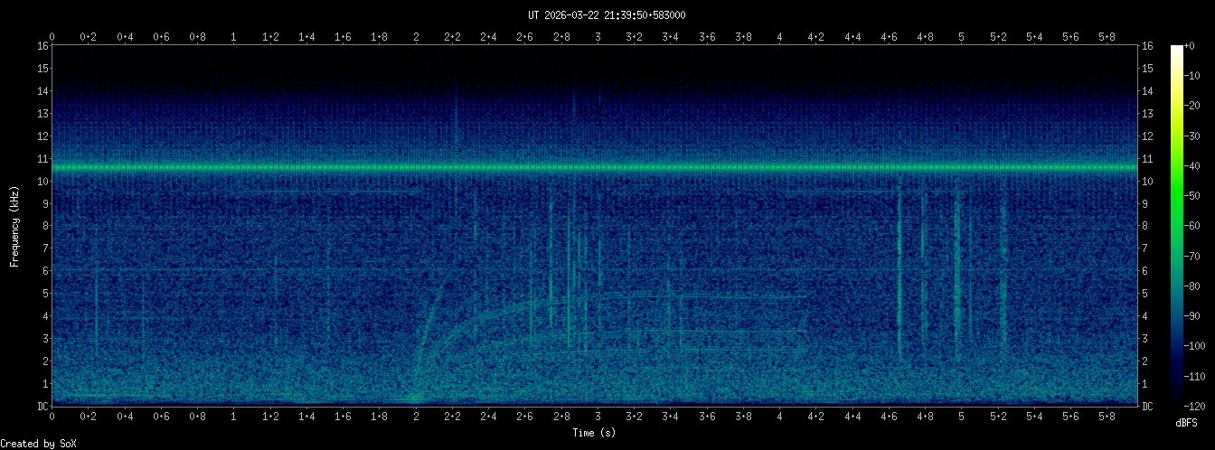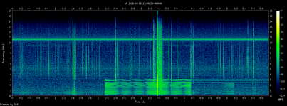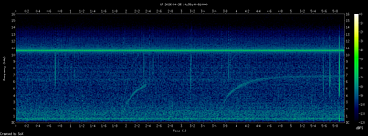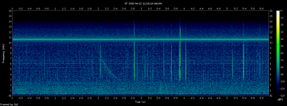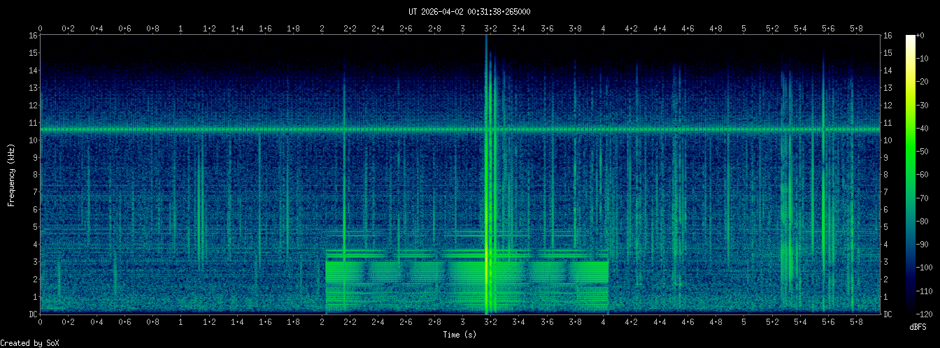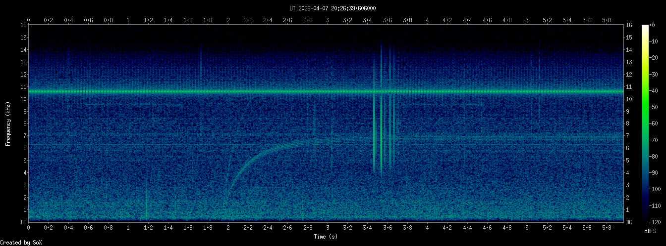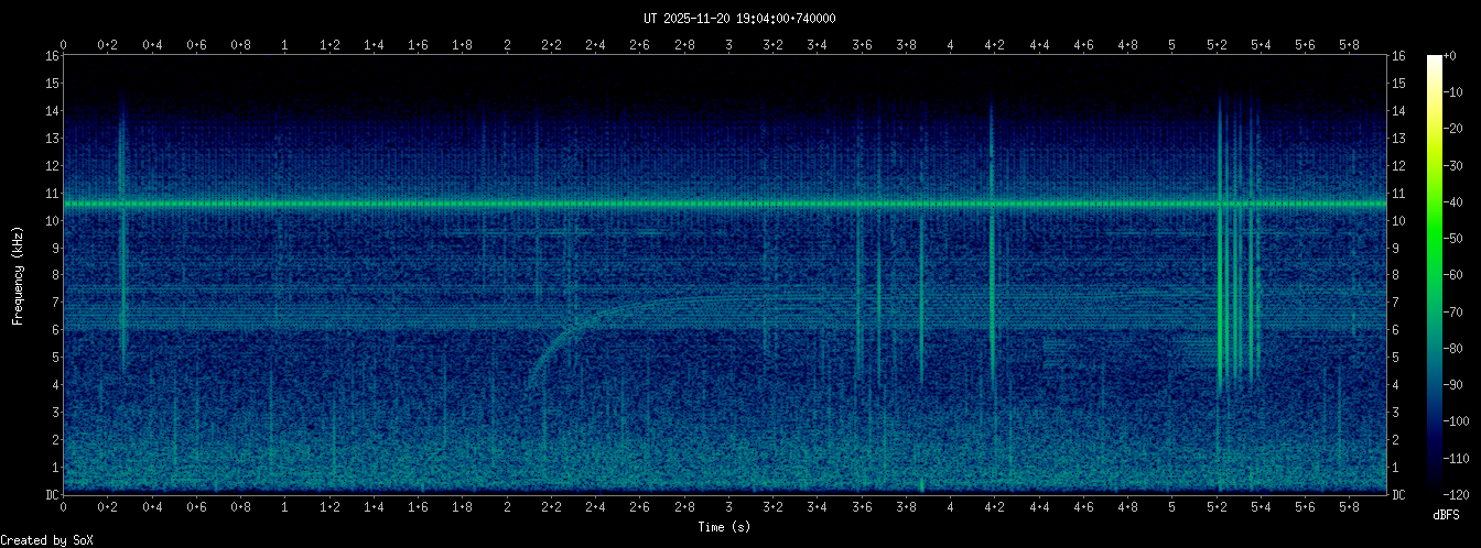 The following images are the recent VLF events received by my system and detected using 'vtevent'. They are sorted from most recent to least recent. When they are classified, they are moved to 'Archive Data' (so this page may be empty at times). This data is regenerated every 10 minutes.