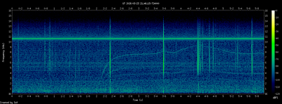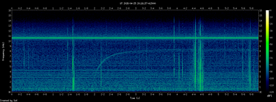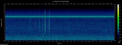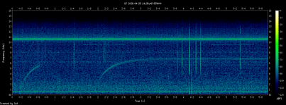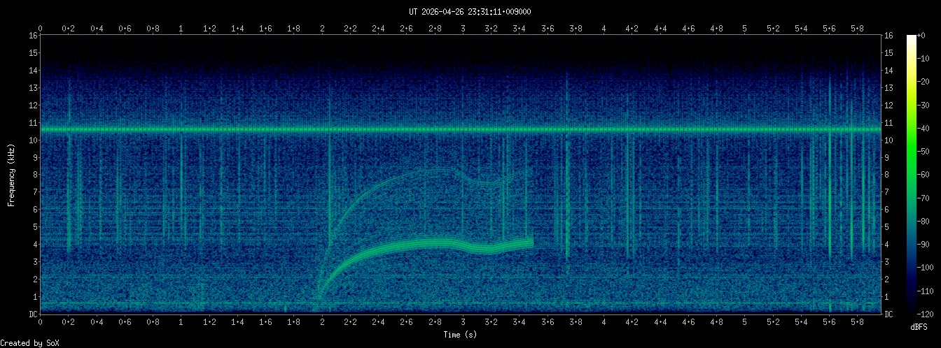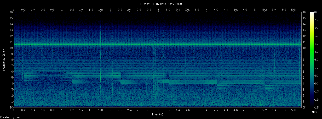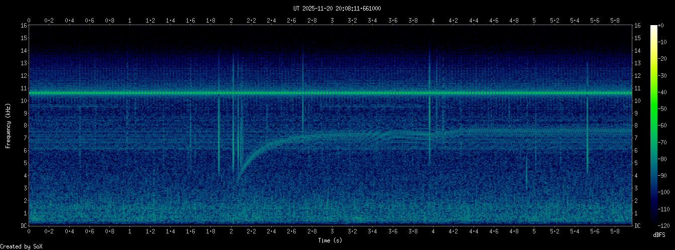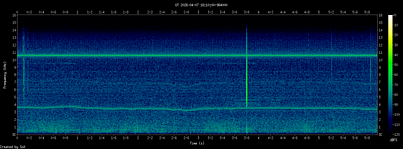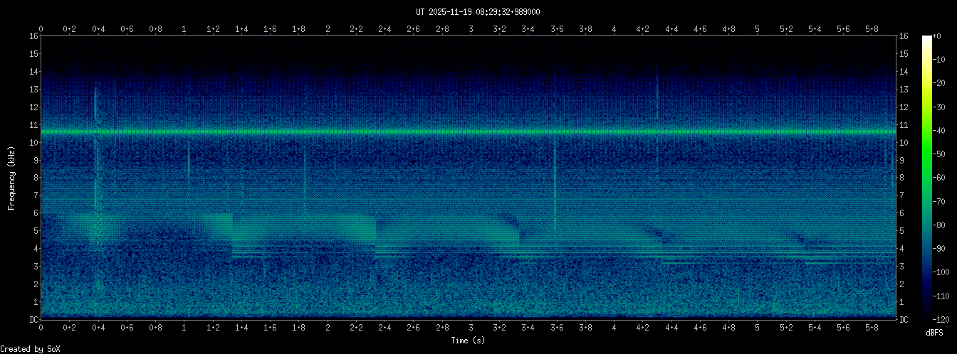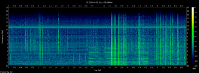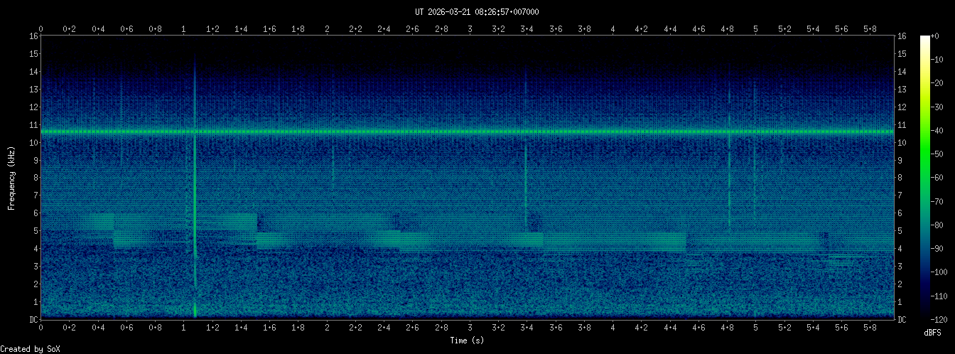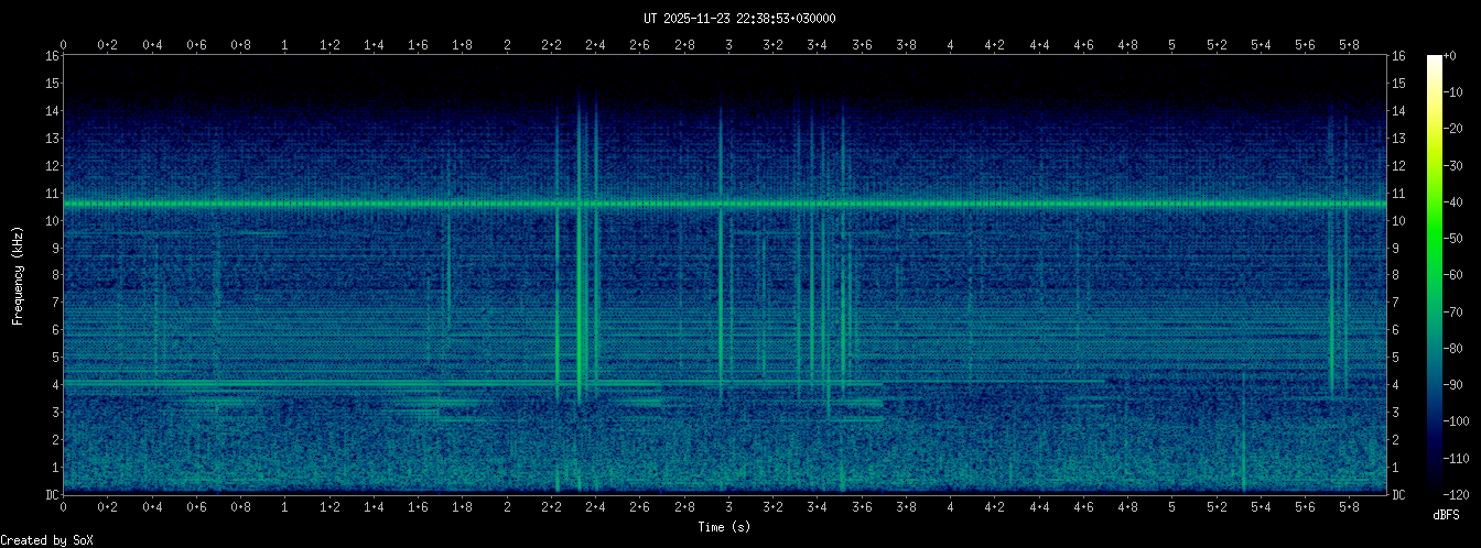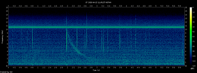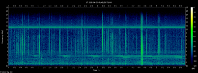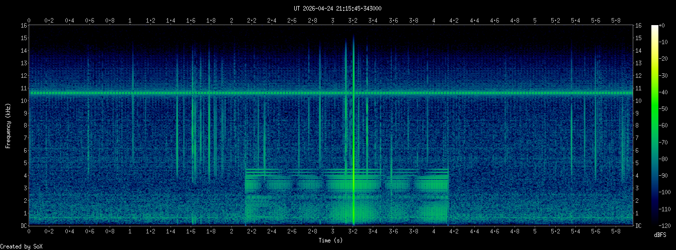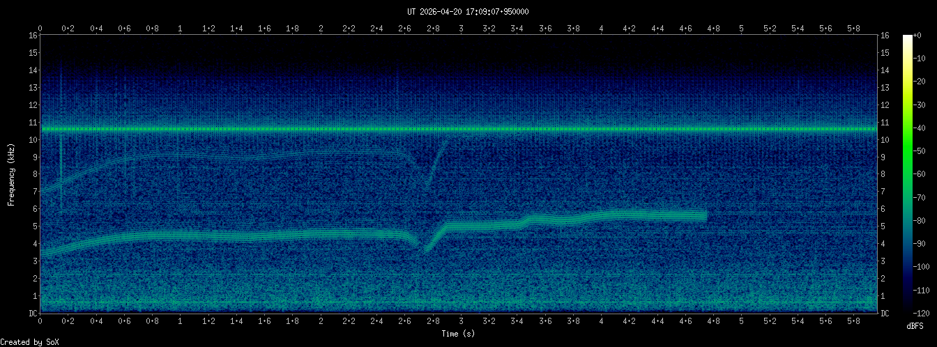The following images are the recent VLF events received by my system and detected using 'vtevent'. They are sorted from most recent to least recent. When they are classified, they are moved to 'Archive Data' (so this page may be empty at times). This data is regenerated every 10 minutes.